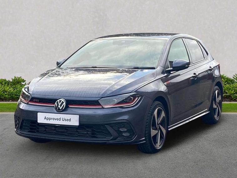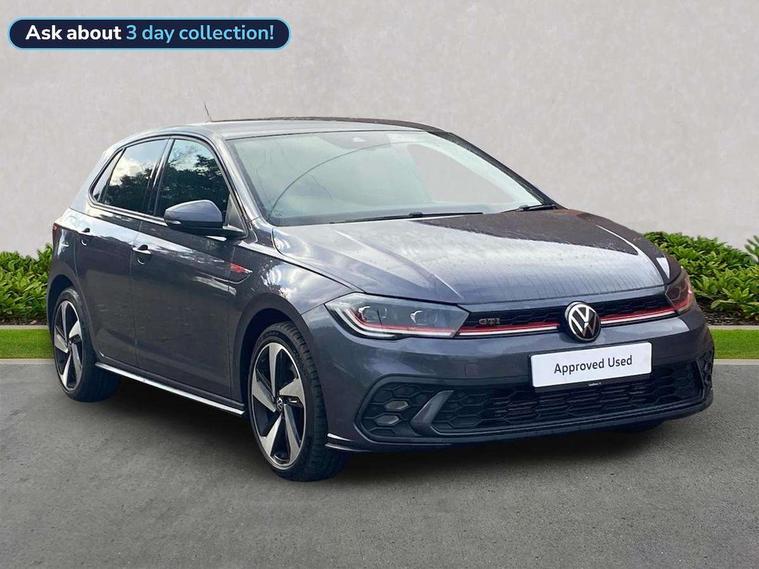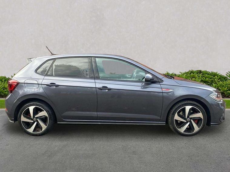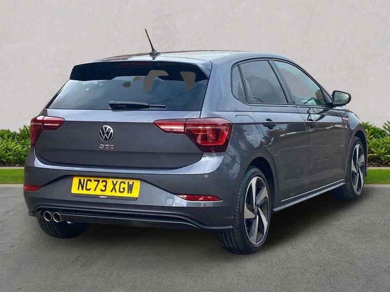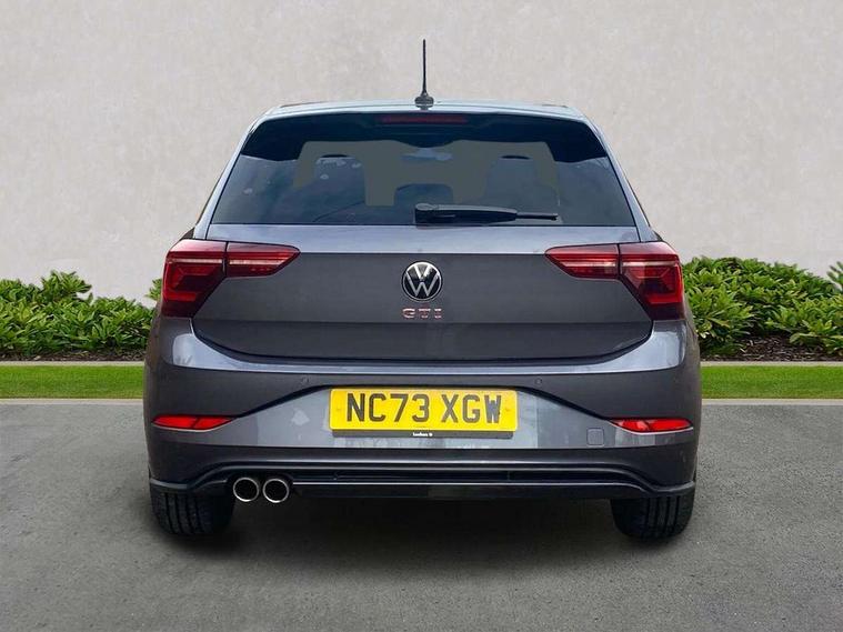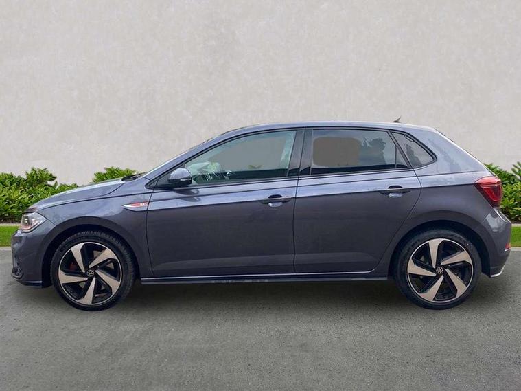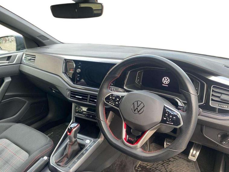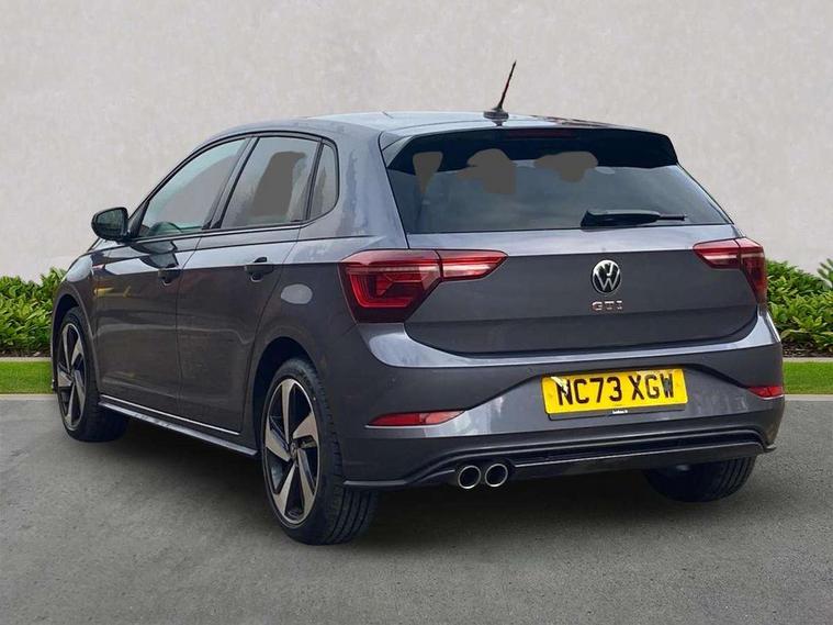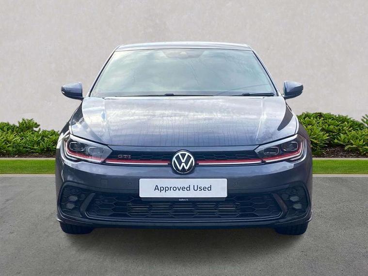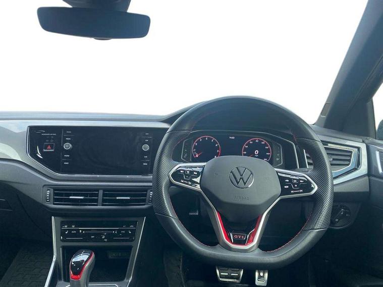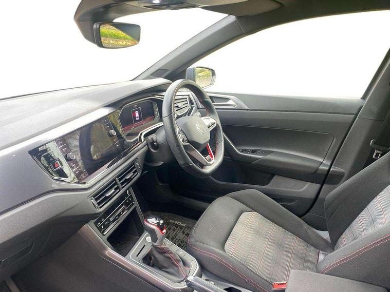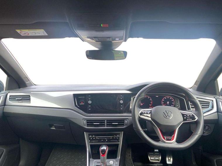 Adaptive cruise control with follow-to-stop and speed limiter, Bluetooth mobile phone interface, Digital Cockpit Pro with 10.25" Display, Driver alert system, Dynamic road sign display, Eco mode, Emergency call service, Power assisted speed sensitive steering, Preparation for We connect and We connect plus, Speedo and rev counter, electronic odometer, trip, service interval display and fuel gauge, Travel Assist - Lane keeping system and traffic jam assist, Travel assist including emergency assist, Trip computer, Warning signal and warning light for front and rear seatbelts not fastened, Washer fluid level indicator, Wireless app connect, Adaptive chassis control, Front wheel drive, Heavy duty rear axle, Rear shock absorpion sports version, Sports select suspension lowered by 15mm, Start-stop system with battery regeneration (recuperation - energy recovery during braking), DAB Digital radio, Diversity antenna for FM reception, Front and rear 6 speakers, Body colour bumpers, Body colour door handles, Electric front windows, Front scuff plates in aluminium with GTI logo, Heat insulating darkened glass in side and rear windows, Heat insulating glass windscreen, Power folding adjustable/heated exterior mirrors and front passenger exterior mirror lowering function, Rain sensor, Rear electric windows, Rear fog light, Rear side wing doors, Rear windscreen washer and wiper with interval delay, Sport bumpers with air intakes with honeycomb structure, Third brake light, Twin chrome exhaust tailpipes, 12V power socket in centre console, 2 USB-C ports in the front, 2 USB-C charging sockets on the center console in the rear, 3 rear head restraints, 60/40 split folding rear seat and rear seat bench not split, Air care climatronic air conditoning system with active combination filter and 2-zone temperature control, Black roof lining, Chrome plated radiator grille inserts, air vent surrounds and light switch surrounds, Door and side trim panel, Driver and front passenger seat height adjustment, Driver/passenger sunvisors with illuminated vanity mirrors, Front + rear carpet mats in recycled material, Front centre armrest, Front footwell illumination, Front seat backrest storage pockets, GTI sports gearshift knob in aluminium leather, Handbrake lever handle in leather, Headliner in recycled material, Isofix child seat preparation easy-fit (for two outer rear seats, and front passenger seat) compatible with I-size, LED interior light with switch off delay and dimmer, 2 reading lights front and rear, Luggage compartment cover, Luggage compartment floor, Luggage compartment lighting, Single front passenger seat, Stainless steel pedals, Standard pedal cluster, Three spoke leather wrapped multifunction sports steering wheel with shifting paddles, IQ LED matrix headlights pack - Polo, Light and sight pack - Polo GTI, 3 point height adj front seatbelts + pretensioners, 3x3 point rear seatbelts, ABS, Driver and front passenger airbag with front passenger airbag deactivation, Drivers and front passengers safety optimised head restraints, ESC (Electronic stability control) + EDL (Electronic Differntial lock) and ASR (Traction control), Extended and predictive pedestrian/ cyclist protection, Front and rear disc brakes with red brake calipers, Front curtain and side airbags with center airbag, Hill hold control, Manual child lock in rear doors, Two tone horn, Tyre pressure loss indicator, Alarm with interior protection, Anti-theft alarm system with interior monitoring, backup horn, and towing protection, Anti-theft wheel bolts, Electronic engine immobiliser, Chrome applications on rotary light, mirror adjustment, window regulator switches, outlet with frame in black, Low rolling resistance tyres,
