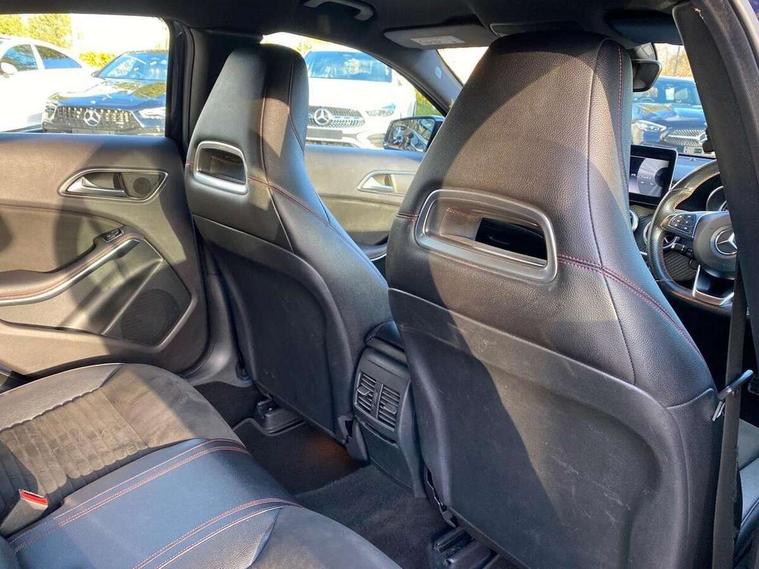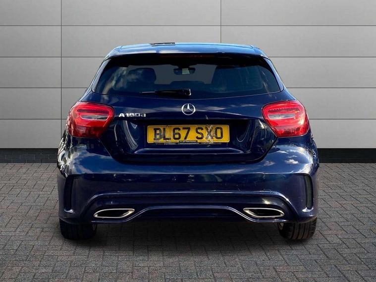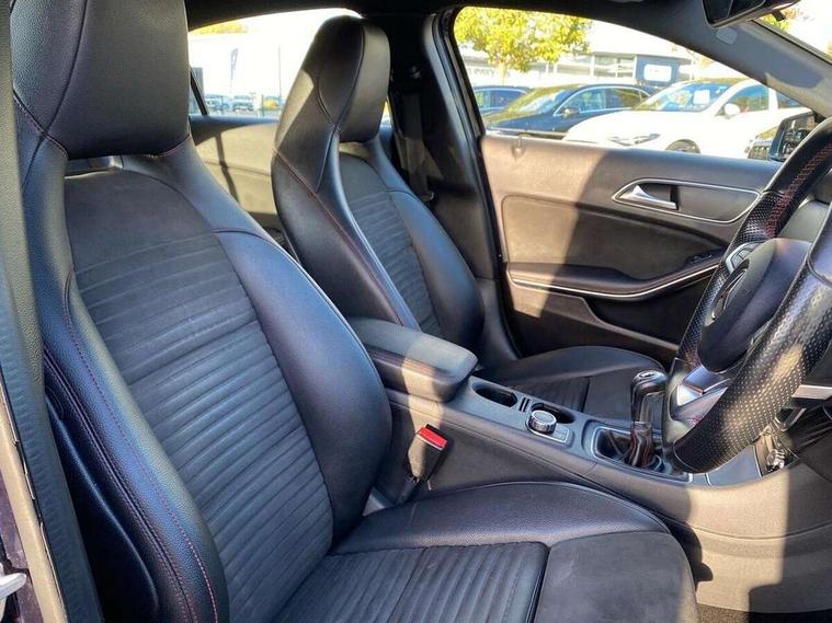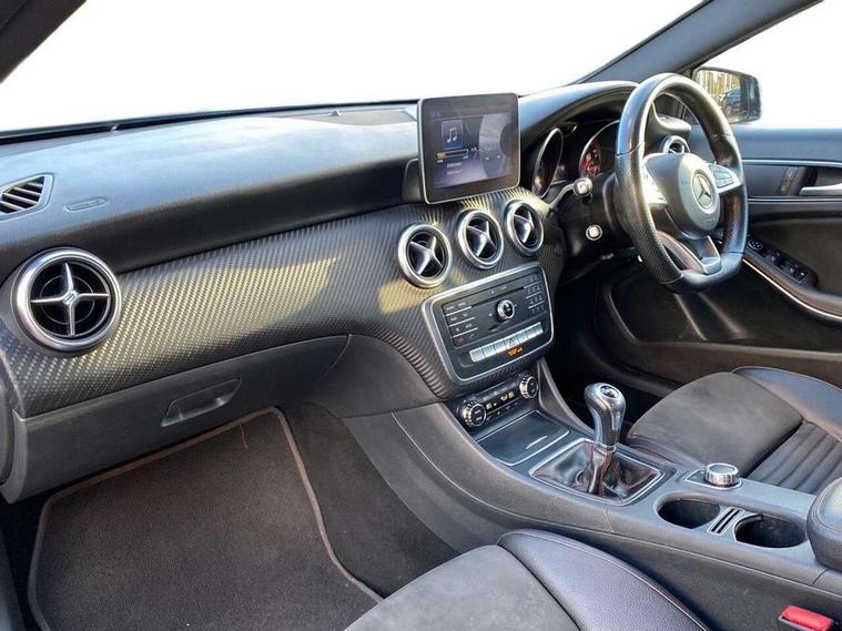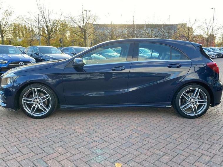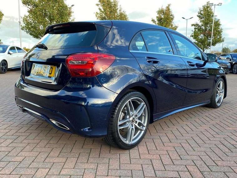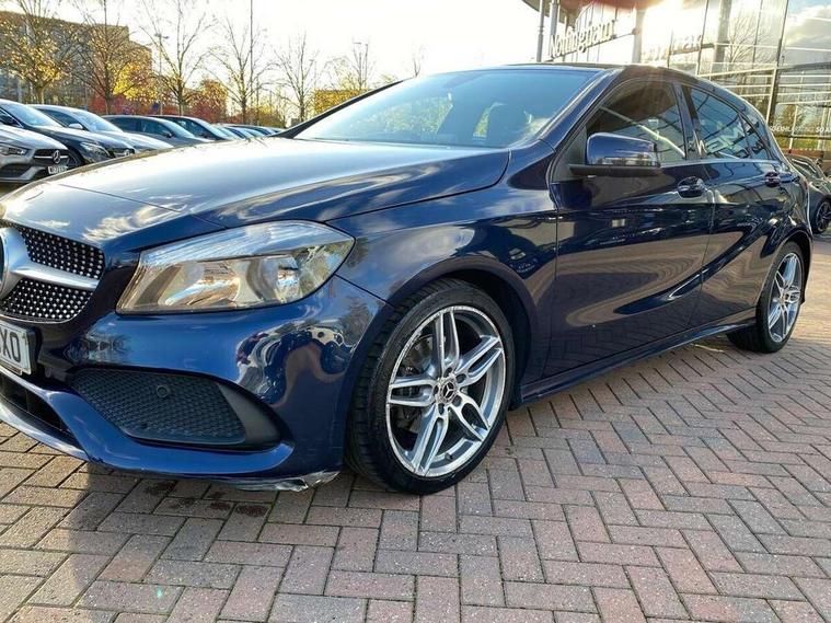 8" colour display screen, Attention assist, Bluetooth interface for hands free telephone, Bulb failure indicator, Collision prevention assist plus, DYNAMIC SELECT with a choice of driving modes (ECO, Comfort, Sport, Sport+ and Individual), External temperature gauge, Low fluid warning light, Reversing camera, Service indicator (ASSYST PLUS), Smartphone integration with Apple CarPlay, Speed dependent sports steering system, Speedtronic cruise control, Trip computer, Lowered suspension, Media interface, Mercedes Audio 20 radio/single CD + telephone keypad, USB port, Adaptive brake lights, AMG body styling, Body colour bumpers, Body colour door handles, Body colour side skirt, Daytime running lights, Diamond radiator grille with chrome pins and silver louvre + chrome insert, Electric adjustable heated door mirrors, Electric front windows, Electric rear windows, Headlamp assist, Heated rear window with timer, LED tail lights, Rain sensor windscreen wipers, Rear wiper, Twin Trapezoidal tailpipes, 1/3 to 2/3 split folding rear seats, 12V socket, 3 Spoke sports multifunction flat bottomed leather steering wheel, Ambient lighting, AMG floor mats with red stitching, Artico man-made leather/Dinamica upholstery, Auto Mercedes-Benz child seat recognition sensor, Black headlining, Brushed stainless steel sports pedals, Dual zone automatic climate control, Footwell lights, Front and rear reading lights, Front centre armrest with storage compartment, Front head restraints, Front sport seats, Height adjustable front seats, Height/reach adjustable steering column, Illuminated door sills, Illuminated glovebox, Illuminated storage compartment, Isofix rear child seat preparation, Leather gearshift, Load securing rings in luggage compartment, Luggage compartment cover, Rear head restraints, Storage compartment under load area floor, Sunvisors with illuminated vanity mirrors, Twin front cupholders, Seat comfort pack - A Class, 3 rear 3 point seatbelts, ABS with Brake Assist, Active bonnet, Adaptive brake system, Brake calipers with Mercedes-Benz lettering + perforated brake discs, Child proof door locks, Crash responsive emergency lighting, Drivers knee airbag, Dual stage driver/passenger airbags, Electronic parking brake, ESP with ASR, Front and rear seatbelt reminder, Front head airbags, Front passenger seat occupancy sensor, Front side airbags, Hill start assist, Tyre pressure monitoring system, Warning triangle and first aid kit, Window airbags, Alarm system/interior protection/immobiliser, Remote central locking, Carbon effect trim, Chrome air vent surrounds, Tirefit sealant with electric air pump,