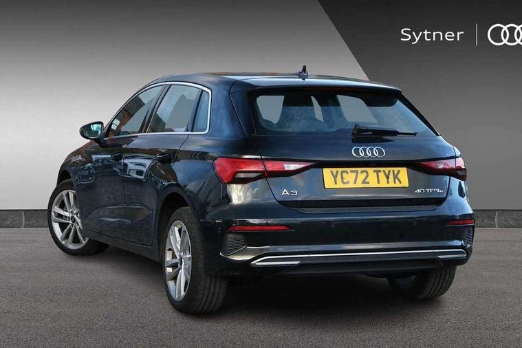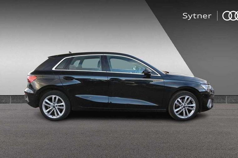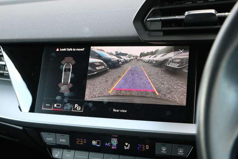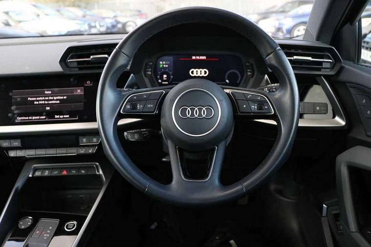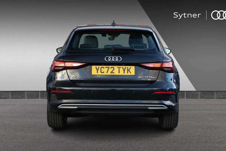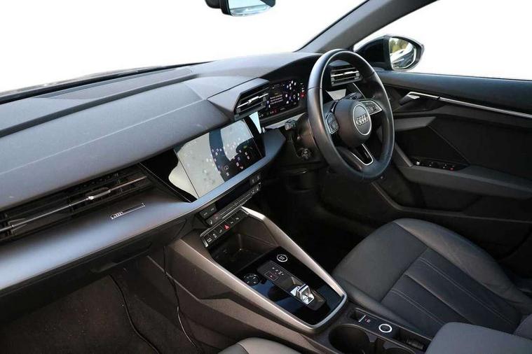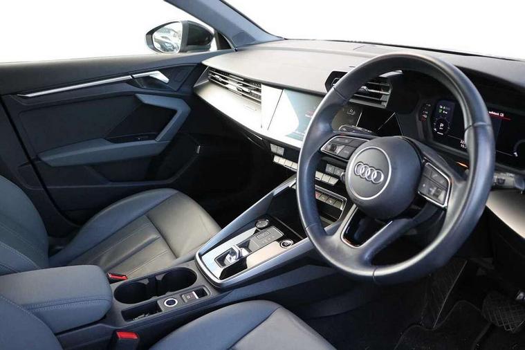 Audi drive select (Auto, Comfort, Dynamic, Efficiency and Individual), Audi smartphone interface, Audi Virtual Cockpit - 10.25" digital and colour instrument cluster, Automatic start/stop system with recuperation, Bluetooth interface, Collision avoidance assistant, e-Call (emergency call), Electromechanical power speed sensitive steering, Lane departure warning system, MMI Navigation Plus with high resolution 10.1" colour touch screen display, Service indicator, Trip computer, Voice control system with natural language interaction, 3 pin 10 amp domestic charging cable, 3.6 kw On-board charger, Standard suspension, Type 2 mode 3 32 amp charging cable, Type 2 socket for AC charging, 2xUSB-C connection with data and charging functions, 6 passive loudspeakers, DAB Digital radio, 3rd brake light, Acoustic glass windscreen, Aluminium window trim, Auto dimming frameless rear view mirror, Body colour exterior mirrors, Body colour roof spoiler, Electrically adjustable/heated/folding/auto dimming door mirrors with integrated LED indications + kerb view function for passenger side, Front electric windows, LED daytime running lights, LED headlights and halogen rear lights, Light and rain sensors, Rear electric windows, Rear side wing doors, Rear window, rear door windows and rear side windows in clear glass, Rear wiper, 12V socket and storage compartment in front centre console, 3 seat bench in 2nd row, 40/20/40 split folding rear seat bench with cupholder, Dual zone electronic climate control, Front and rear centre armrest, Front and rear headrests, Front door sill trims with aluminium inlay, Front/rear floor mats, Height and reach adjustable steering wheel, Interior lighting - Front and rear roof module including reading lights, glove compartment light and right hand side, Luggage compartment floor covering, Manual boot compartment lid, Manually adjustable front seats, Seat side bolsters, Single front passenger seat, Steel grey cloth headlining, Twin leather upholstery, Aluminium interior elements pack - A3 Sportback, Sport styling pack - A3 Sportback, 3x3 point rear seat belts, Audi pre sense front, Driver and front passenger airbag with passenger airbag deactivation, Electronic Stabilisation Control (ESC) including ABS, ASR and EDL, First aid kit with warning triangle and 2 safety vests, Front side airbags with head airbags and interaction airbag, Pre-sense front with pedestrian and cyclist detection, Seatbelt monitoring, Tyre pressure loss indicator, Anti theft alarm, Anti-theft wheel bolts, Electronically operated child lock, Immobiliser, Remote control central locking, Inlays with silk effect paint in platinum grey, Tool kit, Tyre repair kit,