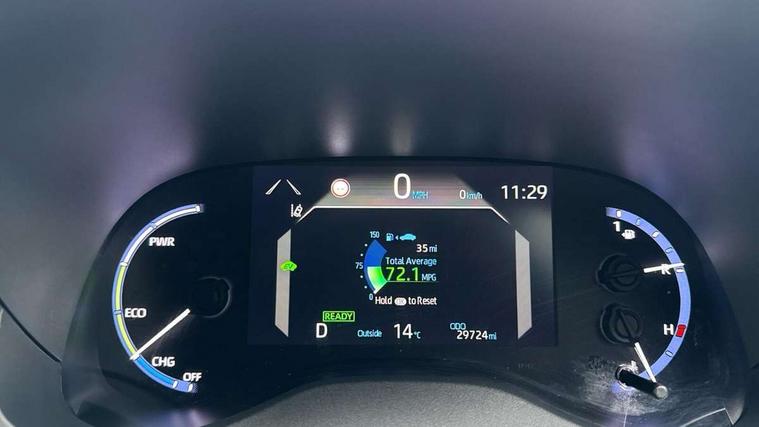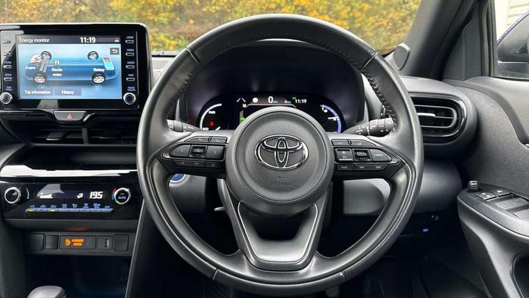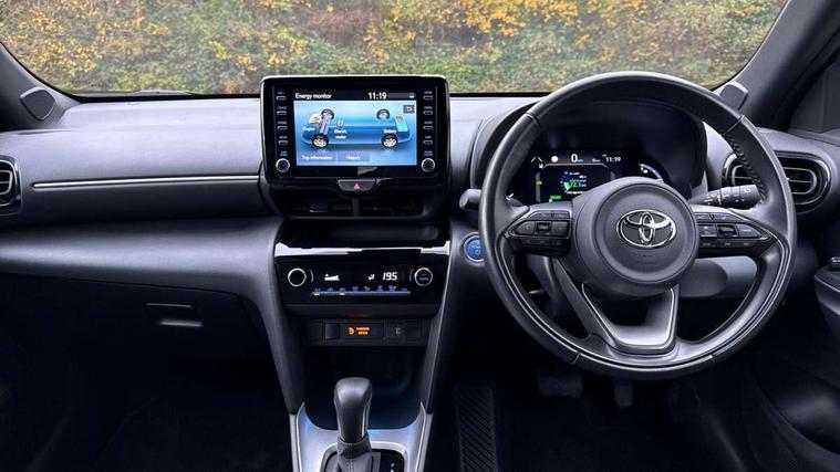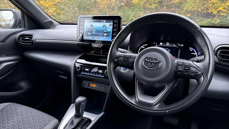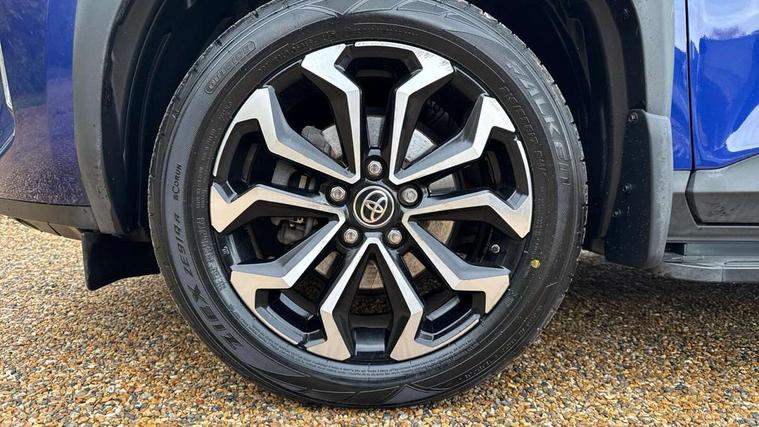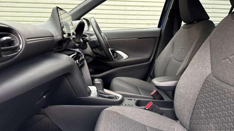 7" Multi information display screen, 8" Toyota touch 2 multimedia system with Smartphone integration with Apple CarPlay and Android auto, Adjustable speed limiter, Bluetooth connectivity, Driver attention alert system, eCall emergency system, Electric power steering, Full range intelligent adaptive cruise control, Hybrid system indicator, Key reminder warning, Lane trace assist, Multimedia, audio, telephone and voice recognition switches on steering wheel, My T Connected services, Pre-collision system enhanced with emergency steering assist, Reversing camera, Road sign assist - RSA, Steering assisted vehicle stability control, 6 speakers, DAB Digital radio, USB connection, 3rd brake light, Acoustic windscreen glass, Aluminium roof rails, Anti-jam protection on power windows, Auto high beam [AHB] with on/off switch, Automatic headlights, Black lower front grille, Black Shark-fin antenna, Black upper front grille, Black wheel arch mouldings, Body colour door handles, Body colour front bumper, Body colour rear bumper, Electric adjustable heated door mirrors, Follow me home headlights, Front and rear electric windows with auto up/down function, Front intermittent wipers, Headlight cut off reminder, Indicators integrated on door mirrors, Intermittent rear wiper, LED daytime running lights guide, LED front fog lights, LED front light guide, LED Indicators, LED projector headlights, LED rear light guide, Manual headlight levelling, Manually retractable door mirrors, Noise reduction layer on windscreen, Privacy glass, Rain sensor, Rear LED lights with sequential indicators, Rear side wing doors, Rear spoiler, Rear window defogger, 12v power outlet - front, 2x Rear coat hooks, 3 seat bench in 2nd row, 3 spoke leather steering wheel, 40:20:40 split folding rear bench seat, Adjustable speed limiter switch on steering wheel, Auto air conditioning, Black roof lining, Boot light, Central armrest, Centre console in light blue ambent lighting, Driver and front passenger personal lights, Fabric door trim, Fabric upholstery, Footwell in light blue ambient lighting, Front console box, Front cup holders, Front head restraints, Glovebox, Height adjustable driver's seat, Height adjustable front passenger seat, Hooks for luggage holding belts, ISOFIX child restraint system, Lane departure alert switch on steering control, Leather gearshift, Light blue ambient lighting on front doors, Manual telescopic and tilting steering wheel, Mirror on driver and passenger sun visor, Pollen air filter, Rear cup holders, Rear head restraints, Single front passenger seat, Soft tonneau cover, 3x3 point rear seat belts, ABS+EBD+Brake assist, Driver and passenger central airbags, Driver and passenger front airbags, Driver and passenger side airbags, Electronic parking brake, Emergency brake light system (EBS), Front seat belt reminder, Hill start assist control (HAC), Passenger airbag on/off switch, Pre-collision system with pedestrian and cyclist detection, Rear door child safety locks, Rear passenger side airbags, Rear seat belt reminder, Traction control, Tyre pressure warning system, Immobiliser, Intrusion alarm, Keyless smart entry with push button start, Power door locks, Power passenger window lock, Remote door lock, Tyre repair kit,