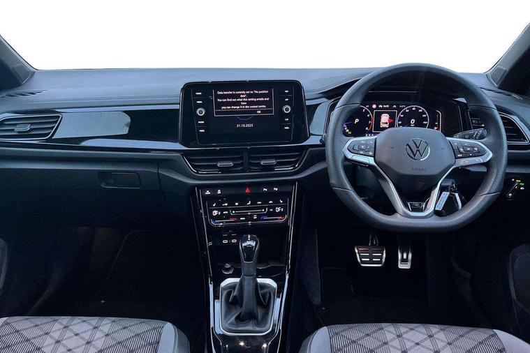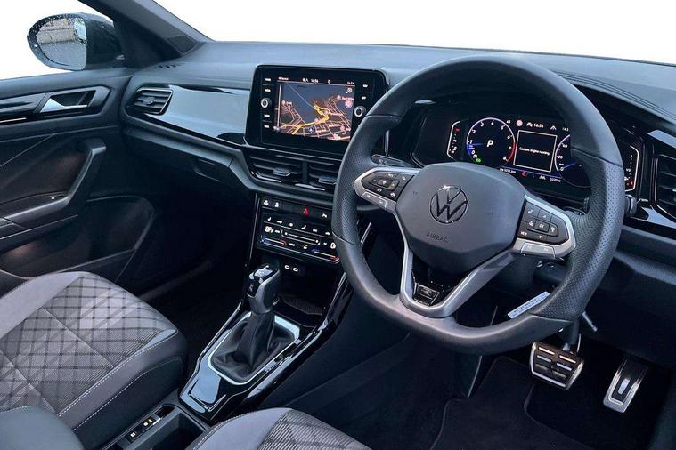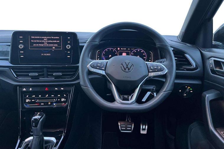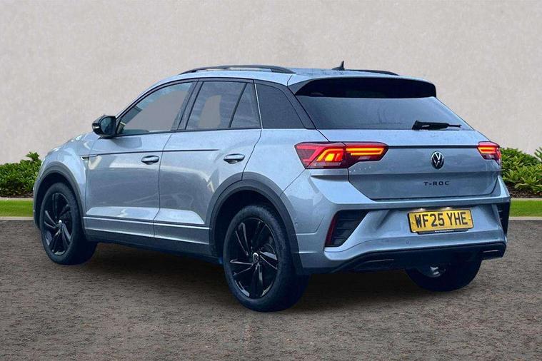 10.25" Digital cockpit pro, Advanced driver attention and drowsiness monitor, Emergency call service, Lane keeping system Lane Assist, Mobile phone interface, Modified key software - reduce switch off time for key status change to Long no motion, Online services, Park assist including front and rear parking sensors, Service interval indicator, Tailgate/trunk lid release from outside, Think blue trainer driver tips and journey analysis, Warning sound and light for front seatbelts unfastened, Wireless app connect, Battery regeneration during braking, Start/stop function with battery regeneration, DAB Digital radio, Diversity antenna for FM reception, Front and rear 6 speakers, Music playback - MP3, WMA and AAC files, Premium USB cable in choice of either Apple or Android smartphone compatibility, SD card slot, Simultaneous pairing of 2 compatible mobile devices, Title and cover art display, We Connect and We Connect Plus functionality, Auto dimming interior rear view mirror, Automatic hazard lights activation under emergency braking, Automatic headlight control with LED separate daytime running lights with coming/leaving home function, Body coloured exterior mirror housings and door handles, Electrically adjustable and heated door mirrors, Extended roof spoiler, Exterior mirrors aspherical on driver side, convex on front passenger side, External USB type C socket and charging sockets, Front windscreen wiper with intermittent wipe and 4 position delay, Heated rear window, LED 3rd brake light, LED rear combination lamps, LED rear number plate lights, Power windows with comfort operation and circuit breaker, Privacy glass for rear side windows and rear window, R-Line design body coloured bumpers, Rain sensor, Rear exhaust tailpipe, Rear fog light on one side and reversing lights on both sides, Rear side wing doors, Rear wash/wipe with intermittent wipe setting, Remote electrically foldable door mirrors, puddle lights and reverse activated passenger's door mirror, 12V power socket in centre console, 3 rear head restraints, 3 seat bench in 2nd row, 4 load lashing points in luggage compartment, Air care climatronic air conditoning system with active combination filter and 2-zone temperature control, Black roof lining, Chrome plated decorative trims, Chrome plated radiator grille inserts, air vent surrounds and light switch surrounds, Door and side trim panel with leatherette insert, Front + rear carpet mats, Front centre armrest, Front cupholders x 2, Front footwell illumination, Front reading light, Front scuff plates with R Line logo, Front seat back storage pockets, Glove compartment door with light, Instrument lighting, white adjustable panel illumination, Interior ambient lighting and surround lighting, Interior light delay, Isofix child seat preparation, Leather gearshift handle, Load-through provision with cup holder when folded down ('Unsplit rear seat bench, split folding backrest, with centre armrest), Luggage compartment lighting, Single front passenger seat, Stainless steel pedals, Storage compartment in left and right luggage area, Storage compartment in rear doors, Storage compartments in driver and front passenger doors, Sunvisors with illuminated vanity mirrors, Variable boot floor, height adjustable and removable, Driver assistance pack without proactive passenger protection - T-Roc, 3 point height adj front seatbelts + pretensioners, 3 point seatbelts in outer rear with ECE label, ABS, Child locks on rear doors, City emergency braking and pedestrian monitoring, Driver and front passenger airbag with front passenger airbag deactivation, Driver and front passenger safety-optimised head restraints, Drivers seatbelt reminder, Electronic parking brake, Electronic Stability Control (ESC) inc EDL (Electronic Differential Lock) and ASR (Traction Control), Front and rear passengers curtain airbag system including front side airbags, Hill start assist, Predictive pedestrian protection, Rear disc brakes, Two tone horn, Tyre pressure loss indicator, Volkswagen roadside assistance, Piano black decorative inserts in dashboard and front door trim panels, Trims for alloy wheels,