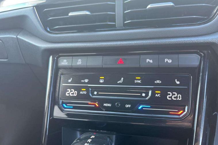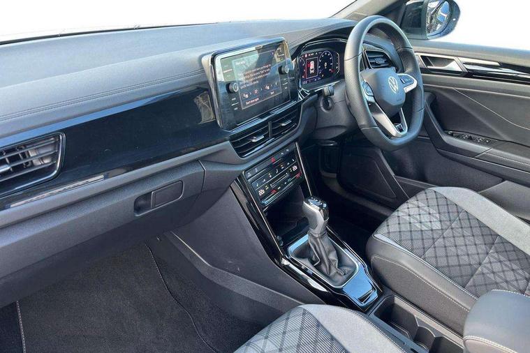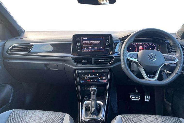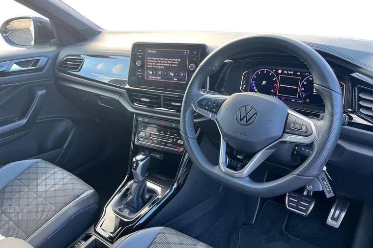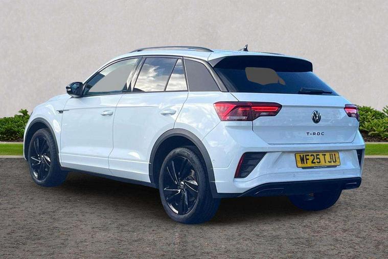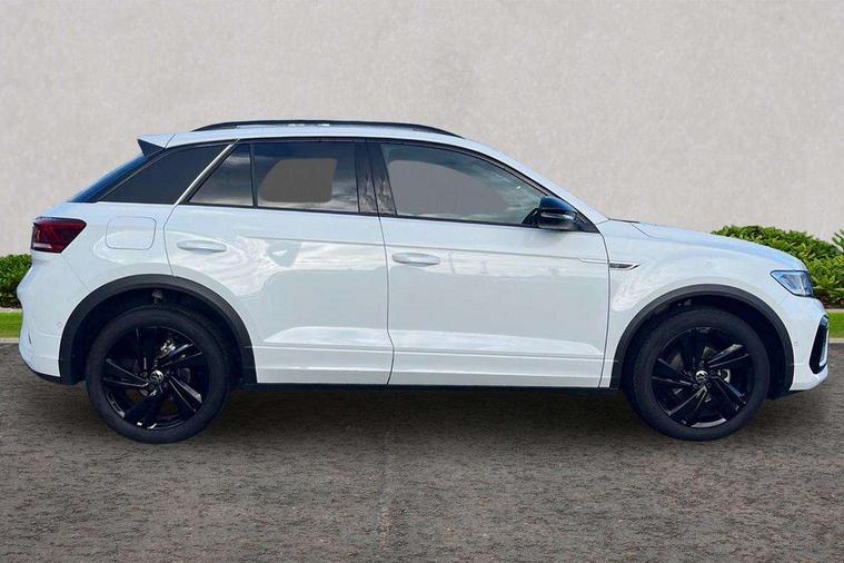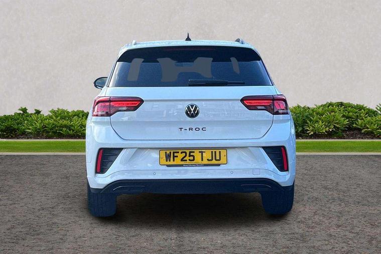 10.25" Digital cockpit pro, Advanced driver attention and drowsiness monitor, Emergency call service, Lane keeping system Lane Assist, Mobile phone interface, Modified key software - reduce switch off time for key status change to Long no motion, Online services, Park assist including front and rear parking sensors, Service interval indicator, Tailgate/trunk lid release from outside, Think blue trainer driver tips and journey analysis, Warning sound and light for front seatbelts unfastened, Wireless app connect, Battery regeneration during braking, Start/stop function with battery regeneration, DAB Digital radio, Diversity antenna for FM reception, Front and rear 6 speakers, Music playback - MP3, WMA and AAC files, Premium USB cable in choice of either Apple or Android smartphone compatibility, SD card slot, Simultaneous pairing of 2 compatible mobile devices, Title and cover art display, We Connect and We Connect Plus functionality, Auto dimming interior rear view mirror, Automatic hazard lights activation under emergency braking, Automatic headlight control with LED separate daytime running lights with coming/leaving home function, Body coloured exterior mirror housings and door handles, Electrically adjustable and heated door mirrors, Extended roof spoiler, Exterior mirrors aspherical on driver side, convex on front passenger side, External USB type C socket and charging sockets, Front windscreen wiper with intermittent wipe and 4 position delay, Heated rear window, LED 3rd brake light, LED rear combination lamps, LED rear number plate lights, Power windows with comfort operation and circuit breaker, Privacy glass for rear side windows and rear window, R-Line design body coloured bumpers, Rain sensor, Rear exhaust tailpipe, Rear fog light on one side and reversing lights on both sides, Rear side wing doors, Rear wash/wipe with intermittent wipe setting, Remote electrically foldable door mirrors, puddle lights and reverse activated passenger's door mirror, 12V power socket in centre console, 3 rear head restraints, 3 seat bench in 2nd row, 4 load lashing points in luggage compartment, Air care climatronic air conditoning system with active combination filter and 2-zone temperature control, Black roof lining, Chrome plated decorative trims, Chrome plated radiator grille inserts, air vent surrounds and light switch surrounds, Door and side trim panel with leatherette insert, Front + rear carpet mats, Front centre armrest, Front cupholders x 2, Front footwell illumination, Front reading light, Front scuff plates with R Line logo, Front seat back storage pockets, Glove compartment door with light, Instrument lighting, white adjustable panel illumination, Interior ambient lighting and surround lighting, Interior light delay, Isofix child seat preparation, Leather gearshift handle, Load-through provision with cup holder when folded down ('Unsplit rear seat bench, split folding backrest, with centre armrest), Luggage compartment lighting, Single front passenger seat, Stainless steel pedals, Storage compartment in left and right luggage area, Storage compartment in rear doors, Storage compartments in driver and front passenger doors, Sunvisors with illuminated vanity mirrors, Variable boot floor, height adjustable and removable, Driver assistance pack without proactive passenger protection - T-Roc, 3 point height adj front seatbelts + pretensioners, 3 point seatbelts in outer rear with ECE label, ABS, Child locks on rear doors, City emergency braking and pedestrian monitoring, Driver and front passenger airbag with front passenger airbag deactivation, Driver and front passenger safety-optimised head restraints, Drivers seatbelt reminder, Electronic parking brake, Electronic Stability Control (ESC) inc EDL (Electronic Differential Lock) and ASR (Traction Control), Front and rear passengers curtain airbag system including front side airbags, Hill start assist, Predictive pedestrian protection, Rear disc brakes, Two tone horn, Tyre pressure loss indicator, Volkswagen roadside assistance, Piano black decorative inserts in dashboard and front door trim panels, Trims for alloy wheels,