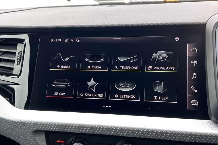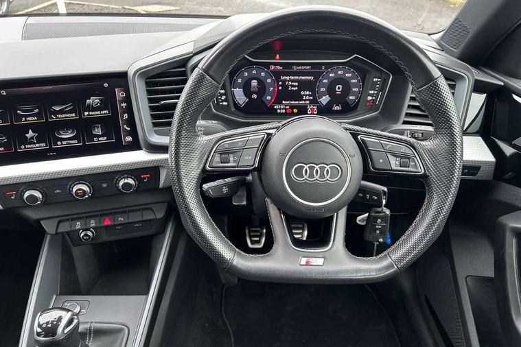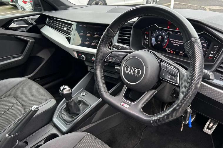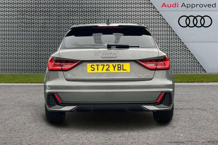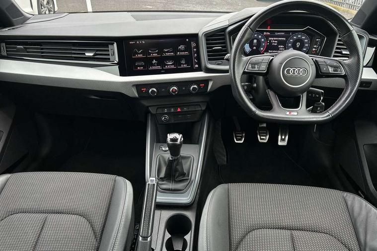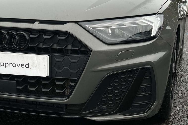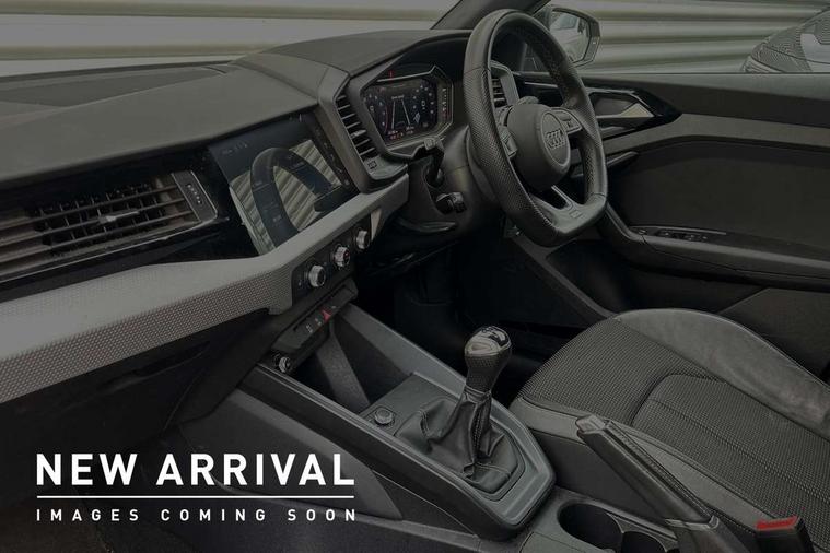 10.25" Digital instrument cluster display classis style instrument dials + speed, odometer, time, outside temperature, telephone menu + fuel level warning, Audi smartphone interface with connect compatible smartphone via USB directly MMI display + Nav, music, third party apps controlled via MMI controller, Automatic start/stop system, Bluetooth interface, Cruise control, Driver's information system, Electromechanical power steering, Emergency e-call, Emergency services call system, Lane departure warning system, Service interval indicator, Speed limiter, Voice control system, Washer fluid level indicator, Sports suspension, 1 x SDXC card reader, 2 x USB type C connection points, DAB Digital radio, MMI radio plus with 8.8" colour MMI display screen and MMI touch, Auto dimming rear view mirror, Black door mirrors, Black side skirts, Body coloured bumpers, Door sill trims with aluminium inlays and logo, Electric front and rear windows, Electrically adjustable, heated, folding door mirrors with integrated LED side indicator, Front side air inlets in grained matt black and C frame in anthracite black, Front wing badges, Heat insulating glass windscreen and side windows, Heated rear windscreen, High level LED brake light, LED headlights with LED rear lights + dynamic rear indicators + headlight adjustment and high beam, turning light + LED daytime running lights, Radiator protective grille frame in matt aluminium silver, Rain and light sensors, Rear diffuser strip in matt titanium black, Rear fog lights, Rear side wing doors, Rear wing door, Rear wiper, Side front spoiler lips in grained matt black, 12V socket in centre console with two cup holders, 3 rear seats with headrests, 3 seat bench in 2nd row, 3 spoke flat bottomed multi-function plus leather steering wheel with S badging, grips in preforated leather and contrast stitching, 40:60 Split folding rear seat or folded fully, Black cloth headlining, Driver and passenger seat with manual height adjust with forward and backwards adjustment, Front and rear black floor mats with contrast stitching in fine silver, Front head restraints, Front passenger seat, Height and reach adjustable steering wheel, ISOFIX child seat mounting for front passenger and outer rear seats including top tether attachment point of outer rear seats, Leather gear knob with aluminium trim, Luggage compartment light with front and rear reading lights, Manually adjustable lumbar support in front seats, Stainless steel pedals, Black styling pack - A1 Sportback Black Edition, LED interior lighting pack - A1, Luggage compartment pack - A1, 3x3 point rear seatbelts, Audi pre-sense front with pedestrain and cyclist recognition, Brake assist function, Driver and front passenger airbag with front side and head airbags, Electronic Stability Control including ABS, EBD, ASR and EDL, Front passenger airbag deactivation switch, Hill hold assist, Manual rear child locks, Seatbelt height adjustment for front seats, Seatbelt monitoring, Tyre pressure warning light, Warning triangle and first aid kit, Anti theft alarm, Anti theft wheel bolts and loose wheel warning, Immobiliser, Remote central locking with 2 foldaway keys, Aluminium trim for control switches, air vents and digital instrument cluster, Silver grey inlays polygon structure in diamond paint finish, Structured grey accent areas including air vents, door handle recesses and centre console in quartz paint finish, 18" 7 spoke rotor design alloy wheels in gloss anthracite black, diamond cut finish,