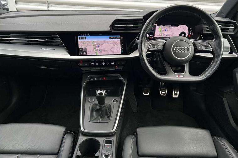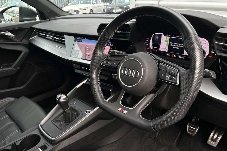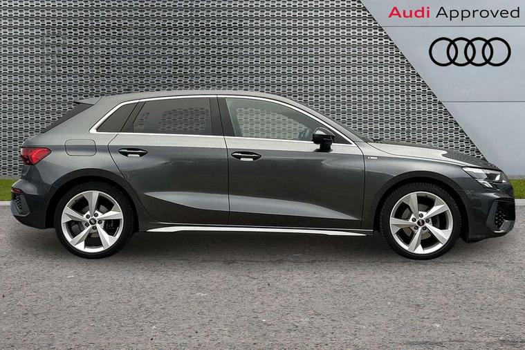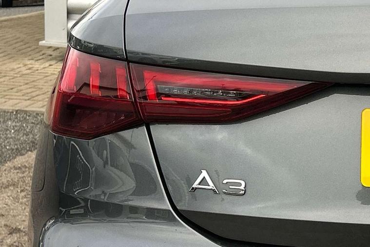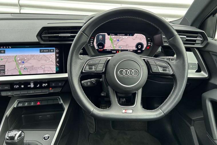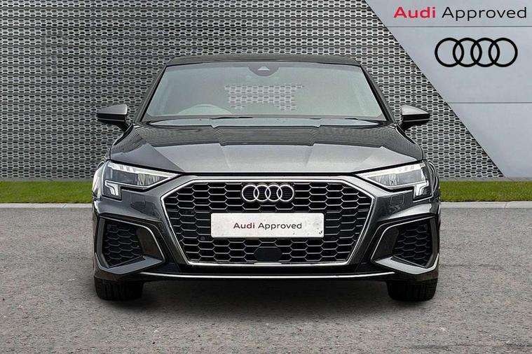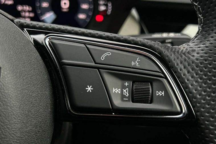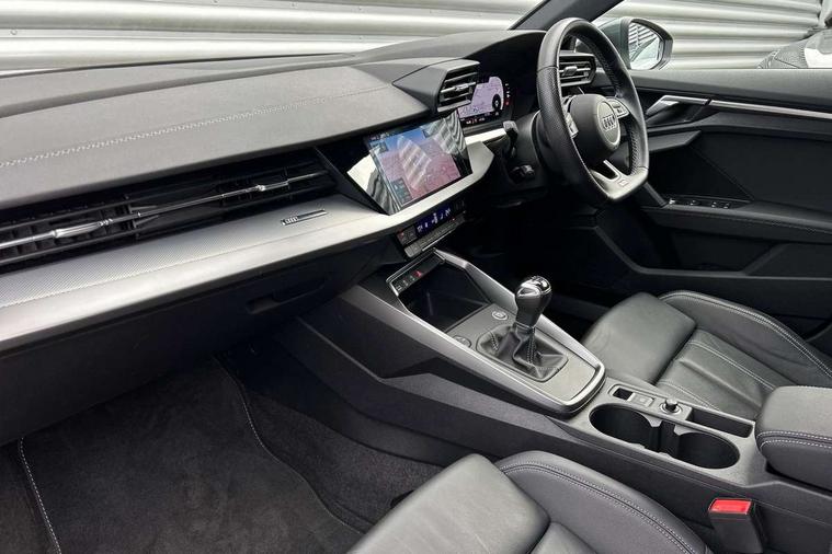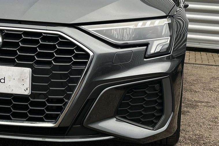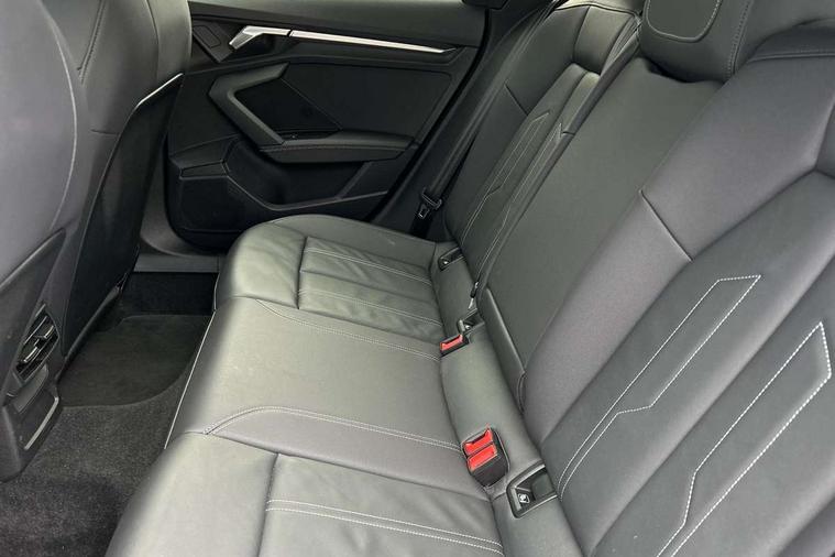 Audi drive select (Auto, Comfort, Dynamic, Efficiency and Individual), Audi smartphone interface, Audi Virtual Cockpit - 10.25" digital and colour instrument cluster, Automatic start/stop system with recuperation, Bluetooth interface, Collision avoidance assistant, Cruise control, e-Call (emergency call), Electromechanical power speed sensitive steering, Lane departure warning system, MMI Navigation Plus with high resolution 10.1" colour touch screen display, Rear parking sensors, Service indicator, Trip computer, Voice control system with natural language interaction, 2xUSB-C connection with data and charging functions, 6 passive loudspeakers, DAB Digital radio, 3rd brake light, Acoustic glass windscreen, Aluminium window trim, Auto dimming frameless rear view mirror, Electrically adjustable/heated/folding/auto dimming door mirrors with integrated LED indications + kerb view function for passenger side, Front electric windows, Illuminated aluminium inserts front door sills with S logo, LED daytime running lights, LED headlights with LED rear lights and dynamic rear indicators, Light and rain sensors, Privacy glass - dark tinted rear window, rear door and side windows, Rear electric windows, Rear side air outlets in grained matt black, Rear side wing doors, Rear wiper, S line bumpers, S roof spoiler, 12V socket and storage compartment in front centre console, 3 seat bench in 2nd row, 40/20/40 split folding rear seat bench with cupholder, Black cloth headlining, Dual zone electronic climate control, Front and rear centre armrest in leather, Front and rear headrests, Front/rear floor mats, Height and reach adjustable steering wheel, Illuminated vanity mirror, Interior lighting - glove compartment light and right hand side, Luggage compartment floor covering, Manual boot compartment lid, Manually adjustable front seats, Seat side bolsters, Single front passenger seat, Stainless steel pedals and front footrest in black, Twin leather upholstery with front sports seats S embossed logo, Aluminium interior elements pack - A3 Sportback, LED interior lighting pack - A3 Sportback, S line styling pack - A3 Sportback, 3x3 point rear seat belts, Audi pre sense front, Driver and front passenger airbag with passenger airbag deactivation, Electronic Stabilisation Control (ESC) including ABS, ASR and EDL, First aid kit with warning triangle and 2 safety vests, Front side airbags with head airbags and interaction airbag, Pre-sense front with pedestrian and cyclist detection, Seatbelt monitoring, Tyre pressure loss indicator, Anti theft alarm, Anti-theft wheel bolts, Electronically operated child lock, Immobiliser, Remote control central locking, Accent surfaces in the dashboard and centre console in platinum grey silk effect paint finish, Dark spectrum aluminium inlays,