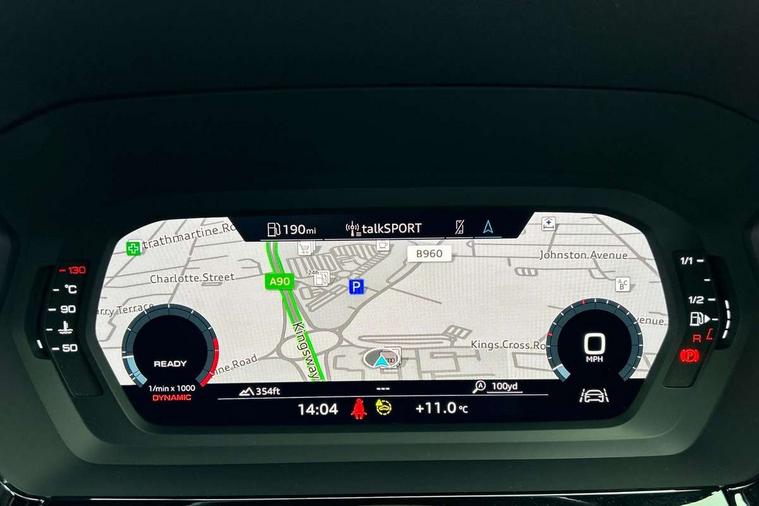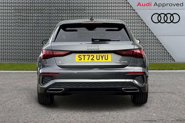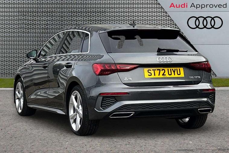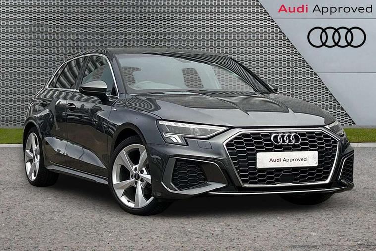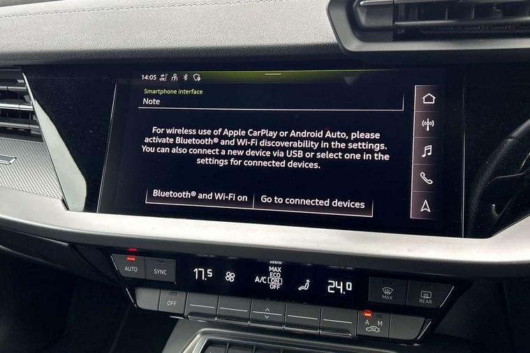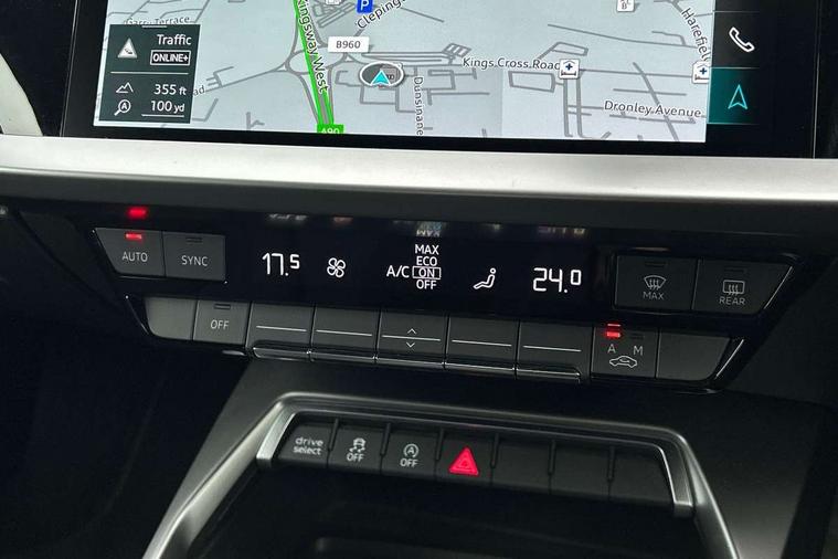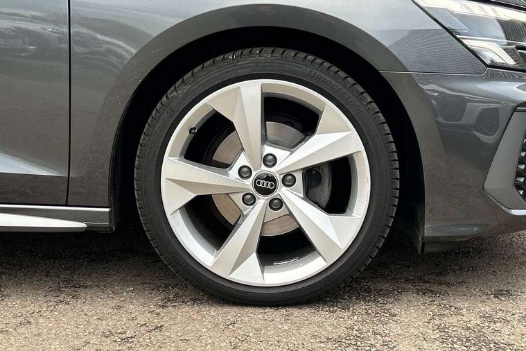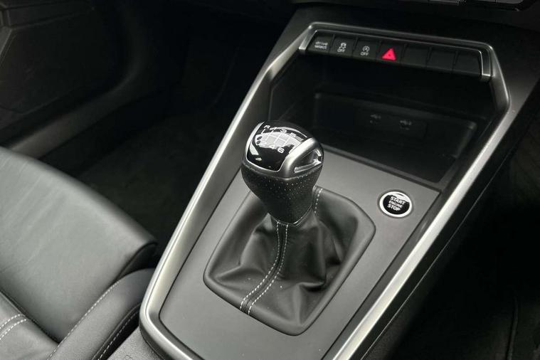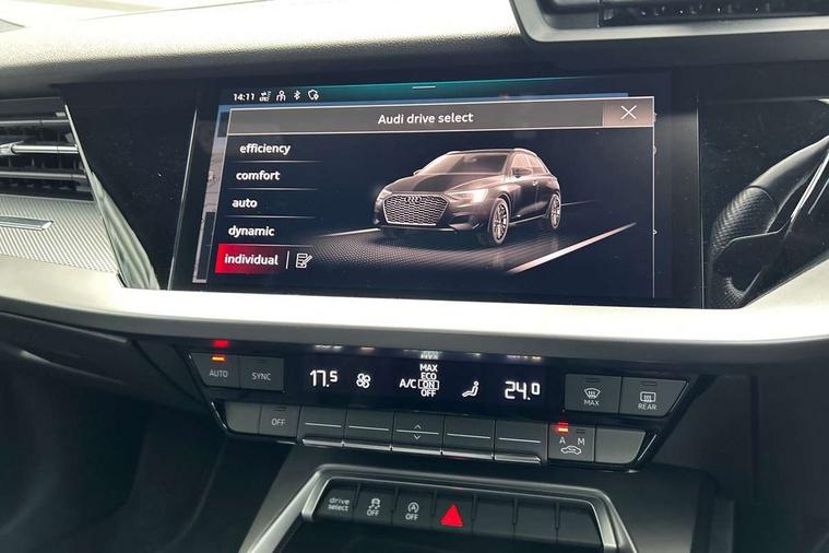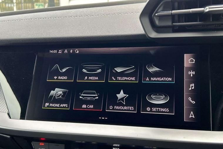 Audi drive select (Auto, Comfort, Dynamic, Efficiency and Individual), Audi smartphone interface, Audi Virtual Cockpit - 10.25" digital and colour instrument cluster, Automatic start/stop system with recuperation, Bluetooth interface, Collision avoidance assistant, Cruise control, e-Call (emergency call), Electromechanical power speed sensitive steering, Lane departure warning system, MMI Navigation Plus with high resolution 10.1" colour touch screen display, Rear parking sensors, Service indicator, Trip computer, Voice control system with natural language interaction, 2xUSB-C connection with data and charging functions, 6 passive loudspeakers, DAB Digital radio, 3rd brake light, Acoustic glass windscreen, Aluminium window trim, Auto dimming frameless rear view mirror, Electrically adjustable/heated/folding/auto dimming door mirrors with integrated LED indications + kerb view function for passenger side, Front electric windows, Illuminated aluminium inserts front door sills with S logo, LED daytime running lights, LED headlights with LED rear lights and dynamic rear indicators, Light and rain sensors, Privacy glass - dark tinted rear window, rear door and side windows, Rear electric windows, Rear side air outlets in grained matt black, Rear side wing doors, Rear wiper, S line bumpers, S roof spoiler, 12V socket and storage compartment in front centre console, 3 seat bench in 2nd row, 40/20/40 split folding rear seat bench with cupholder, Black cloth headlining, Dual zone electronic climate control, Front and rear centre armrest in leather, Front and rear headrests, Front/rear floor mats, Height and reach adjustable steering wheel, Illuminated vanity mirror, Interior lighting - glove compartment light and right hand side, Luggage compartment floor covering, Manual boot compartment lid, Manually adjustable front seats, Seat side bolsters, Single front passenger seat, Stainless steel pedals and front footrest in black, Twin leather upholstery with front sports seats S embossed logo, Aluminium interior elements pack - A3 Sportback, LED interior lighting pack - A3 Sportback, S line styling pack - A3 Sportback, 3x3 point rear seat belts, Audi pre sense front, Driver and front passenger airbag with passenger airbag deactivation, Electronic Stabilisation Control (ESC) including ABS, ASR and EDL, First aid kit with warning triangle and 2 safety vests, Front side airbags with head airbags and interaction airbag, Pre-sense front with pedestrian and cyclist detection, Seatbelt monitoring, Tyre pressure loss indicator, Anti theft alarm, Anti-theft wheel bolts, Electronically operated child lock, Immobiliser, Remote control central locking, Accent surfaces in the dashboard and centre console in platinum grey silk effect paint finish, Dark spectrum aluminium inlays,