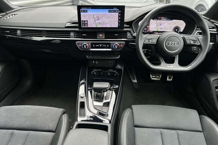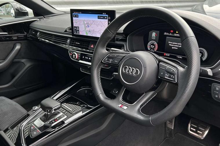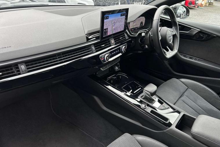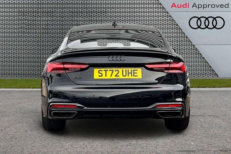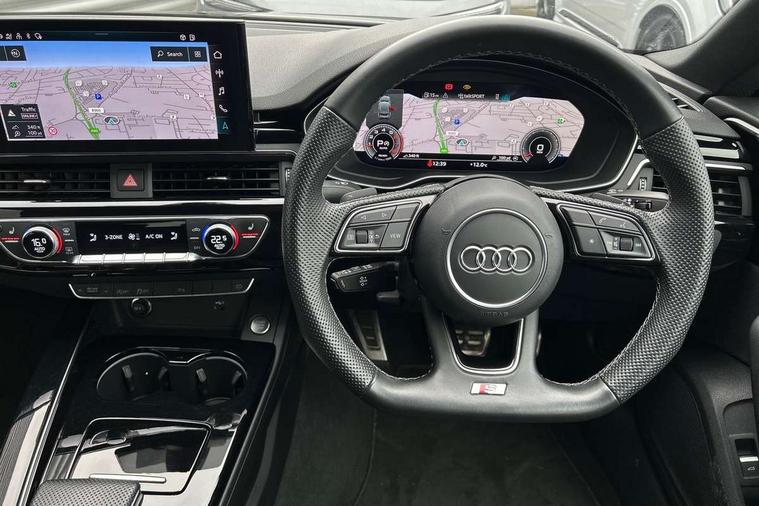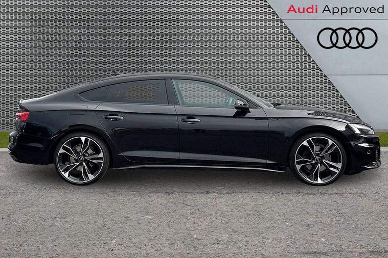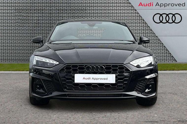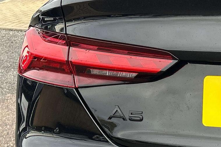 Audi connect safety and service (e-call), Audi connect with Amazon Alexa Integration, Audi drive select (Auto, Comfort, Dynamic and Individual), Audi parking system plus with front and rear sensors, Audi smartphone interface, Audi virtual cockpit - 12.3" full colour digital instrument cluster, vehicle/engine speed, Radio/media information+Driver assistance systems, Automatic start-stop system with coasting functionality and efficiency programme, Bluetooth interface, Electro-mechanical power steering, Email, calendar and text messages displayed via MMI, MMI nav+ with MMI touch - 10.1" high resolution MMI display, touch sensitive, 3D map, route/country info, dynamic route guide, personal route assist, Power operated tailgate, Rear view camera, Service interval indicator, Voice control system, Sports suspension lowered by 23mm, 8 passive loudspeakers, CD player, DAB digital radio reception, Two additional USB ports for rear passenger in rear centre console, Two SDXC card slots, Audi Beam uses LEDs to project the Audi logo, Audi matrix LED headlights with LED rear lights + dynamic front and rear indicators, Auto dimming door mirrors, Auto dimming rear view mirror, Black door mirror housings, Body colour door handles, Body colour front spoiler lip, Body colour side sill trim, Electric adjustable heated door mirrors, Electric folding door mirrors, Electric front windows, Exhaust tailpipe trims in grey, Front and rear bumpers with side skirts, Front fog lights, Honeycomb structure radiator grille in grained matt black, Kerb-view function for passenger side, LED daytime running lights, LED side indicator lights integrated into door mirrors, LED third brake light, Privacy glass, Rain and light sensors, Rear diffuser in matt titanium black with trim strip in matt aluminium silver, Rear side wing doors, S model rear spoiler in black, Side air inlets in grained matt black with matt aluminium silver inlay, Variable front intermittent wipers, Windscreen with acoustic glazing, 3 seat bench in 2nd row, 4 way electric lumbar support for driver and front passenger, 40/20/40 split folding 3 seater rear bench seat, Adjustable steering column, Black cloth headlining, Black perforated leather gearknob, Contrast stitching on seats, steering wheel and gear lever gaiter, Deluxe 3 zone electronic climate control, Front centre armrest, Front head restraints, Front/rear floor mats, Heated front seats, Illuminated door sill trim with S logo, ISOFIX child seat mounting and top tether, Luggage compartment mat, Manual seat adjustment, Rear centre armrest, Rear headrests, Single front passenger seat, Stainless steel pedals, Sunvisors with vanity mirrors, Black styling pack - A5 Coupe/Sportback, LED interior light pack - A5/RS5, 3x3 point rear seatbelts, 6 airbags - Driver, front passenger, curtain and side airbags, Electromechanical parking brake, Electronic Stabilisation Control (ESC) including ABS, ASR and EDL, Front passenger airbag deactivation, Height adjustable front seatbelts, Hill hold assist, Manual child lock in rear doors, Multi collision brake assist, Pop-up bonnet for pedestrian protection, Pre sense city, Seatbelt monitoring, Tyre pressure warning, Variable restraint system, Warning triangle and first aid kit, Anti theft alarm system, Anti theft wheel bolts, Immobiliser, Keyless Go, Remote central locking, Piano black finish inlay, 20" 5 twin spoke polygon design alloy wheels in gloss anthracite black and gloss turned finish, Tool kit, Tyre repair kit,