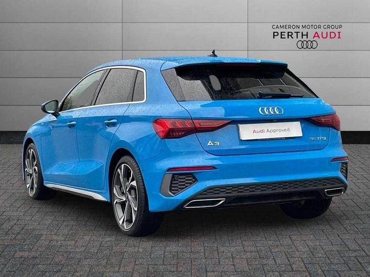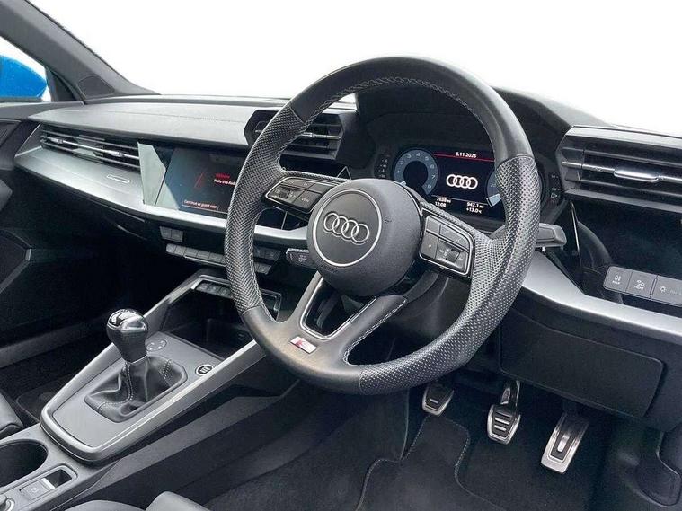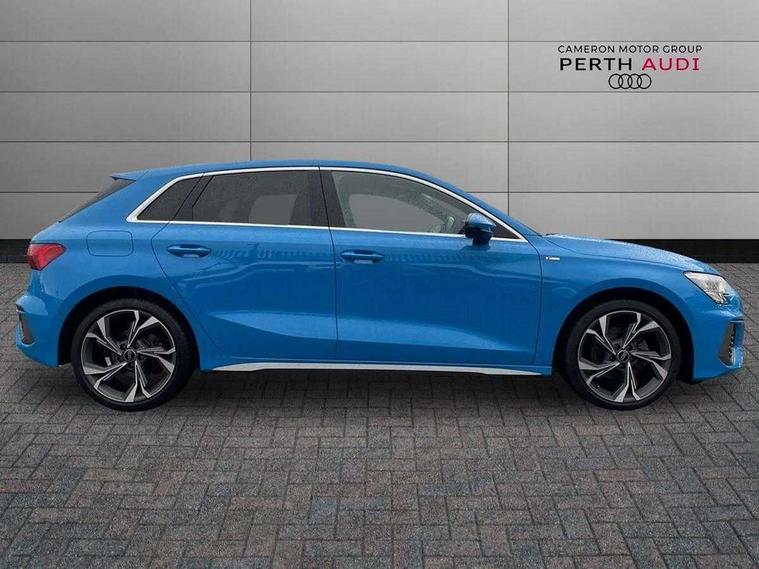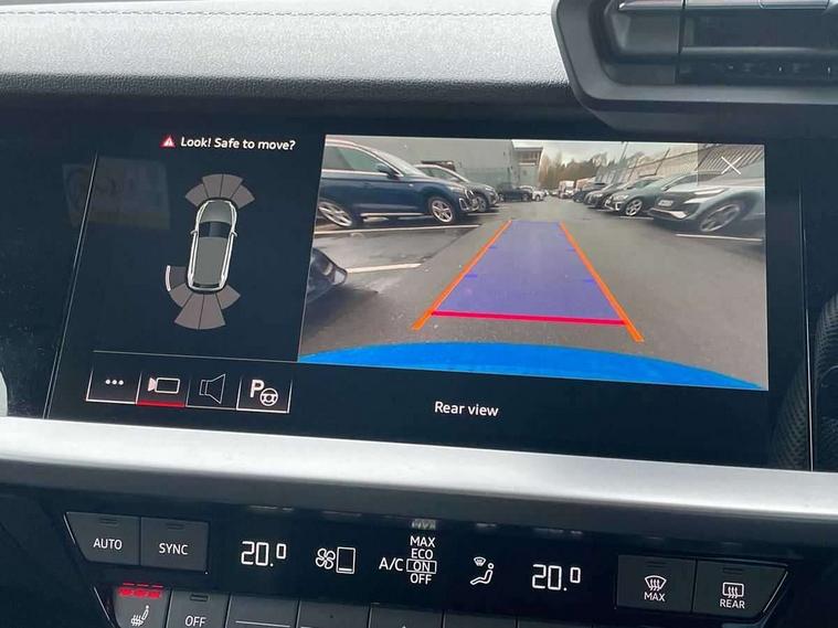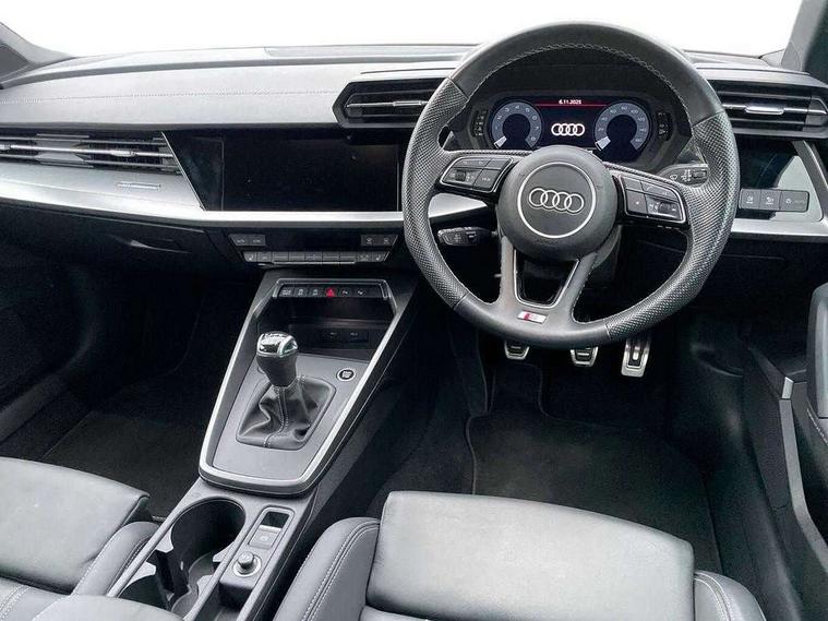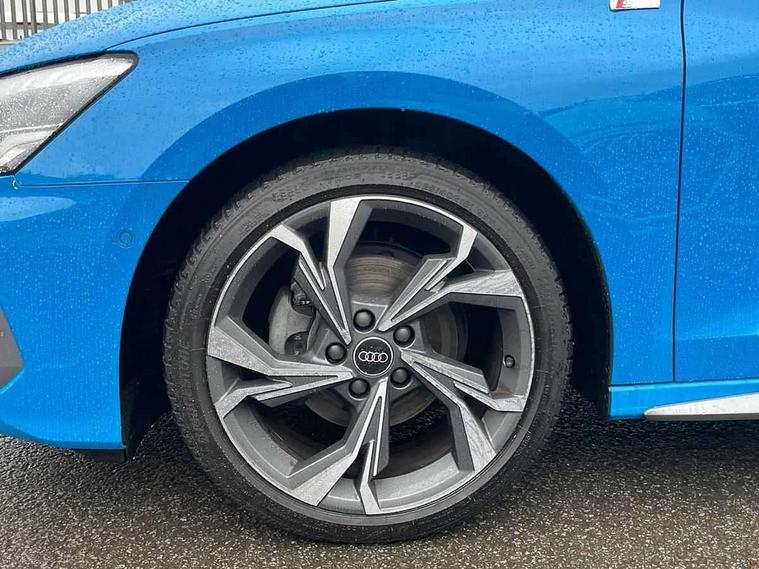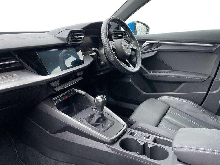 Audi drive select (Auto, Comfort, Dynamic, Efficiency and Individual), Audi smartphone interface, Audi Virtual Cockpit - 10.25" digital and colour instrument cluster, Automatic start/stop system with recuperation, Bluetooth interface, Collision avoidance assistant, Cruise control, e-Call (emergency call), Electromechanical power speed sensitive steering, Lane departure warning system, MMI Navigation Plus with high resolution 10.1" colour touch screen display, Rear parking sensors, Service indicator, Trip computer, Voice control system with natural language interaction, Sports suspension, 2xUSB-C connection with data and charging functions, 6 passive loudspeakers, DAB Digital radio, 3rd brake light, Acoustic glass windscreen, Aluminium window trim, Auto dimming frameless rear view mirror, Body colour exterior mirrors, Electrically adjustable/heated/folding/auto dimming door mirrors with integrated LED indications + kerb view function for passenger side, Front electric windows, Illuminated aluminium inserts front door sills with S logo, LED daytime running lights, LED headlights with LED rear lights and dynamic rear indicators, Light and rain sensors, Privacy glass - dark tinted rear window, rear door and side windows, Rear electric windows, Rear side air outlets in grained matt black, Rear side wing doors, Rear wiper, S line bumpers, S roof spoiler, 12V socket and storage compartment in front centre console, 3 seat bench in 2nd row, 3 spoke leather multifunction steering wheel, 40/20/40 split folding rear seat bench with cupholder, Black cloth headlining, Dual zone electronic climate control, Front and rear centre armrest in leather, Front and rear headrests, Front/rear floor mats, Height and reach adjustable steering wheel, Illuminated vanity mirror, Interior lighting - glove compartment light and right hand side, Luggage compartment floor covering, Manual boot compartment lid, Manually adjustable front seats, Seat side bolsters, Single front passenger seat, Stainless steel pedals and front footrest in black, Twin leather upholstery with front sports seats S embossed logo, Aluminium interior elements pack - A3 Sportback, LED interior lighting pack - A3 Sportback, S line styling pack - A3 Sportback, 3x3 point rear seat belts, Audi pre sense front, Driver and front passenger airbag with passenger airbag deactivation, Electronic Stabilisation Control (ESC) including ABS, ASR and EDL, First aid kit with warning triangle and 2 safety vests, Front side airbags with head airbags and interaction airbag, Pre-sense front with pedestrian and cyclist detection, Seatbelt monitoring, Tyre pressure loss indicator, Anti theft alarm, Anti-theft wheel bolts, Electronically operated child lock, Immobiliser, Remote control central locking, Accent surfaces in the dashboard and centre console in platinum grey silk effect paint finish, Dark spectrum aluminium inlays,