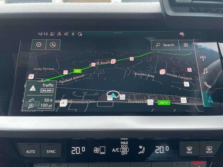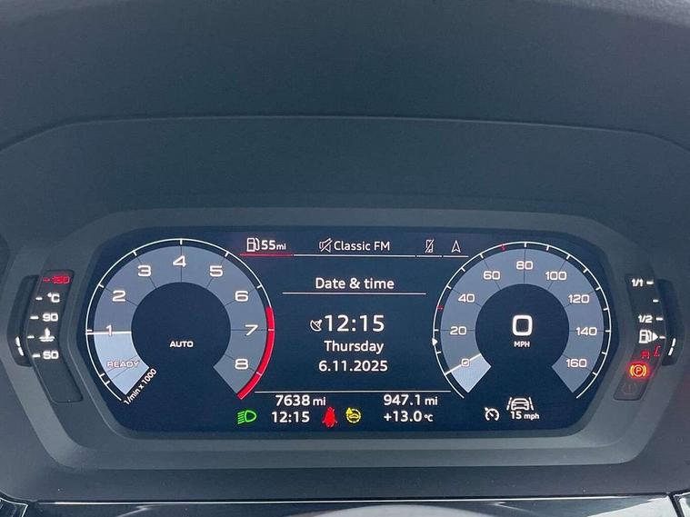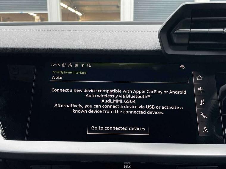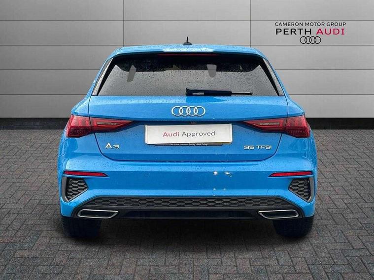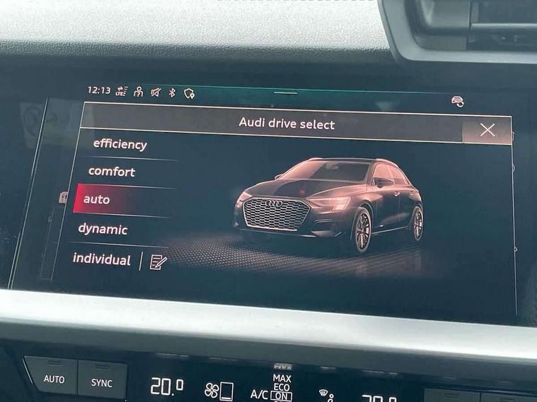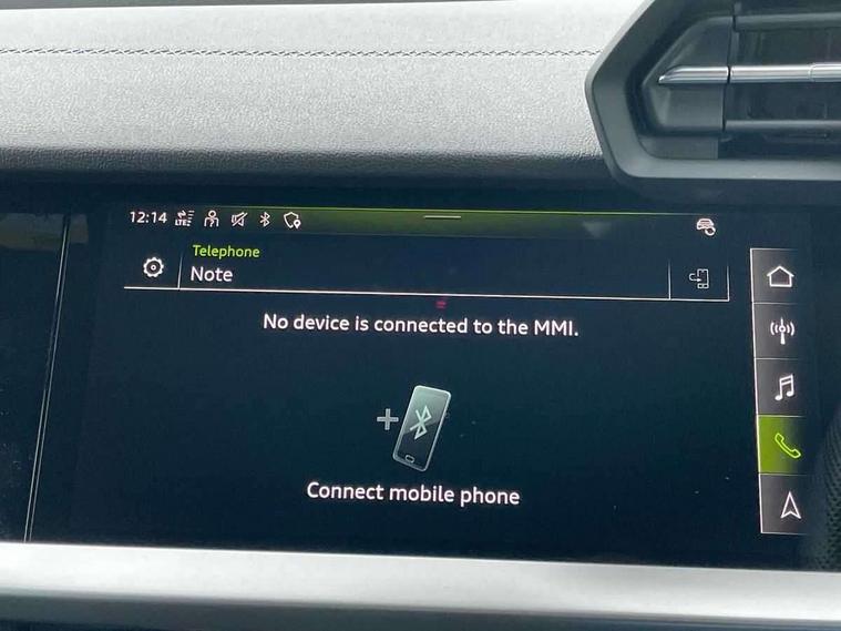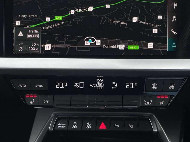 Audi drive select (Auto, Comfort, Dynamic, Efficiency and Individual), Audi smartphone interface, Audi Virtual Cockpit - 10.25" digital and colour instrument cluster, Automatic start/stop system with recuperation, Bluetooth interface, Collision avoidance assistant, Cruise control, e-Call (emergency call), Electromechanical power speed sensitive steering, Lane departure warning system, MMI Navigation Plus with high resolution 10.1" colour touch screen display, Rear parking sensors, Service indicator, Trip computer, Voice control system with natural language interaction, Sports suspension, 2xUSB-C connection with data and charging functions, 6 passive loudspeakers, DAB Digital radio, 3rd brake light, Acoustic glass windscreen, Aluminium window trim, Auto dimming frameless rear view mirror, Body colour exterior mirrors, Electrically adjustable/heated/folding/auto dimming door mirrors with integrated LED indications + kerb view function for passenger side, Front electric windows, Illuminated aluminium inserts front door sills with S logo, LED daytime running lights, LED headlights with LED rear lights and dynamic rear indicators, Light and rain sensors, Privacy glass - dark tinted rear window, rear door and side windows, Rear electric windows, Rear side air outlets in grained matt black, Rear side wing doors, Rear wiper, S line bumpers, S roof spoiler, 12V socket and storage compartment in front centre console, 3 seat bench in 2nd row, 3 spoke leather multifunction steering wheel, 40/20/40 split folding rear seat bench with cupholder, Black cloth headlining, Dual zone electronic climate control, Front and rear centre armrest in leather, Front and rear headrests, Front/rear floor mats, Height and reach adjustable steering wheel, Illuminated vanity mirror, Interior lighting - glove compartment light and right hand side, Luggage compartment floor covering, Manual boot compartment lid, Manually adjustable front seats, Seat side bolsters, Single front passenger seat, Stainless steel pedals and front footrest in black, Twin leather upholstery with front sports seats S embossed logo, Aluminium interior elements pack - A3 Sportback, LED interior lighting pack - A3 Sportback, S line styling pack - A3 Sportback, 3x3 point rear seat belts, Audi pre sense front, Driver and front passenger airbag with passenger airbag deactivation, Electronic Stabilisation Control (ESC) including ABS, ASR and EDL, First aid kit with warning triangle and 2 safety vests, Front side airbags with head airbags and interaction airbag, Pre-sense front with pedestrian and cyclist detection, Seatbelt monitoring, Tyre pressure loss indicator, Anti theft alarm, Anti-theft wheel bolts, Electronically operated child lock, Immobiliser, Remote control central locking, Accent surfaces in the dashboard and centre console in platinum grey silk effect paint finish, Dark spectrum aluminium inlays,