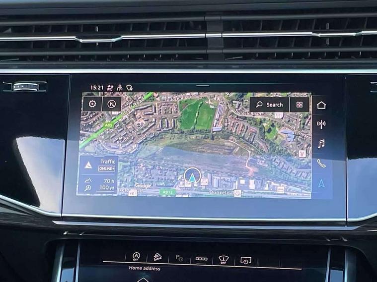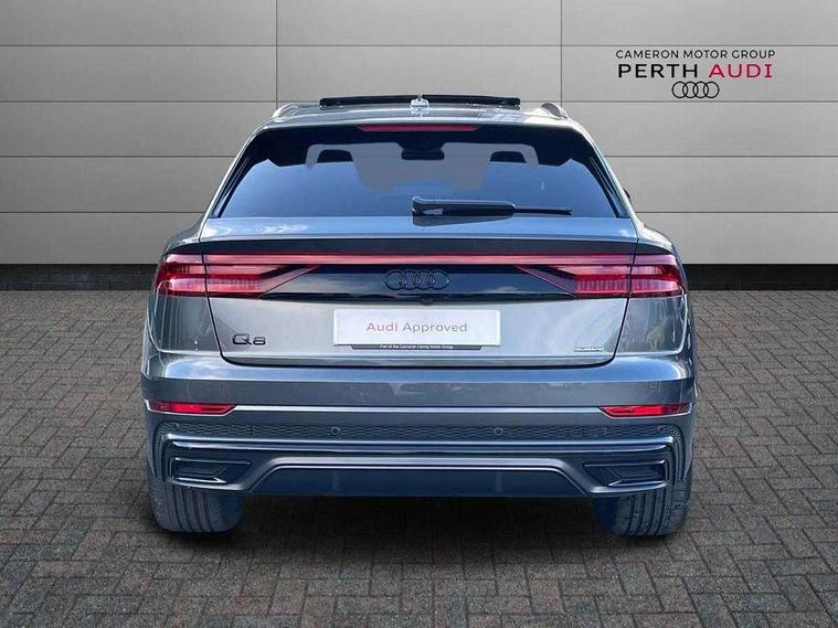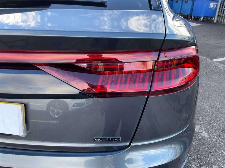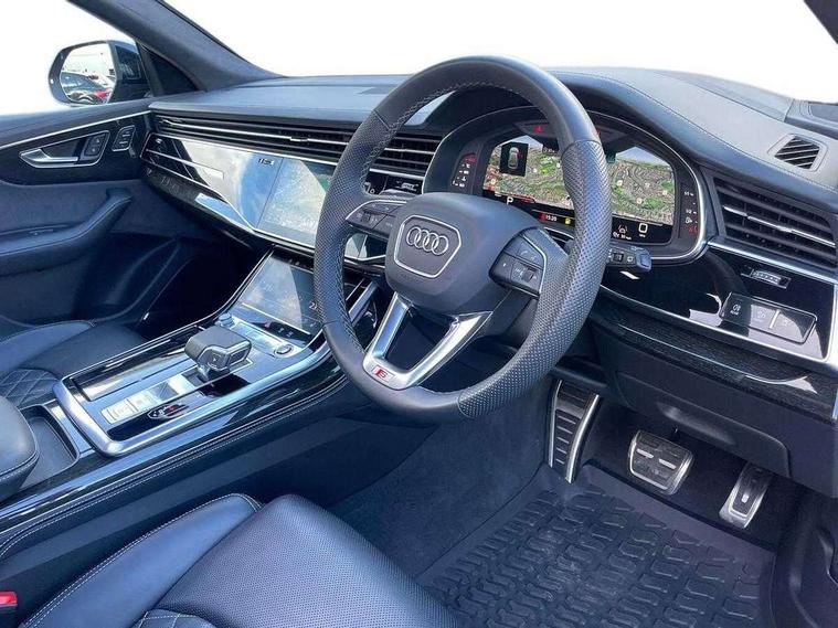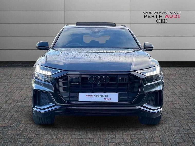 10.1" and 8.6" Dual colour touchscreens, 2 USB C ports with charging functionality in the rear, 360 camera, Adaptive cruise control, All wheel steering, Audi connect safety and service (e-call), Audi connect with Amazon Alexa Integration, Audi drive select, Audi phone box light with wireless charging, Audi side assist, Audi virtual cockpit plus, Automatic start/stop system, Camera based traffic sign recognition, Collision avoidance assistant, Cross traffic assist front and rear, Electro-mechanical PAS, Head up Display, Lane departure warning with emergency assist, Low washer fluid indicator, MMI - Multi Media Interface control system, MMI navigation plus with MMI touch, Natural voice recognition, On board computer, Operating buttons in black, glass look with haptic feedback, Power door closure, Power operated tailgate, Predictive efficiency assistant, Remote park assist plus, Service interval indicator, Smartphone interface includes wireless Apple carplay/Android Auto, Turn Assist, 48V Mild hybrid technology, Adaptive sport air suspension, Diesel particulate filter, Quattro all wheel drive with self locking centre differential, Audi music interface with 2 USB ports with charge and data functions, Aux-in socket, Bang + Olufsen sound system, DAB Digital radio, 3rd brake light, Acoustic windscreen, Adaptive windscreen wipers with integrated washer jets, Aluminium window trim, Audi beam, Audi HD Matrix LED headlights with dynamic front and rear indicators, Auto dimming frameless rear view mirror, Coming/leaving home lighting function, Electric front+rear windows, Electric panoramic glass sunroof, Electrically folding auto dimming/adjustable/heated door mirrors with memory function, LED side indicators and kerb view function for passenger side, Gloss black finish for exterior Audi rings and Q8 logo without engine badging, Headlight washers, Heat insulating glass in windshield, LED signature daytime running lights, Platinum grey front spoiler lip and diffuser insert with honeycomb grille in black, Privacy glass - dark tinted rear and rear side windows from B-pillar backwards, Rain and light sensors, Rear side wing doors, Rear wiper, 3 bench rear seats in 2nd row, 3 spoke heated leather multi-function sport steering including paddle shift, 4 zone deluxe automatic climate control, 4-way lumbar support for front seats, 40:20:40 split folding rear bench seat, Audi phone box light, Black dinamica headlining, Comfort front centre armrest, Double sun visor with illuminated vanity mirror on driver and passenger side extendable, Driver and front passenger seat memory function for electrically adjustable front seats, Electric luggage compartment cover, Electric sunblind for the rear side windows and manual sunblind for the rear window, Front head restraints, Front/rear floor mats, Heated front and outer rear seats, ISOFIX child seat mounting for front passenger seat and 2 outer rear seats with top tether child seat mounting for all 3 rear seats, Luggage compartment sill protection in stainless steel, Massage and ventilation function for front seats, Power adjustable steering wheel, Rear centre armrest with 2 cupholders, Rear headrests, Seat cushion displaceable by 100mm in the ratio 60:40, Single front passenger seat, Stainless steel pedals, Valcona leather upholstery + front super sport seats with S embossed logo, Ambient lighting package plus - Q8, Extended leather pack - Q8, Multi coloured extended LED Interior lighting pack - Q8, 3 point seatbelts on all seats, Audi pre sense basic, Audi pre sense front, Audi pre sense rear, Child locks on rear doors, Driver and front passenger, front side and curtain airbags, Electromechanical parking brake, Electronic Stability Control (ESC) including ABS, ASR and EDL, Exit warning, Front passenger airbag deactivation, Hill descent control, Hill hold assist, Predictive pedestrian protection, Seatbelt monitoring, Traction control, Tyre pressure loss indicator, Warning triangle and first aid kit, Advanced key, Anti theft alarm with tow away protection, Anti-theft wheel bolts and wheel loosening detection, Immobiliser, Polished oak trim with grey finish inlay, Tool kit, Tyre repair kit,