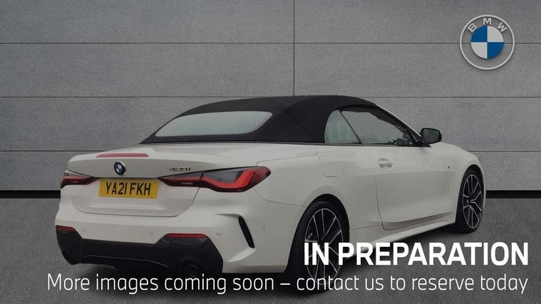 Active guard plus, Attentiveness assist, Auto start-stop, Bluetooth hands free facility with USB audio interface with audio streaming, BMW ConnectedDrive online services, BMW Live Cockpit Professional Nav with 12.3" instrument display + 10.25" display, Intelligent Voice Assist, BMW OS 7, HDD, 2USB, 4G LTE connect, BMW service history, BMW Teleservices, Brake pad wear indicator in front and rear, Check Control warning system for monitoring of lights and door/luggage compartment open warning, Condition based service, Cruise control with brake assist, Electric power steering, Electric power steering with Servotronic steering optimised at all speed ranges, Gearshift time display in manual mode, iDrive controller on centre console, Instrument cluster with speedometer with mph readout, tachometer, fuel gauge and oil temperature gauge, Integrated owners handbook, Oil sensor for level and grade, warning by check control system, On board computer - average speed, fuel consumption, outside temp display with acoustic warning, clock/date, service interval, odometer/trip meter, Optimum shift indicator, Variable sport steering, 8 speed automatic steptronic transmission with gearshift paddles, Balanced 50/50 weight distribution, Double VANOS, Drive performance control - ECO PRO, comfort and sport modes, High precision injection, Low centre of gravity, M sport suspension, Petrol Particulate Filter, Stroke dependent dampers, VALVETRONIC engine management, DAB tuner, Electronic service booklet, Acoustic glazing, Adaptive LED Headlights, Automatic headlight beam throw control with load dependent regulating reaction, dynamic compensation of braking dive and acceleration squat, Automatically dimming electrochromatic rear view mirror, BMW emblem on engine compartment lid and tailgate, BMW kidney grille with mesh grille front side of the nuggets in matt aluminium and frame in chrome high gloss, Body colour fuel filler flap, Body colour roof fin, Brushed aluminium inserts in the front door sill finishers with BMW designation, Dynamic brake lights, Electric windows - front and rear, with open/close fingertip control, anti trap facility and comfort closing function all round, Exhaust tailpipe - split left and right, Exterior mirrors - electrically folding with anti-dazzle, Fading support, Front and rear bumper system, Front apron plastic in body colour, Green tinted heat protection glazing, High gloss shadow line exterior trim, Illuminated bow type door handles in body colour drivers side with door lock, Interior rear view electrochromatic mirror with automatic anti dazzle function, LED front fog lights, Licence plate panel integrated into front bumper and tailgate, Lightweight engineering, M designation on front side panels, left and right, Model designation on right side of tailgate, One piece front bumper cover including towing eye cover in body colour, Preparation for high beam assistant, Rain sensor, Side frame decorative moulding black matt, Two part LED tailights in L-shape with components in smoked glass, brake light, LED turn indicator and rear fog light, Visible VIN plate, Welcome lights in interior and door handle area, Widened track and increased camber values for max transverse dynamics, agility and steering precision, Window recess cover black high gloss, Windscreen wipers with integrated washing jets, 12V power socket in front centre console, 2 front cupholder in centre console with clamping elements and matt black inlay, 2 Rear seat headrests, 3 spoke M sport leather multifunction steering wheel, 3 zone automatic air conditioning, 4 pieces lashing eyelets in luggage compartment, 40:20:40 split folding rear seat and rear centre armrest with two cupholders, Ambient lighting with welcome carpet light, Armrest integrated in front and rear door trim + front centre console armrest, Electric seat adjustment with memory, Four grab handles integrated in roof lining, Front and rear door exit lighting (left / right), Front and rear door pockets, Front and rear footwell lights, Front and rear reading lights, Front headrests, Front seat backrest width adjustment, Front sport seats, Heated driver and front passenger seats, Height adjustable mechanically and infinitely variable steering column, Illuminated armrest storage compartment, Illuminated glove compartment with separate small compartment, Luggage compartment light, Make-up mirror lights, Storage compartment in rear centre console, Sunvisors with vanity mirrors and ticket pocket, Toolkit located in luggage compartment, Velour front floor mats, Vernasca leather upholstery, Connected professional pack - 4 Series, M sport exterior styling pack - 4 Series, 2 x 3-point rear seat belts, Battery safety cut-off, BMW emergency call, Brake energy regeneration, Braking pre-tensioning, CBC - (Cornering brake control), Child proof locking system in rear door, Child seat ISOFIX attachment for the two outer rear seats, Coasting in idle in ECO PRO mode, Crash sensor activating of airbags, Unlocking doors, hazard warning lights, fuel cut off, interior lighting+activation of safety battery terminal clamp, Driver and front passenger side airbags, integrated in the door side seat backrest bolsters for all seat variants, Driver/Front Passenger airbags, Dry braking, Dynamic brake control, Dynamic stability control + (DSC+) - Anti-lock Braking System (ABS) with brake assist and cornering brake control + Automatic Stability Control (ASC), Dynamic Traction Control - DTC, Electromechanical parking brake including automatic hold function and automatic release of the parking brake when pulling away, Electronic differential lock control (EDLC), Front and rear ventilated brake disc, Front passenger manual airbag deactivation, Head airbags for all 4 outer seats, Hill start assistant, Seat belt security check for driver and front passenger, Seat belt with belt stopper, pyrotechnic belt tensioners and belt force limiters, Side impact protection, Tyre pressure monitoring with three level 