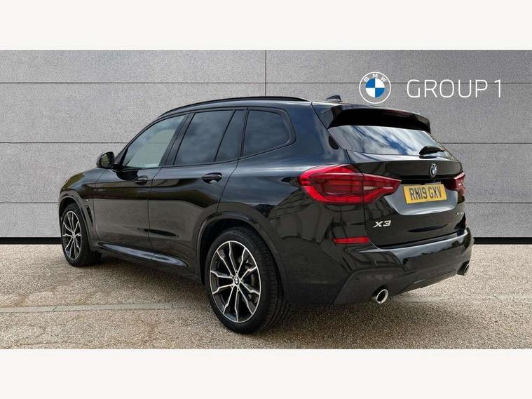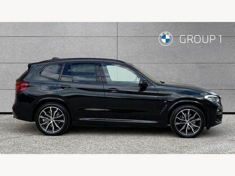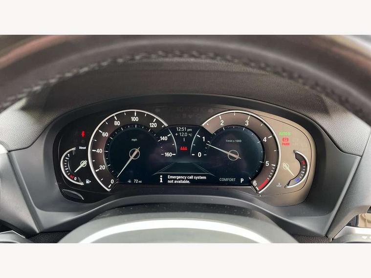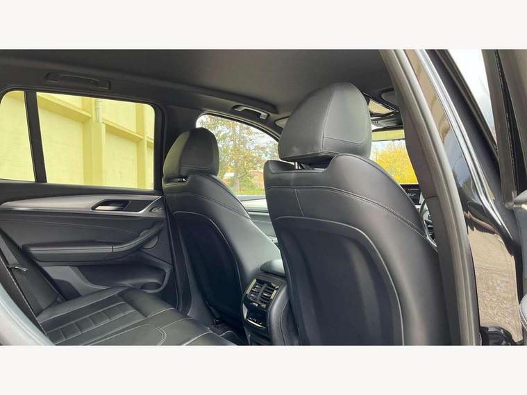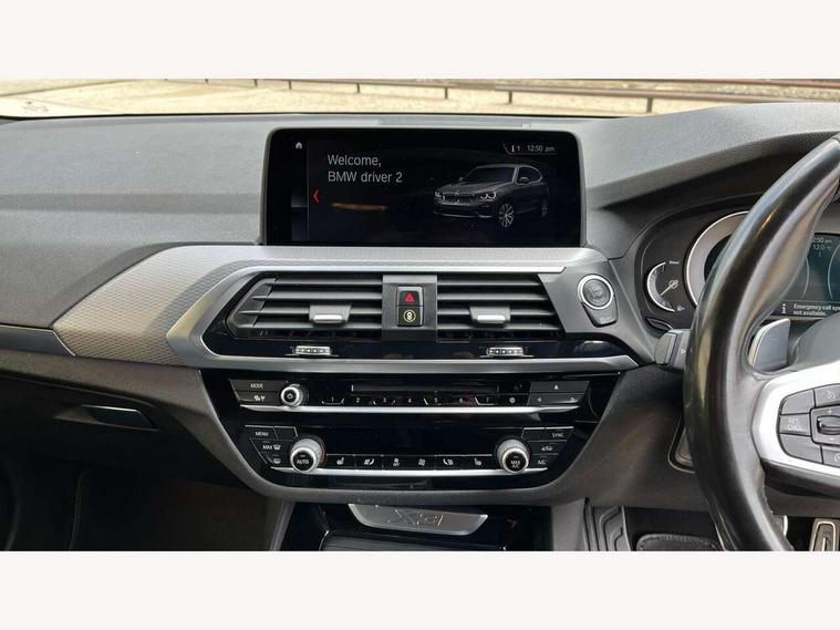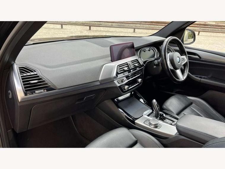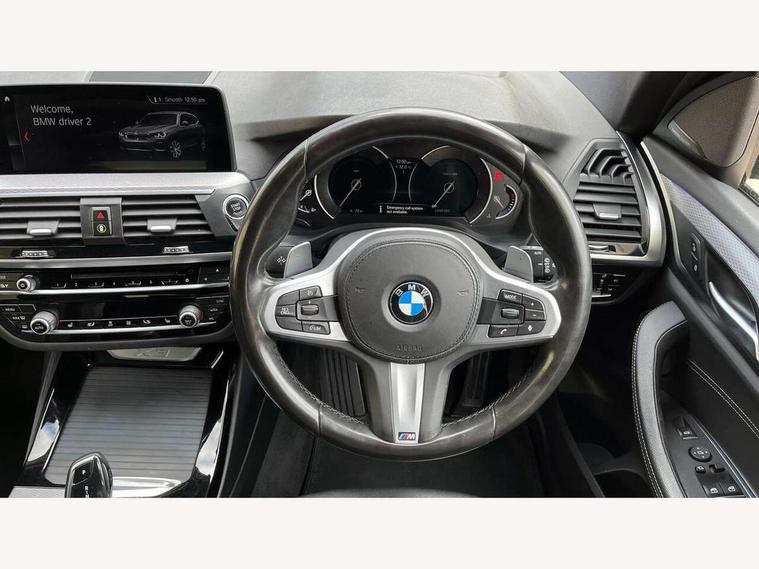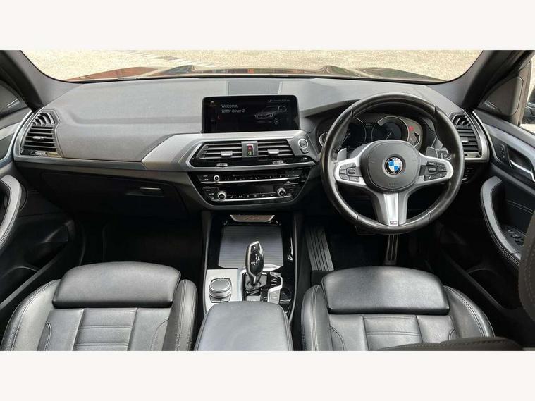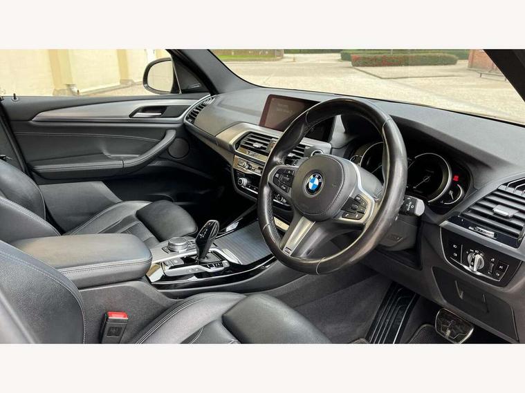 Active Guard incl speed limiting and lane departure functions with auto steering, and front collision warning with brake intervention, Attentiveness assist, Automatic tailgate operation, BMW Live Cockpit Professional sat nav system including 10.25" high resolution display and Intelligent Voice Assistant, BMW Online services, BMW Teleservices, Brake pad wear indicator in front and rear, Check Control warning system for monitoring of lights and door/luggage compartment open warning, Control display - 6.5" colour display screen, Electric Power Steering (EPS) with Servotronic, Front/rear Parking distance control, iDrive Controller with 8 favourite buttons, Lights on warning by audio warning signal when ignition is switched off, Navigation system - BMW Professional multimedia with Hard disc drive (HDD) and 10.25" touch display, Oil sensor for level and grade, warning by check control system, On board computer - average speed+fuel consumption, service interval, clock/date, odometer/trip meter, outside temperature display and ice warning, Optimum shift indicator, Personal Profile - automatic lock when driving away selectable, Real time traffic information, Semi digital instrument cluster, Stop/start system, Automatic transmission with gearshift paddles, Diesel particulate filter, Incorrect fuelling protection, Larger capacity fuel tank, Multi-link rear suspension, Performance Control, Auxiliary socket for external MP3 player, BMW professional radio/CD/MP3, DAB Digital radio, Acoustic glazing, Black finish on B pillars, Body colour door handles, Body colour electric adjust heated aspherical door mirrors, Body colour roof mouldings, Body coloured bumpers, Chrome kidney grille with high gloss black vertical slats, Direction indicator, side repeaters, integrated in exterior mirrors, Dual chrome exhaust, Dynamic brake lights, Exterior mirrors - electrically folding with anti-dazzle, Fingertip control / anti-trap function on electric window, Follow me home headlights, Front and rear bumper system with replaceable deformation elements, Front and rear electric windows, Green tinted heat insulating glass, Heated windscreen washer jets, Height adjustable headlamps, High gloss black door sill finishers, High gloss black shadow line roof rails, High gloss shadowline exterior trim in decorative moulding side frame/recess cover/guide rail/B, C pillars/mirror frame and triangle with mirror base, High level 3rd brake light incorporating LED Technology, Interior rear view electrochromatic mirror with automatic anti dazzle function, LED front fog lights, LED tail lights, Lightweight engineering, M aerodynamic bodystyling, Model designation, Rain sensor including auto headlights activation, Rear wiper, Shark fin antenna, Visible VIN plate, Welcome lighting, Windscreen wipers with adjustable interval, 12V socket in centre console and luggage area, 3 rear headrests, 3 zone automatic air conditioning, 4 lashing points to secure luggage, Ambient lighting, Anthracite headlining, Anthracite Velour floor mats, Driver/passenger sunvisors with ticket holders + illuminated vanity mirrors, Foldable boot floor with storage compartment, Four grab handles integrated in roof lining, Front and rear bottle holders integrated into door trim storage compartments, Front and rear side armrests integrated into door trim, Front centre armrest with storage compartment, Front footwell lights, Front sports seats, Front/rear courtesy lights with soft on/off dimming, Front/rear reading lights, Height adjustable front/rear head restraints, Isofix rear child seat preparation, Leather gear knob, Luggage area underfloor compartment, Luggage compartment lighting, M Sport multifunction leather steering wheel, Parcel shelf removeable and storable under boot floor, Reach and rake adjustable steering column, Rear centre armrest with 2 cupholders, Rear seat centre armrest with two cupholders, Removable / retractable luggage cover, Slope adjustable rear seats, Storage compartment in rear centre console and front/rear door trims, Through loading system with 40/20/40 split folding rear seat, Toolkit located in luggage compartment, Two front cupholders with removable oddments tray/lid, Vernasca leather upholstery, Connected pack professional - X3, ABS/EBD, ADB - Automatic Differential Brake, Automatic Stability Control (ASC), Battery safety cut-off, BMW emergency call, Brake assist, Brake assist function, Brake drying, Brake energy regeneration, Braking pre-tensioning, Child locks on rear doors, Cornering brake control (CBC), Crash Sensor - activation of central locking release, hazard warning light and interior lighting, Deactivation of fuel pump in the event of a crash, Driver and front passenger front and side airbags with passenger deactivation and ITS front and rear head airbags, DSC+, Dynamic brake control, Dynamic Traction Control - DTC, Electromechanical parking brake, Front seat belts warning, Hill descent control, Hill start assist, Seatbelt security check for front seats, Side impact protection, Three point seatbelts to all seats with front and outer rear pyrotechnic belt tensioners and seat belt force limiters, Two tone horn, Tyre pressure monitoring system, Ventilated front and rear disc brakes, Warning triangle and first aid kit, Central locking switch for all doors, fuel filler cap and luggage compartment, Electronic engine immobiliser, Locking wheel nuts, Remote control including two integrated key - one button for open/close all lockable content, windows and separate button for open luggage compartment, Remote control Thatcham category 1 alarm, Start/stop button with Comfort Go keyless engine start and auto Start/stop deactivation button, Low rolling resistance tyres,