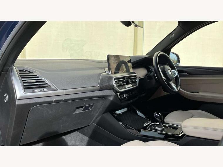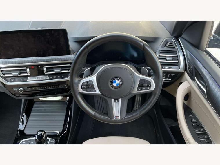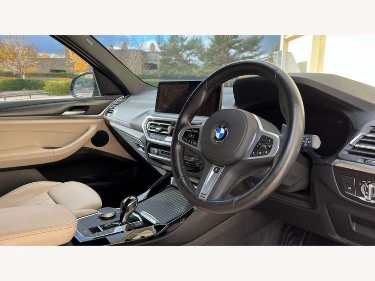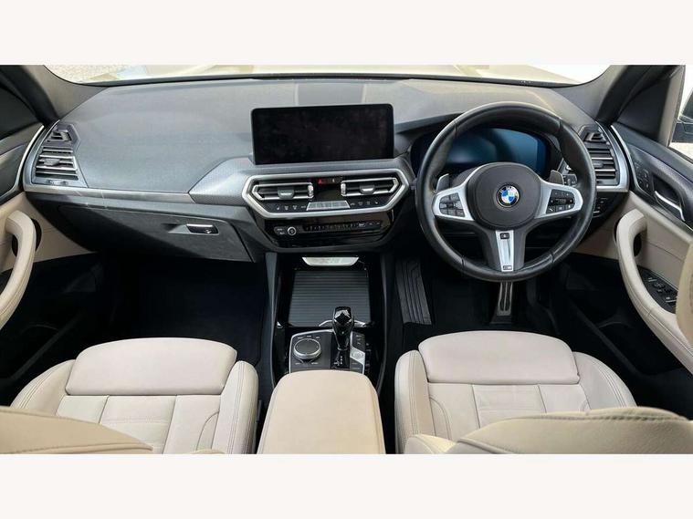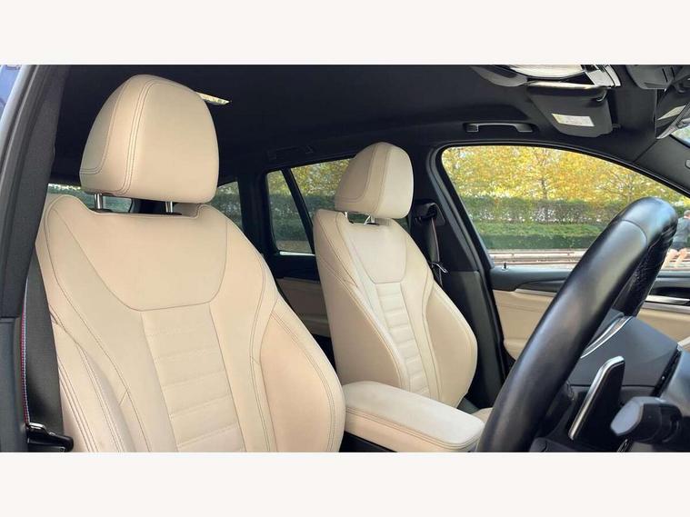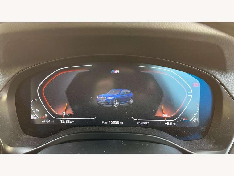 Active Guard, Attentiveness assist, BMW Live Cockpit Professional nav system including 12.3" instrument display + 12.3 high resolution control display, BMW Online services, BMW Teleservices, Brake pad wear indicator in front and rear, Check Control warning system for monitoring of lights and door/luggage compartment open warning, Condition based service - BMW service history, electronic service booklet, integrated owner's handbook, Connected drive services, Cruise control with brake function + speed limiter, Electric boot lid, Front/rear Parking distance control, iDrive Controller with 8 favourite buttons, Instrument cluster with speedometer with mph readout, tachometer, fuel gauge and oil temperature gauge, Lights on warning by audio warning signal when ignition is switched off, Oil sensor for level and grade, warning by check control system, On board computer - average speed+fuel consumption, service interval, clock/date, odometer/trip meter, outside temperature display and ice warning, Optimum shift indicator, Personal Profile - automatic lock when driving away selectable, Stop/start system, Variable sports power steering, Automatic transmission with gearshift paddles, Diesel particulate filter, Drive performance control with ECO PRO comfort + sport mode, Incorrect fuelling protection, Larger capacity fuel tank, M sport suspension, Multi-link rear suspension, Performance Control, BMW professional radio/CD/MP3, DAB tuner, Acoustic glazing, Automatic windscreen wipers and automatic headlight, Black finish on B pillars, Body colour door handles, Body colour electric adjust heated aspherical door mirrors, Body colour roof mouldings, Body coloured bumpers, Direction indicator, side repeaters, integrated in exterior mirrors, Dynamic brake lights, Exhaust tailpipes - dual, round, split left and right with chrome finisher, Fingertip control / anti-trap function on electric window, Folding wing mirrors with auto dimming, Follow me home headlights, Front and rear bumper system with replaceable deformation elements, Front and rear electric windows, Gloss chrome tailpipes finishers, Green tinted heat insulating glass, Heated windscreen washer jets, High beam assistant, High gloss black shadow line roof rails, High gloss shadowline exterior trim in decorative moulding side frame/recess cover/guide rail/B, C pillars/mirror frame and triangle with mirror base, High level 3rd brake light incorporating LED Technology, Interior rear view electrochromatic mirror with automatic anti dazzle function, LED tail lights, Lightweight engineering, M aerodynamic bodystyling, Model designation, Rear side wing doors, Rear wing door, Rear wiper, Shark fin antenna, Side exterior M designation badges, Visible VIN plate, Welcome lighting, Windscreen wipers with adjustable interval, 12V power socket in front centre console, 3 rear headrests, 3 zone automatic air conditioning, 4 lashing points to secure luggage, 40:20:40 split folding rear seat with loading system, 5 seats, Ambient lighting, Anthracite headlining, Automatic interior light when door is opened/ignition switched off or via remote key, Foldable storage floor with compartment, Four grab handles integrated in roof lining, Front and rear bottle holders integrated into door trim storage compartments, Front and rear side armrests integrated into door trim, Front centre armrest with storage compartment, Front footwell lights, Front head restraints, Front sports seats, Front/rear courtesy lights with soft on/off dimming, Front/rear reading lights, Heated front seats, Isofix rear child seat preparation, Leather gear knob, Luggage area underfloor compartment, Luggage compartment lighting, M sport leather steering wheel, Multifunction steering wheel, Parcel shelf removeable and storable under boot floor, Reach and rake adjustable steering column, Rear centre armrest with 2 cupholders, Removable / retractable luggage cover, Seat backrest width adjustment, Slope adjustable rear seats, Storage compartment in rear centre console and front/rear door trims, Sun visors with vanity mirrors and ticket pocket, Toolkit located in luggage compartment, Two front cupholders with removable oddments tray/lid, Vernasca leather upholstery, Connected pro pack - X3, Driving assistant pack - X3, ADB - Automatic Differential Brake, Anti-lock braking system (ABS) with brake assist, Automatic Stability Control (ASC), Battery safety cut-off, BMW emergency call, Brake drying, Brake energy regeneration, Braking pre-tensioning, Child locks on rear doors, Cornering brake control (CBC), Crash Sensor - activation of central locking release, hazard warning light and interior lighting, Deactivation of fuel pump in the event of a crash, Driver and front passenger front and side airbags with passenger deactivation and ITS front and rear head airbags, DSC+, Dynamic brake control, Dynamic Traction Control - DTC, Electromechanical parking brake, Hill descent control, Hill start assist, Seatbelt security check for front seats, Side impact protection, Three point seatbelts to all seats with front and outer rear pyrotechnic belt tensioners and seat belt force limiters, Two tone horn, Tyre pressure sensor, Ventilated front and rear disc brakes, Warning triangle and first aid kit, Central locking switch for all doors, fuel filler cap and luggage compartment, Electronic engine immobiliser, Locking wheel nuts, Remote control including two integrated key - one button for open/close all lockable content, windows and separate button for open luggage compartment, Remote control Thatcham category 1 alarm, Start/stop button with Comfort Go keyless engine start and auto Start/stop deactivation button, Low rolling resistance tyres,