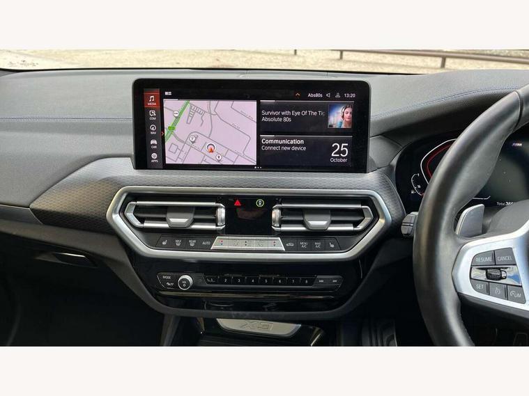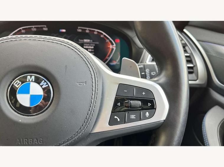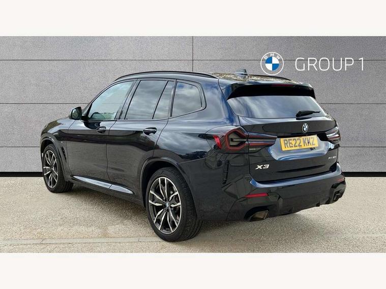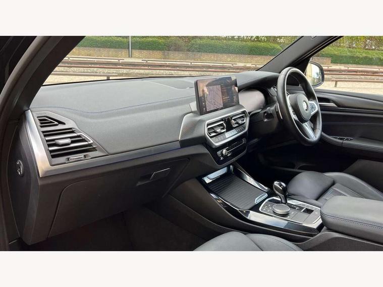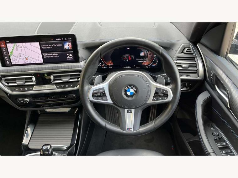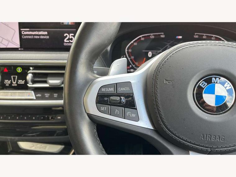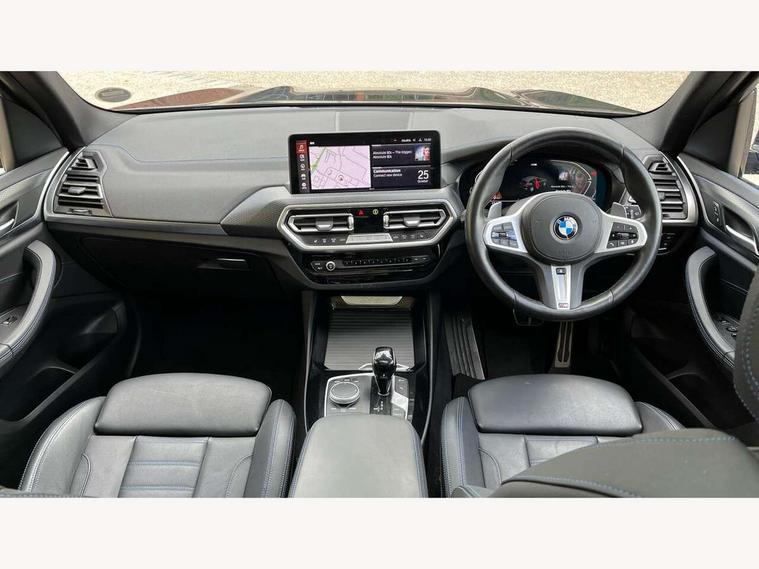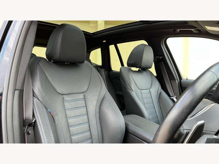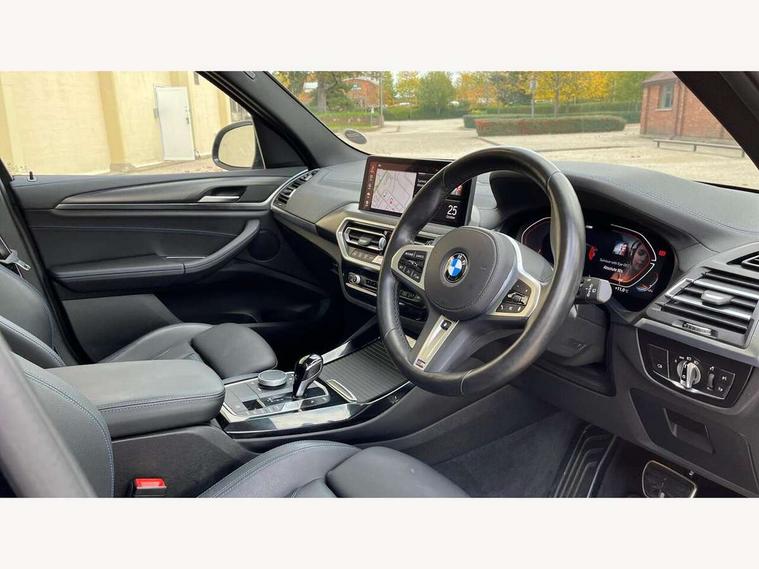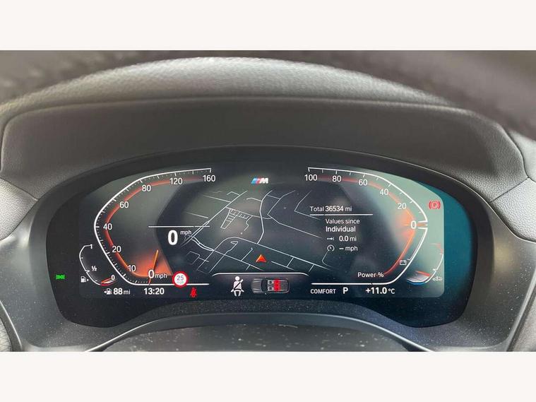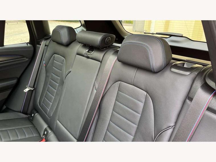 Active Guard, Attentiveness assist, BMW Live Cockpit Professional nav system including 12.3" instrument display + 12.3 high resolution control display, BMW Online services, BMW Teleservices, Brake pad wear indicator in front and rear, Check Control warning system for monitoring of lights and door/luggage compartment open warning, Condition based service - BMW service history, electronic service booklet, integrated owner's handbook, Connected drive services, Cruise control with brake function + speed limiter, Electric boot lid, Front/rear Parking distance control, iDrive Controller with 8 favourite buttons, Instrument cluster with speedometer with mph readout, tachometer, fuel gauge and oil temperature gauge, Lights on warning by audio warning signal when ignition is switched off, Oil sensor for level and grade, warning by check control system, On board computer - average speed+fuel consumption, service interval, clock/date, odometer/trip meter, outside temperature display and ice warning, Optimum shift indicator, Personal Profile - automatic lock when driving away selectable, Stop/start system, Variable sports power steering, Automatic transmission with gearshift paddles, Drive performance control with ECO PRO comfort + sport mode, Incorrect fuelling protection, M sport suspension, Multi-link rear suspension, Performance Control, BMW professional radio/CD/MP3, DAB tuner, Acoustic glazing, Automatic windscreen wipers and automatic headlight, Black finish on B pillars, Body colour door handles, Body colour electric adjust heated aspherical door mirrors, Body colour roof mouldings, Body coloured bumpers, Direction indicator, side repeaters, integrated in exterior mirrors, Dynamic brake lights, Exhaust tailpipes - dual, round, split left and right with chrome finisher, Fingertip control / anti-trap function on electric window, Folding wing mirrors with auto dimming, Follow me home headlights, Front and rear bumper system with replaceable deformation elements, Front and rear electric windows, Gloss chrome tailpipes finishers, Green tinted heat insulating glass, Heated windscreen washer jets, High beam assistant, High gloss black shadow line roof rails, High gloss shadowline exterior trim in decorative moulding side frame/recess cover/guide rail/B, C pillars/mirror frame and triangle with mirror base, High level 3rd brake light incorporating LED Technology, Interior rear view electrochromatic mirror with automatic anti dazzle function, LED tail lights, Lightweight engineering, M aerodynamic bodystyling, Model designation, Rear side wing doors, Rear wing door, Rear wiper, Shark fin antenna, Side exterior M designation badges, Visible VIN plate, Welcome lighting, Windscreen wipers with adjustable interval, 12V power socket in front centre console, 3 rear headrests, 3 zone automatic air conditioning, 4 lashing points to secure luggage, 40:20:40 split folding rear seat with loading system, 5 seats, Ambient lighting, Anthracite headlining, Automatic interior light when door is opened/ignition switched off or via remote key, Foldable storage floor with compartment, Four grab handles integrated in roof lining, Front and rear bottle holders integrated into door trim storage compartments, Front and rear side armrests integrated into door trim, Front centre armrest with storage compartment, Front footwell lights, Front head restraints, Front sports seats, Front/rear courtesy lights with soft on/off dimming, Front/rear reading lights, Heated front seats, Isofix rear child seat preparation, Leather gear knob, Luggage area underfloor compartment, Luggage compartment lighting, M sport leather steering wheel, Multifunction steering wheel, Parcel shelf removeable and storable under boot floor, Reach and rake adjustable steering column, Rear centre armrest with 2 cupholders, Removable / retractable luggage cover, Seat backrest width adjustment, Slope adjustable rear seats, Storage compartment in rear centre console and front/rear door trims, Sun visors with vanity mirrors and ticket pocket, Toolkit located in luggage compartment, Two front cupholders with removable oddments tray/lid, Vernasca leather upholstery, Connected pro pack - X3, Driving assistant pack - X3, ADB - Automatic Differential Brake, Anti-lock braking system (ABS) with brake assist, Automatic Stability Control (ASC), Battery safety cut-off, BMW emergency call, Brake drying, Brake energy regeneration, Braking pre-tensioning, Child locks on rear doors, Cornering brake control (CBC), Crash Sensor - activation of central locking release, hazard warning light and interior lighting, Deactivation of fuel pump in the event of a crash, Driver and front passenger front and side airbags with passenger deactivation and ITS front and rear head airbags, DSC+, Dynamic brake control, Dynamic Traction Control - DTC, Electromechanical parking brake, Hill descent control, Hill start assist, Seatbelt security check for front seats, Side impact protection, Three point seatbelts to all seats with front and outer rear pyrotechnic belt tensioners and seat belt force limiters, Two tone horn, Tyre pressure sensor, Ventilated front and rear disc brakes, Warning triangle and first aid kit, Central locking switch for all doors, fuel filler cap and luggage compartment, Electronic engine immobiliser, Locking wheel nuts, Remote control including two integrated key - one button for open/close all lockable content, windows and separate button for open luggage compartment, Remote control Thatcham category 1 alarm, Start/stop button with Comfort Go keyless engine start and auto Start/stop deactivation button, Low rolling resistance tyres,