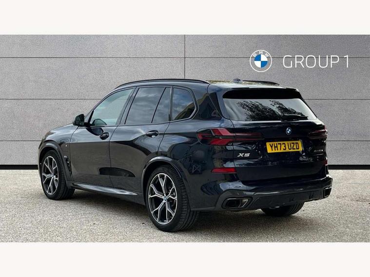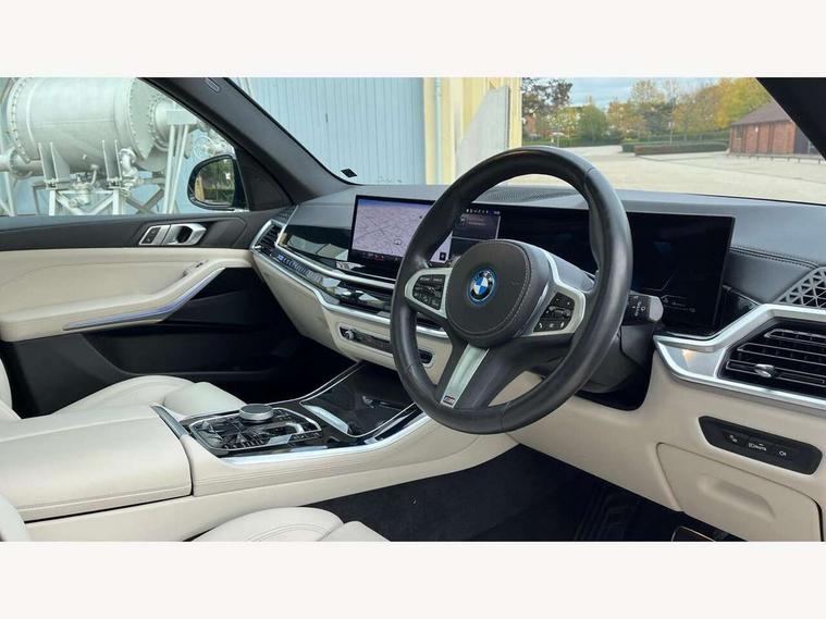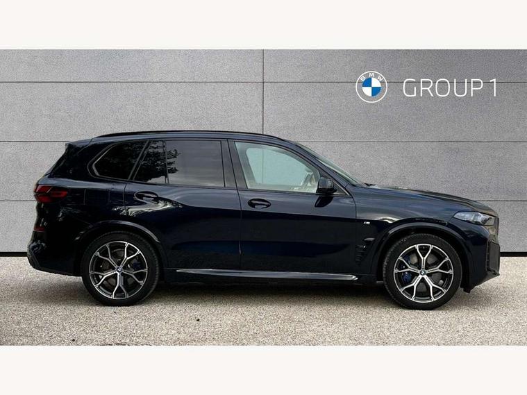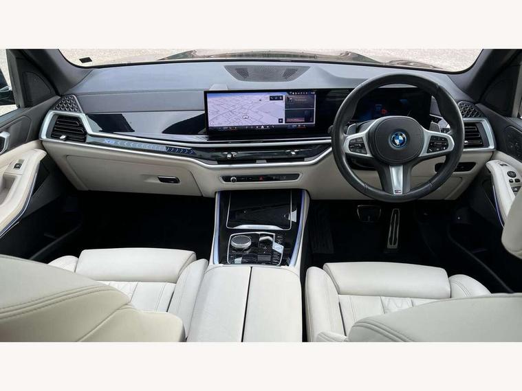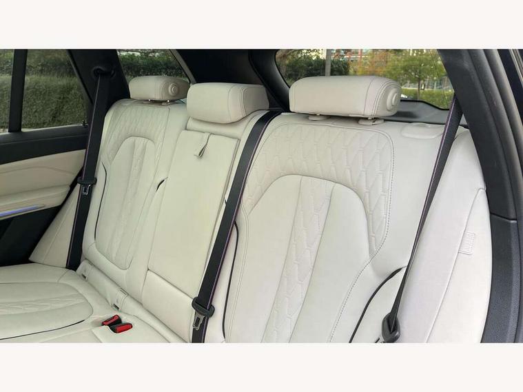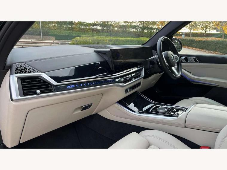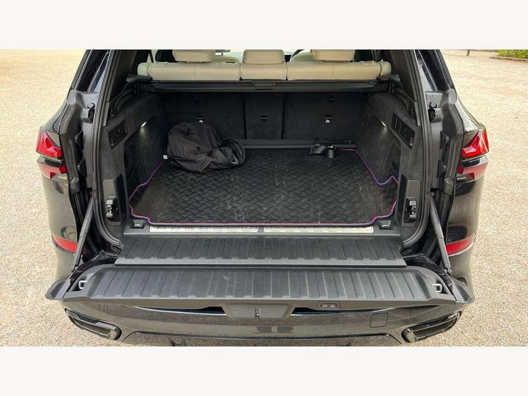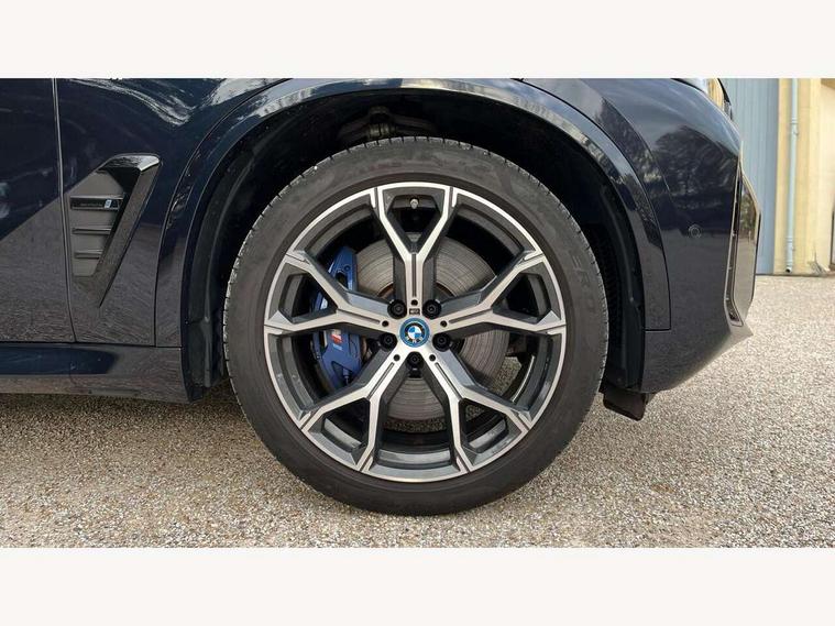 Attentiveness assist, Automatic tailgate operation, BMW ConnectedDrive online services, BMW live cockpit + with curved 12.3 instrument cluster/14.9 central display, nav/Tuner with diversity reception, RDS/4GLTE/remote software upgrade, BMW Teleservices, Condition based service, Cruise control with brake assist, eCall emergency call system, Enhanced bluetooth with wireless charging, Integrated owner's handbook, PAS, Speed limiter, Wi-Fi hotspot, Adaptive 2-axle Front and rear air suspension, Drive performance control with ECO PRO comfort + sport mode, Eight speed steptronic sport automatic transmission and gearshift paddles on the steering wheel, Flexible charger (Mode 2), Hi-Fi loudspeaker system, Adaptive LED Headlights, Front and rear electric windows, High beam assistant, High gloss black shadow line roof rails, LED daytime running lights, Rear side wing doors, Third brake light in rear spoiler, Variable intermittent rear wash/wipe, 12V - Power sockets with 2x centre console and 1x luggage compartment, 3 seat bench in 2nd row, Foldable rear centre armrest with 2 cupholders and storage compartment, Front and rear side armrest integrated into door trim, Headrests for all seats, Luggage compartment separating net, Single front passenger seat, Three spoke sport M leather steering wheel, Velour floormats, Ambient light interior pack - X5, Driving assistant pack with radar based driver assistance system - X5, Expanded exterior mirror pack - X5/X5 M, M aerodynamics pack - X5, 3 rear seatbelts, Acoustic protection for pedestrians, Active protection, Airbags - driver/front passenger, rear and side, first and second row seats head airbags, front passenger seat airbag deactivation + knee airbag, Anti-lock braking system (ABS), Automatic Stability Control (ASC), Brake energy regeneration, Cornering brake control (CBC), Crash sensor activating central locking release, hazard warning lights, fuel cut off, interior lighting + activation of safety battery terminal clamp, DSC - Dynamic Stability Control, Dynamic Traction Control - DTC, Electromechanical parking brake with automatic drive away release and auto hold function, Electronic brake force distribution, Hill start assistant, M Sport blue painted brake calipers with 'M' designation, Mechanical child proof lock on rear doors, Tyre pressure monitoring system, Tyre pressure sensors, Ventilated front and rear disc brakes, Warning triangle and first aid kit, Closing system with central locking, Comfort access system, Locking wheel bolts, Sensatec instrument panel,