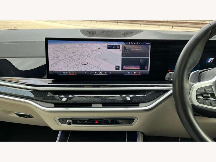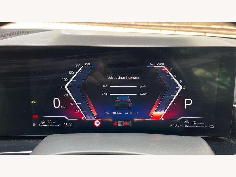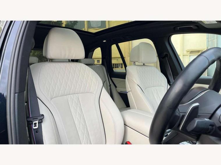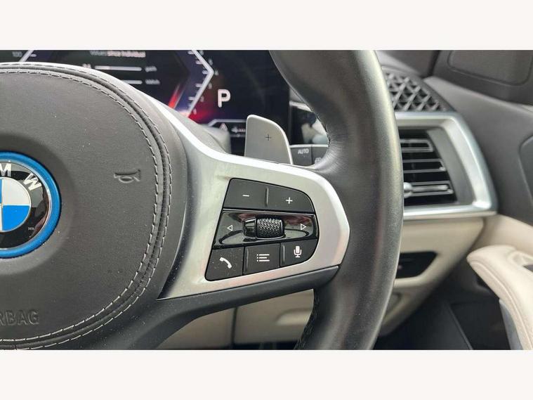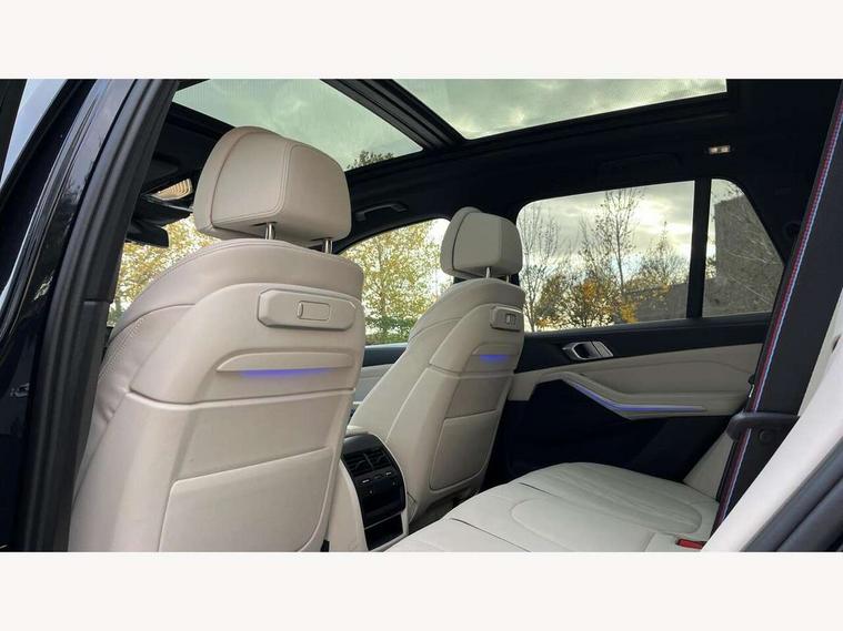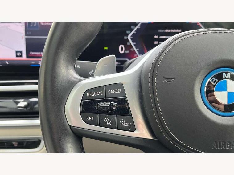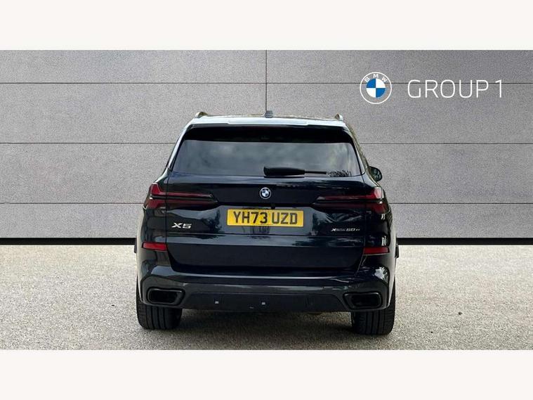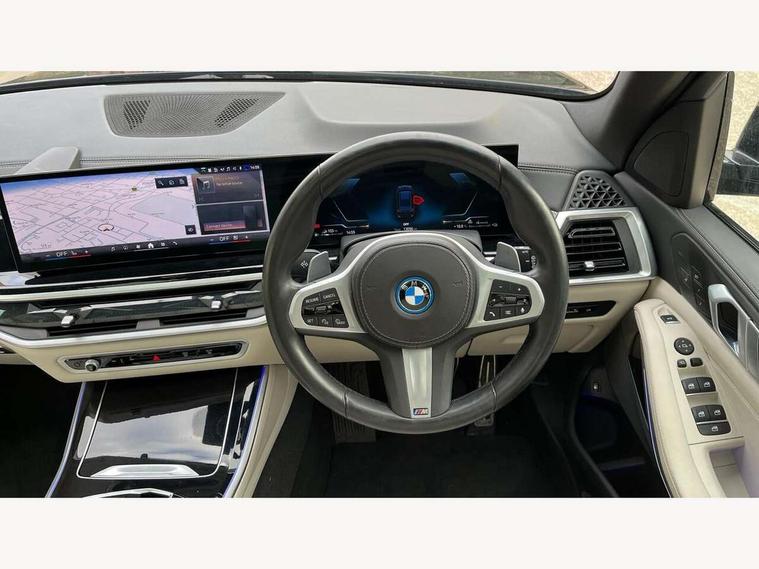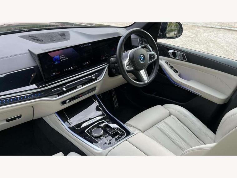 Attentiveness assist, Automatic tailgate operation, BMW ConnectedDrive online services, BMW live cockpit + with curved 12.3 instrument cluster/14.9 central display, nav/Tuner with diversity reception, RDS/4GLTE/remote software upgrade, BMW Teleservices, Condition based service, Cruise control with brake assist, eCall emergency call system, Enhanced bluetooth with wireless charging, Integrated owner's handbook, PAS, Speed limiter, Wi-Fi hotspot, Adaptive 2-axle Front and rear air suspension, Drive performance control with ECO PRO comfort + sport mode, Eight speed steptronic sport automatic transmission and gearshift paddles on the steering wheel, Flexible charger (Mode 2), Hi-Fi loudspeaker system, Adaptive LED Headlights, Front and rear electric windows, High beam assistant, High gloss black shadow line roof rails, LED daytime running lights, Rear side wing doors, Third brake light in rear spoiler, Variable intermittent rear wash/wipe, 12V - Power sockets with 2x centre console and 1x luggage compartment, 3 seat bench in 2nd row, Foldable rear centre armrest with 2 cupholders and storage compartment, Front and rear side armrest integrated into door trim, Headrests for all seats, Luggage compartment separating net, Single front passenger seat, Three spoke sport M leather steering wheel, Velour floormats, Ambient light interior pack - X5, Driving assistant pack with radar based driver assistance system - X5, Expanded exterior mirror pack - X5/X5 M, M aerodynamics pack - X5, 3 rear seatbelts, Acoustic protection for pedestrians, Active protection, Airbags - driver/front passenger, rear and side, first and second row seats head airbags, front passenger seat airbag deactivation + knee airbag, Anti-lock braking system (ABS), Automatic Stability Control (ASC), Brake energy regeneration, Cornering brake control (CBC), Crash sensor activating central locking release, hazard warning lights, fuel cut off, interior lighting + activation of safety battery terminal clamp, DSC - Dynamic Stability Control, Dynamic Traction Control - DTC, Electromechanical parking brake with automatic drive away release and auto hold function, Electronic brake force distribution, Hill start assistant, M Sport blue painted brake calipers with 'M' designation, Mechanical child proof lock on rear doors, Tyre pressure monitoring system, Tyre pressure sensors, Ventilated front and rear disc brakes, Warning triangle and first aid kit, Closing system with central locking, Comfort access system, Locking wheel bolts, Sensatec instrument panel,