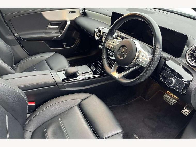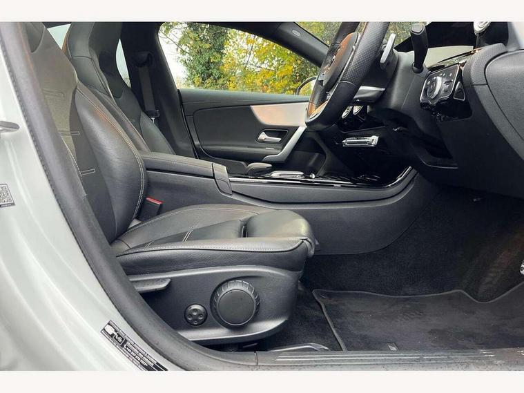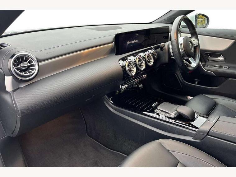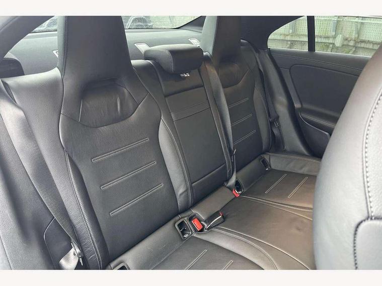 10.25 inch Instrument display with digital cockpit, 10.25 inch touchscreen central media display, Attention assist - Monitors steering behaviour and long journey fatigue, Bluetooth connection, Car wash mode, DYNAMIC SELECT with a choice of driving modes (ECO, Comfort, Sport and Individual), ECO start/stop function, Fluid level warning indicator for fuel, oil, coolant and washer fluid, Hard-disk navigation, Hey Mercedes Voice activation, Lamp failure indicator, Mercedes me connect including emergency call system, accident recovery, breakdown and maintenance management, Mercedes me remote services, Outside temperature gauge, Owners manual and service booklet in English, Pre-installation of private car share, Preinstallation for Mercedes Benz link, Radio aerial integrated into front and rear windshields, Service indicator (ASSYST), Smartphone integration with Apple CarPlay and Android auto, Traffic sign assist, Trip computer in multifunction display with current consumption indicator, 7G-DCT 7 speed automatic transmission, Lowered comfort suspension, Rear axle multi-link, DAB digital radio tuner, MBUX multimedia system with DAB digital radio and touchpad including satellite navigation, Mid-range sound system, USB (type C) ports (2) in stowage compartment and 1 in front of centre console, Adaptive brake lights, AMG body styling with AMG front apron and rear apron and visible exhaust tailpipe in chrome trim elements, AMG bodystyling side skirts, Auto headlights, Body colour bumpers, Body colour door handles, Chrome beltline strips, Chrome weather strip, Diamond radiator grille pins in chrome with silver painted louvres and chrome insert, Electric panoramic sliding sunroof, Electric windows, Electrically adjustable and heated door mirrors with integrated LED indicators, Exhaust system with 2 Visible tailpipe trim elements and rear apron with trim in chrome, Headlamp assist automatic headlamp activation, Heated glass rear windscreen + timer control, High level LED third brake light, Integrated LED daytime running lights, Interior mirror with black reading lamps and frameless, LED tail lamp, Multibeam LED headlamps with adaptive highbeam assist plus, Privacy glass with dark tinting on rear side windows and rear window, Rain sensing windscreen wipers with two sensitivity settings, Rear boot, Rear fog lamp, Rear side wing doors, Window line trim strip in chrome, 3 seat bench in 2nd row, 3 spoke flattened bottom nappa leather multifunction steering wheel with perforated leather in grip area, 40:20:40 split folding rear seat backrests, Air conditioning - Two zone thermotronic luxury automatic climate control with display, Air vents with surround in silver chrome, Automatic child seat recognition sensor, Black roof lining, Brushed stainless steel sports pedals with rubber studs, Floor mats with stitched AMG lettering, Front centre armrest with stowage, Galvanished gear shift paddles on steering wheel, Heated front seats, Illuminated front door sills with changeable cover, Illuminated glove compartment stowage, Interior lighting - 64 colour Ambient lighting, Luggage net on driver/front passenger seat backrest, Manually height and reach adjustable steering column, Rear armrest with two integral cup holders for drinks, Rear head restraints, Single front passenger seat, Sport seats with fixed head restraints, Stowage compartment in centre console with retractable cover, Sunvisors with illuminated vanity mirrors, Touchpad on center console, Twin front cupholders, Two outer rear seat isofix and top tether child seat fixing points, Keyless go pack - CLA, Light and sight pack - CLA, Mirror pack - CLA, Parking package - CLA, Seat comfort pack - CLA, Active bonnet pedestrain safety measure which detects an impact and raises bonnet by 65mm, Adaptive brake assist with hold function and hill start assist, Anti-lock braking system (ABS), Black seat belts, Bonnet with power domes, Brake pad wear warning indicator, Childproof locks manually operated for rear doors and electrically operated for rear power windows, Crash responsive emergency lighting, Driver and front passenger head and sidebags, Driver and front passenger windowbags, Drivers knee airbag, Dual stage driver and front passenger airbags, Electric parking brake, Electronic stability programme with acceleration skid control, ESP curve dynamic assist, Front and rear seatbelt reminder, Front passenger seat occupancy sensor, Three point rear seat belts, Tyre pressure monitoring system, Warning triangle and first aid kit, Remote central locking and crash sensor with emergency opening function, Urban guard vehicle protection system with immobiliser and interior protection, Light aluminium with longitudinal grain interior trim, 18" 5 twin spoke design alloy wheels painted in titanium grey with high sheen finish, Summer tyres, Tirefit tyre sealant kit,