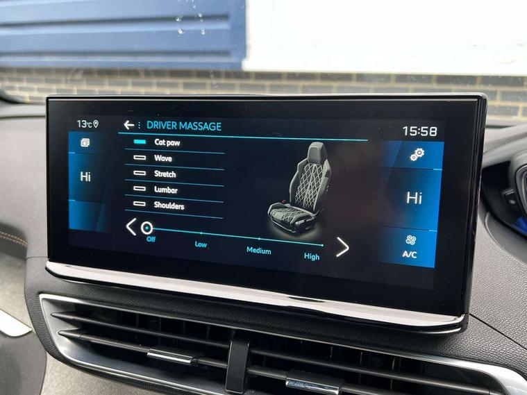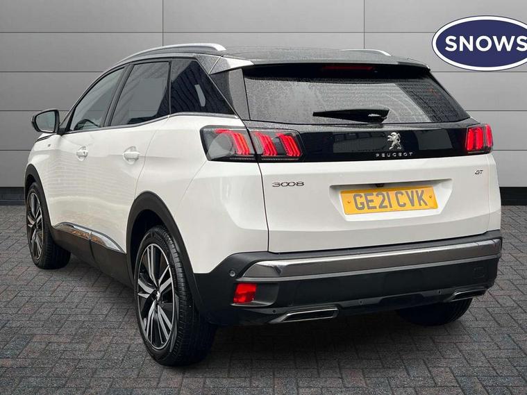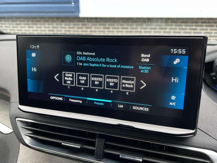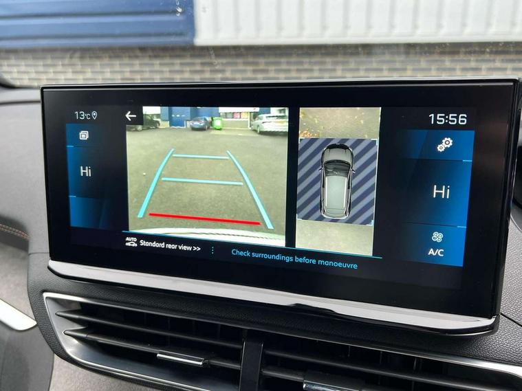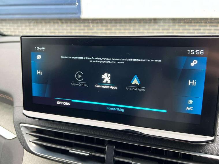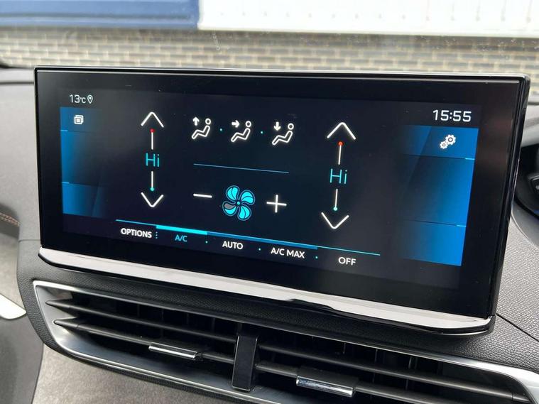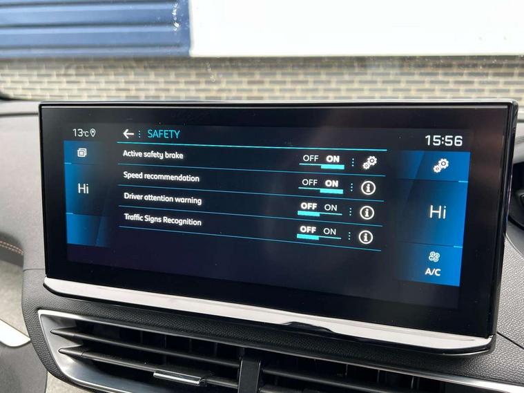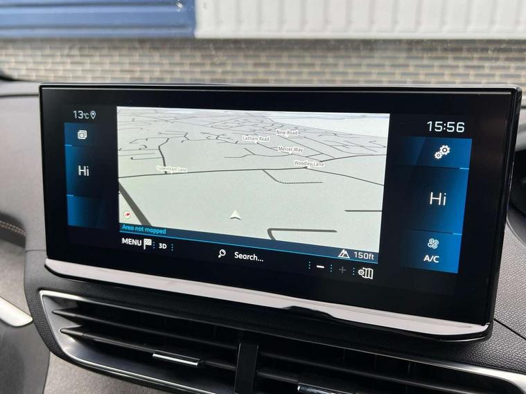 3D connected navigation with 10" HD touchscreen + voice recognition system, Bluetooth telephone facility, Driver attention alert system, Extended traffic sign recognition, Exterior temperature indicator with ice warning, Front parking sensors, Hands free electric tailgate, Lane departure warning system, Mirror screen with mirror link, apple carplay and android auto, Multi function trip computer, Passive blind spot monitoring without Steering correction, PEUGEOT i-Cockpit with 8.0" capacitive touchscreen in centre console, Peugeot i-cockpit with compact multi-function steering wheel, PEUGEOT i-Cockpit with configurable 12.3" Head-up digital instrument panel, PEUGEOT SOS and assistance, Rear parking aid, Rear passenger USB charging sockets (x2) (type A), Speed limit recognition and recommendation, Visio park assist 360 with colour camera system + automatic parking assist, Dynamic stability control and electronic anti-skid system, DAB Digital radio, Focal premium HiFi sound system, USB socket, Automatic hazard light activation upon heavy brake application, Automatic triggered rear windscreen wiper in reverse gear, Body colour door handles, Body colour rear spoiler with stainless steel edging trim, Body protectors (bottom of front and rear bumpers + wheel arches + protection at bottom of doors) in black, Chrome front wing trim, Dark tinted rear side windows + tailgate window, Electric operated/heated door mirrors, Fog Mode, Frameless electrochrome rear view mirror, Front windscreen wiper with magic wash cleaning system, Full LED headlights with LED fog lights with static cornering function, Gloss black B and C pillar and aerodynamic deflector trim, Gloss black front bumper air scoops, Gloss black rear cluster connecting strip, GT emblem in satin copper (front wings and tailgate), Headlights left on audible warning, Heated rear windscreen with integrated antenna, LED daytime running lights, LED rear number plate lighting, LED side indicator lights integrated into door mirrors, Nera black door mirrors, One touch electric front/rear windows with pinch protection, Power folding door mirrors with auto dipping function in reverse gear, Rear LED Peugeot signature 'Claw Effect' lights, Stainless steel roof arches, Twin exhaust tailpipe, 1/3 to 2/3 split folding rear seats, 12V Sockets in dashboard, rear cabin and load area, 2 cupholders in front centre console, 2x Rear coat hooks, 3x Isofix child seat fittings in the front passenger and outer rear seats, 4 Grab handles retractable and damped, Aikinite stitching in armrest, gear lever and dashboard facia, Aluminium pedals, Blue ambient lighting for connecting zone, Blue ambient lighting to front door panels, central storage and cupholders, Centre front armrest with butterfly wing opening and illuminated storage compartment, Dual zone automatic climate control, Electric power steering with reach and rake adjustable steering column, Flocked front door pocket interior with blue ambient lighting, Flocked glovebox interior, Focal tweeter speaker grilles in Belem bronze metal effect finish, Foldable front passenger seat, Footwell illumination, Front interior light with 2 reading spotlights and rear interior light with timer, Front seat back map pockets, Gear shift indicator, Illuminated glovebox, Individual left and right controls in boot for seat folding, LED interior lighting in storage spaces and load area, Mistral floor mats with Aikinite contrast stitching, Mistral full grain perforated leather steering wheel with aikinite stitch detail and satin chrome 'GT' emblem, Rear bench seat with central armrest and ski hatch, Rear centre console ventilation system, Roof lining - Mistral black, Satin chrome dashboard trim, Satin chrome digital instrument panel and touchscreen trim, Satin chrome front door panel recess trim, Satin chrome interior door handles, Satin chrome scorpion's tail and toggle switch trim, Seatbelt not fastened audible and visual alert for front seats, Seatbelt unfastened on the move audible and visual alert for front and rear seats, Sunvisors with illuminated vanity mirrors, Two position boot floor, Drive assist plus pack - 3008, Driver and passenger seat pack - 3008, Driver sport pack - 3008 Auto, Visibility pack - 3008, 3x Rear three-point retractable seatbelts with force limiters in the outer rear seats, ABS (Anti-lock Braking System) with EBD (Electronic Brakeforce Distribution) and EBA (Emergency Braking Assistance), Adaptive driver and front passenger airbags with passenger airbag deactivation function, Driver and front passenger side airbags, Electric child locking functionality on rear windows and doors, Electric parking brake, Front and rear curtain airbags, Front optimised safety headrests and 3 x rear retractable headrests with height adjustable, Front three point retractable seatbelts with pre tensioners and force limiters, Front ventilated disc brakes and rear disc brakes, Hill start assist, Two tone horn, Automatic door locking when moving off, Electronic immobiliser, key operated exterior door lock from the left hand door, Perimetric and volumetric alarm with lift and tilt sensor, Peugeot Open and Go System, Remote control central locking with two plip keys, Grey greval alcantara dashboard and door panel inserts, Puncture repair kit including compressor, sealant cartridge and towing eye,