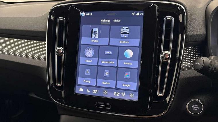 12.3" Progressive Driver Display, 9" centre console portrait touch screen, Adjustable steering wheel force, Android auto (Wired), Apple carplay (wired), Bluetooth handsfree system, Driver alert control, Driver assistance (pilot assist and adaptive cruise control), Driver awareness - Blind spot information system with steer assist, cross traffic alert with autobrake and rear collision warning and mitigation, E-call, Front park assist, Google automotive services - Enabled entertainment apps, navigation with google maps, voice recognition with google assistant, Hands free power tailgate, Intelligent speed assistance, Lane keeping aid, Oncoming Lane Mitigation, Rear park assist, Speed sensitive steering, Volvo cars services with app - Driving journal, emergency and breakdown call, engine remote start, remote door locking/unlocking and vehicle dashboard, Wireless/Inductive Mobile Phone Charging, Automatic transmission with start/stop and manual change functions, Dynamic chassis, DAB Digital radio, Steering wheel mounted remote controls, Adaptive brake lights with high level LED brake lights, Auto dimming feature for exterior door mirrors, Auto dimming interior mirror, Automatic headlamp levelling, Automatic LED Headlights + Active high beam incorporating daytime running lights, Front aluminium tread plates, Front and rear electric windows, High gloss black front and rear skid plate, High gloss black front bumper deco, High gloss black mesh front grille with high gloss black surround, High gloss black window trim, Home safe and approach lighting, Integrated roof rails in high gloss black, LED front fog lights, Puddle lights, Rain sensor with automatic windscreen wiper activation, Rear side wing doors, Rear wiper, Roof antenna, Roof spoiler, Visible VIN plate, 12V socket in front tunnel console and luggage compartment, 2-Zone electronic climate control with CleanZone air quality system and pollen filter, 3 seat bench in 2nd row, 3 Spoke tailored steering wheel with chrome trim, 60/40 versatile split folding rear seat, Centre console cupholders and storage, Charcoal headlining, Connect textile/microtech upholstery, Flexible load floor and grocery bag holder, Floor mats, Front cabin courtesy lights, Front door pocket, front cupholder, ambient front door, rear reading, rear courtesy, instrument panel and tailgate lighting, Front footwell illumination, Front headrests, Front reading lights, Front seat cushion extensions, Front side step illumination (under door), Glovebox bag hook, Heated front seats, Height adjustable passenger seat, Height/reach adjustable steering column, High gloss centre tunnel deco, Illuminated glovebox, Illuminated luggage compartment, Illuminated vanity mirrors + ticket holder, Integrated waste bin, Isofix attachments on outer rear seats, Load cover, Load protection net, Multi directional lumbar support for driver and passenger seat, Power driver seat with memory + exterior mirrors memory, Rear armrest with cupholders, Rear headrests, Single front passenger seat, Underfloor cargo storage, Climate pack without heated front seats - XC40, 3x3 point rear seatbelts, City safety with steering support with Pedestrian + cyclist + front collision warning with full auto brake and rear auto brake, Driver and passenger airbags, Drivers knee airbag, Electronic parking brake with auto hold, First aid kit, Front and outer rear seatbelt reminder and pretensioners, Front seats SIPS airbags, Hill descent control, Hill start assist, Inflatable curtain, Passenger airbag cut-off device, Power child locks on rear doors, Road sign information display, Run off Road Protection, SIPS (Side Impact Protection System), Slippery road and hazard light alert, Stability and Traction Control with Spin control, Engine Drag Control and Corner Traction Control, Tyre pressure monitoring system, Vehicle deceleration control with Anti-lock Brake System, Electronic Brake Distribution and Emergency Brake Assist, Warning triangle, WHIPS whiplash protection system - front, 2 x Key integrated remote control central locking including with deadlocking system and auto open/close windows, Anti-theft alarm including immobiliser/volume sensor + level sensor, Keyless drive includes keyless entry and keyless start, Locking wheel nuts,