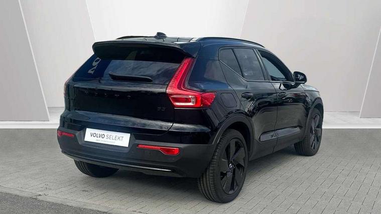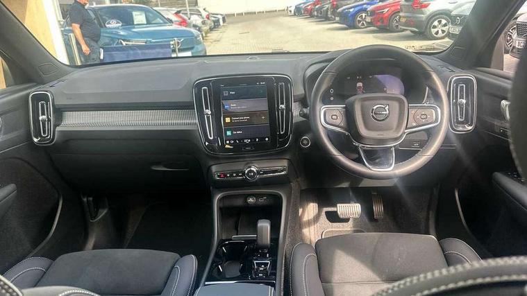 12.3" Progressive Driver Display, 360 degree surround view parking camera with side proximity sensors, 9" centre console portrait touch screen, Adjustable steering wheel force, Android auto (Wired), Apple carplay (wired), Bluetooth handsfree system, Driver alert control, Driver assistance (pilot assist and adaptive cruise control), Driver awareness - Blind spot information system with steer assist, cross traffic alert with autobrake and rear collision warning and mitigation, E-call, Front park assist, Google automotive services - Enabled entertainment apps, navigation with google maps, voice recognition with google assistant, Hands free power tailgate, Intelligent speed assistance, Lane keeping aid, Oncoming Lane Mitigation, Rear park assist, Speed sensitive steering, Volvo cars services with app - Driving journal, emergency and breakdown call, engine remote start, remote door locking/unlocking and vehicle dashboard, Wireless/Inductive Mobile Phone Charging, Automatic transmission with start/stop and manual change functions, Dynamic chassis, DAB Digital radio, Premium Sound by Harman Kardon, Dolby Pro Logic II Surround Sound, Dirac Unison, 12 speakers/600W and subwoofer, Steering wheel mounted remote controls, Active bending pixel LED headlights with adaptive shadow technology, Active high beam incorporating daytime running lights, Adaptive brake lights with high level LED brake lights, Auto dimming feature for exterior door mirrors, Auto dimming interior mirror, Automatic headlamp levelling, Colour coordinated auto folding and heated power door mirrors, Dark tinted windows - rear side windows and rear screen, Front aluminium tread plates, Front and rear electric windows, Headlight cleaning system, High gloss black front and rear skid plate, High gloss black front bumper deco, High gloss black front grille strikethrough and ironmark, High gloss black rear model, engine and volvo logo badges, High gloss black window trim, Home safe and approach lighting, Integrated roof rails in high gloss black, LED front fog lights with cornering function, Power glass tilt and slide panoramic sunroof with sun curtain, Puddle lights, Rain sensor with automatic windscreen wiper activation, Rear side wing doors, Rear wiper, Roof antenna, Roof spoiler, Visible VIN plate, 12V socket in front tunnel console and luggage compartment, 2-Zone electronic climate control with CleanZone air quality system and pollen filter, 3 seat bench in 2nd row, 3 Spoke tailored steering wheel with chrome trim, 60/40 versatile split folding rear seat, Centre console cupholders and storage, Charcoal headlining, Connect textile/microtech upholstery, Flexible load floor and grocery bag holder, Floor mats, Front cabin courtesy lights, Front door pocket, front cupholder, ambient front door, rear reading, rear courtesy, instrument panel and tailgate lighting, Front footwell illumination, Front headrests, Front reading lights, Front seat cushion extensions, Front side step illumination (under door), Glovebox bag hook, Heated front seats, Height/reach adjustable steering column, High gloss centre tunnel deco, Illuminated glovebox, Illuminated luggage compartment, Illuminated vanity mirrors + ticket holder, Integrated waste bin, Isofix attachments on outer rear seats, Load cover, Load protection net, Multi directional lumbar support for driver and passenger seat, Power driver seat with memory + exterior mirrors memory, Power folding rear headrests, Power passenger seat, Rear armrest with cupholders, Single front passenger seat, Underfloor cargo storage, Climate pack without heated front seats - XC40, 3x3 point rear seatbelts, City safety with steering support with Pedestrian + cyclist + front collision warning with full auto brake and rear auto brake, Driver and passenger airbags, Drivers knee airbag, Electronic parking brake with auto hold, First aid kit, Front and outer rear seatbelt reminder and pretensioners, Front seats SIPS airbags, Hill descent control, Hill start assist, Inflatable curtain, Passenger airbag cut-off device, Power child locks on rear doors, Road sign information display, Run off Road Protection, SIPS (Side Impact Protection System), Slippery road and hazard light alert, Stability and Traction Control with Spin control, Engine Drag Control and Corner Traction Control, Tyre pressure monitoring system, Vehicle deceleration control with Anti-lock Brake System, Electronic Brake Distribution and Emergency Brake Assist, Warning triangle, WHIPS whiplash protection system - front, 2 x Key integrated remote control central locking including with deadlocking system and auto open/close windows and sunroof, Anti-theft alarm including immobiliser/volume sensor + level sensor, Keyless drive includes keyless entry and keyless start, Locking wheel nuts,