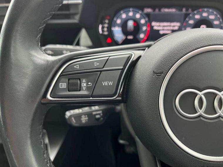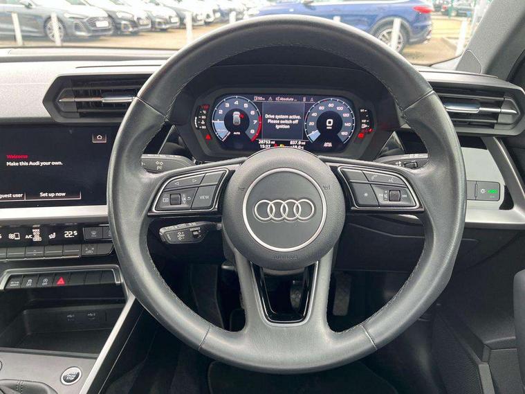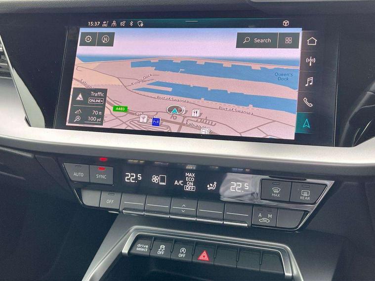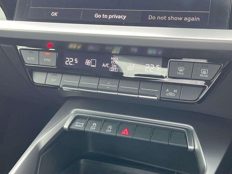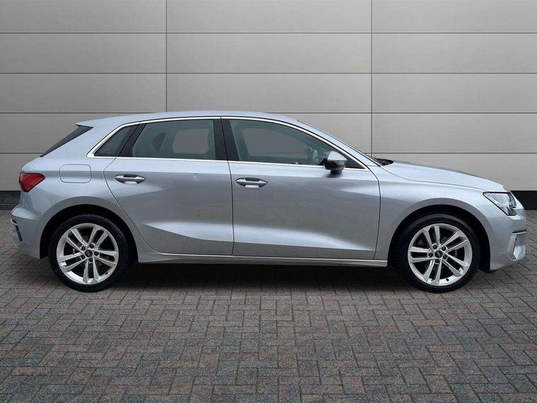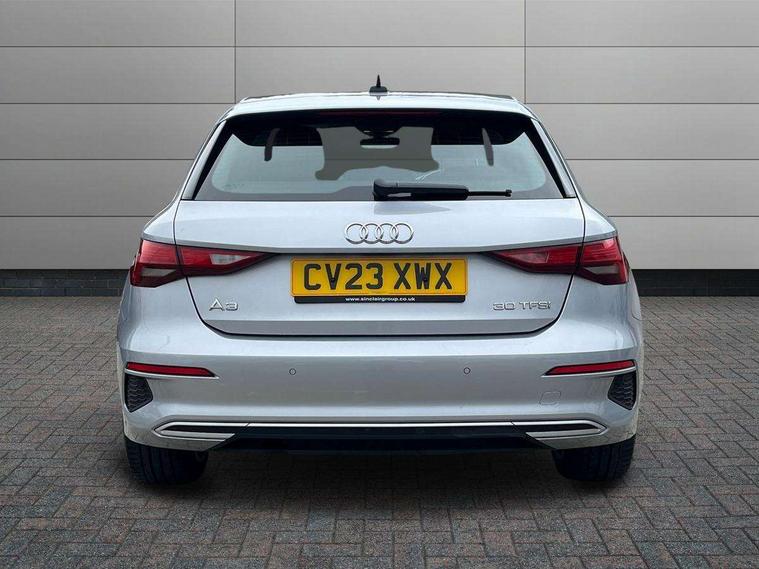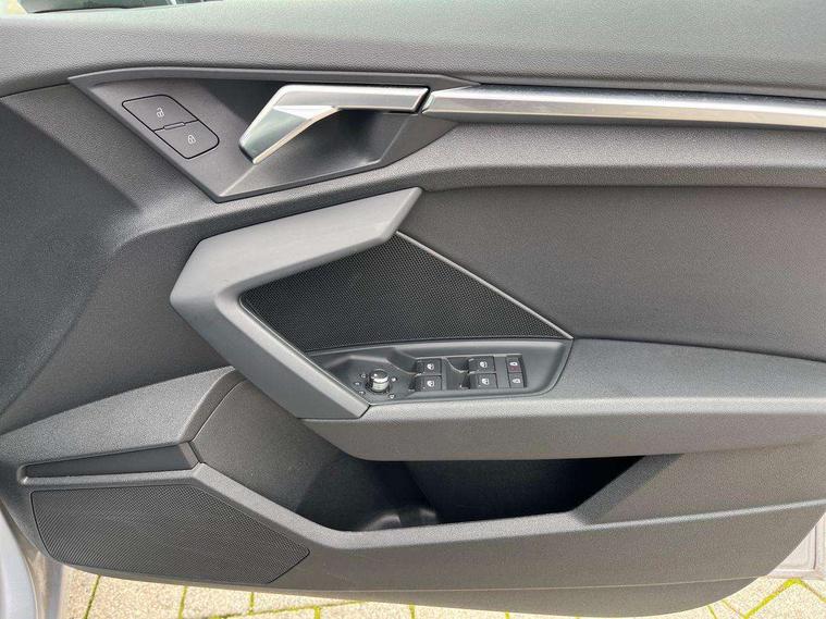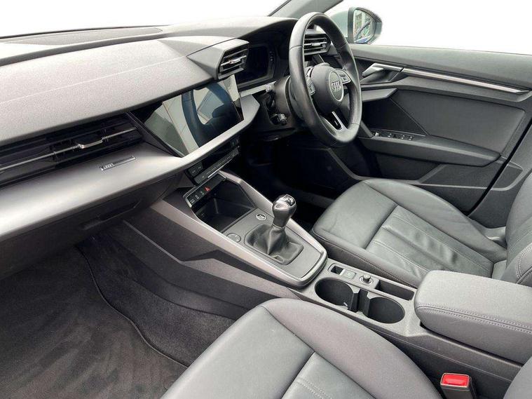 Audi drive select (Auto, Comfort, Dynamic and Individual), Audi smartphone interface, Audi Virtual Cockpit - 10.25" digital and colour instrument cluster, Automatic start/stop system with recuperation, Bluetooth interface, Camera based traffic sign recognition, Collision avoidance assistant, Cruise control, e-Call (emergency call), Electromechanical power speed sensitive steering, Lane departure warning system, MMI Navigation Plus with high resolution 10.1" colour touch screen display, Rear parking sensors, Service indicator, Trip computer, Voice control system with natural language interaction, Standard suspension, 2xUSB-C connection with data and charging functions, 6 passive loudspeakers, DAB Digital radio, 3rd brake light, Acoustic glass windscreen, Aluminium window trim, Auto dimming frameless rear view mirror, Body colour exterior mirrors, Body colour roof spoiler, Electrically adjustable/heated/folding/auto dimming door mirrors with integrated LED indications + kerb view function for passenger side, Front electric windows, LED daytime running lights, LED headlights and halogen rear lights, Light and rain sensors, Rear electric windows, Rear side wing doors, Rear window, rear door windows and rear side windows in clear glass, Rear wiper, 12V socket and storage compartment in front centre console, 3 seat bench in 2nd row, 3 spoke leather multifunction steering wheel, 4 way electrically adjustable lumbar support for driver and front passenger, 60/40 split folding rear seat bench, Dual zone electronic climate control, Front and rear headrests, Front centre armrest, Front door sill trims with aluminium inlay, Front/rear floor mats, Height and reach adjustable steering wheel, Interior lighting - Front and rear roof module including reading lights, glove compartment light and right hand side, Interior lighting - glove compartment light and right hand side, Luggage compartment floor covering, Manual boot compartment lid, Manually adjustable front seats, Routine cloth upholstery with front sports seats, Seat side bolsters, Single front passenger seat, Steel grey cloth headlining, Aluminium interior elements pack - A3 Sportback, LED interior lighting pack - A3 Sportback, Sport styling pack - A3 Sportback, 3x3 point rear seat belts, Driver and front passenger airbag with passenger airbag deactivation, Electronic Stabilisation Control (ESC) including ABS, ASR and EDL, First aid kit with warning triangle and 2 safety vests, Front side airbags with head airbags and interaction airbag, Pre-sense front with pedestrian and cyclist detection, Seatbelt monitoring, Tyre pressure loss indicator, Anti theft alarm, Anti-theft wheel bolts, Electronically operated child lock, Immobiliser, Remote control central locking, Inlays with silk effect paint in platinum grey,
