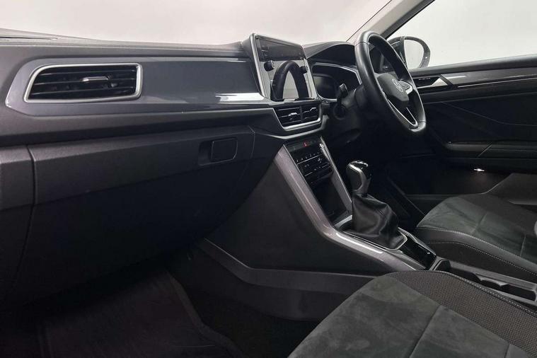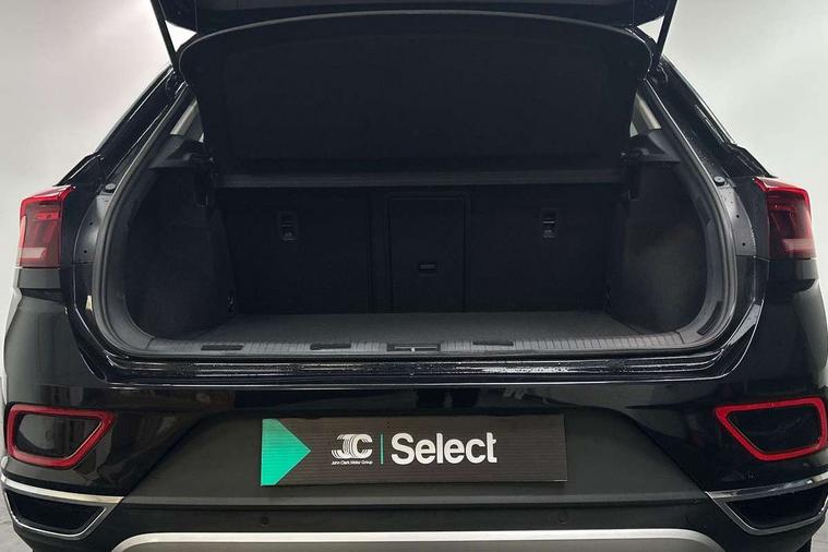 10.25" Digital cockpit pro, Bluetooth mobile phone interface, Driver alert system with fatigue detection, Driver tips and journey analysis, Emergency call service, Lane keeping system Lane Assist, Modified key software - reduce switch off time for key status change to Long no motion, Online services, Park assist including front and rear parking sensors, Service interval indicator, Tailgate/trunk lid release from outside, Think blue trainer driver tips and journey analysis, Warning sound and light for front seatbelts unfastened, Wireless app connect, Battery regeneration during braking, Start/stop function with battery regeneration, Diversity antenna for FM reception, Front and rear 6 speakers, Music playback - MP3, WMA and AAC files, Premium USB cable in choice of either Apple or Android smartphone compatibility, SD card slot, Simultaneous pairing of 2 compatible mobile devices, Title and cover art display, We Connect and We Connect Plus functionality, 3rd brake light, Auto dimming interior rear view mirror, Automatic hazard lights activation under emergency braking, Automatic headlight control with LED separate daytime running lights with coming/leaving home function, Body colour sports bumpers with silver metallic underbody fascia, Dynamic headlight range control with self adjusting whilst driving, Extended roof spoiler, Exterior mirrors aspherical on driver side, convex on front passenger side, External USB type C socket and charging sockets, Front windscreen wiper with intermittent wipe and 4 position delay, Heated rear window, LED Plus headlamps, LED rear combination lamps, LED rear number plate lights, LED tail lamp rear comination lamps, Light mode for poor weather, rain, fog or snow, Power windows with comfort operation and circuit breaker, Rain sensor, Rear exhaust tailpipe, Rear fog light on one side and reversing lights on both sides, Rear side wing doors, Rear wash/wipe with intermittent wipe setting, Remote electrically foldable door mirrors, puddle lights and reverse activated passenger's door mirror, 12V power socket in centre console, 3 rear head restraints, 3 seat bench in 2nd row, 4 load lashing points in luggage compartment, Air care climatronic air conditoning system with active combination filter and 2-zone temperature control, Chrome plated radiator grille inserts, air vent surrounds and light switch surrounds, Door and side trim panel with leatherette insert, Drawer under drivers seat, Front + rear carpet mats, Front centre armrest, Front comfort sports seats, Front cupholders x 2, Front footwell illumination, Instrument lighting, white adjustable panel illumination, Interior ambient lighting and surround lighting, Interior light delay, Isofix child seat preparation, Leather gearshift handle, LED interior light with switch off delay/dimmer and 2 front/rear LED reading lights, Load-through provision with cup holder when folded down ('Unsplit rear seat bench, split folding backrest, with centre armrest), Luggage compartment lighting, Non-folding front passenger seat backrest, Single front passenger seat, Storage compartment in left and right luggage area, Storage compartment in rear doors, Storage compartments in driver and front passenger doors, Sunvisors with illuminated vanity mirrors, Variable boot floor, height adjustable and removable, Driver assistance pack without proactive passenger protection - T-Roc, 3 point height adj front seatbelts + pretensioners, 3 point seatbelts in outer rear with ECE label, ABS, Child locks on rear doors, Driver and front passenger airbag with front passenger airbag deactivation, Driver and front passenger safety-optimised head restraints, Drivers seatbelt reminder, Electronic parking brake, Electronic Stability Control (ESC) inc EDL (Electronic Differential Lock) and ASR (Traction Control), Front and rear passengers curtain airbag system including front side airbags, Front assist with city emergency braking and pedestrian monitoring, Front seat side impact airbags, Predictive pedestrian protection, Rear disc brakes, Single tone horn, Tyre pressure loss indicator, Volkswagen roadside assistance, Alarm with interior protection, Anti-theft alarm system with interior monitoring, backup horn, and towing protection, Remote central locking with SAFELOCK, radio remote control with 2 remote control folding keys, Trims for alloy wheels,