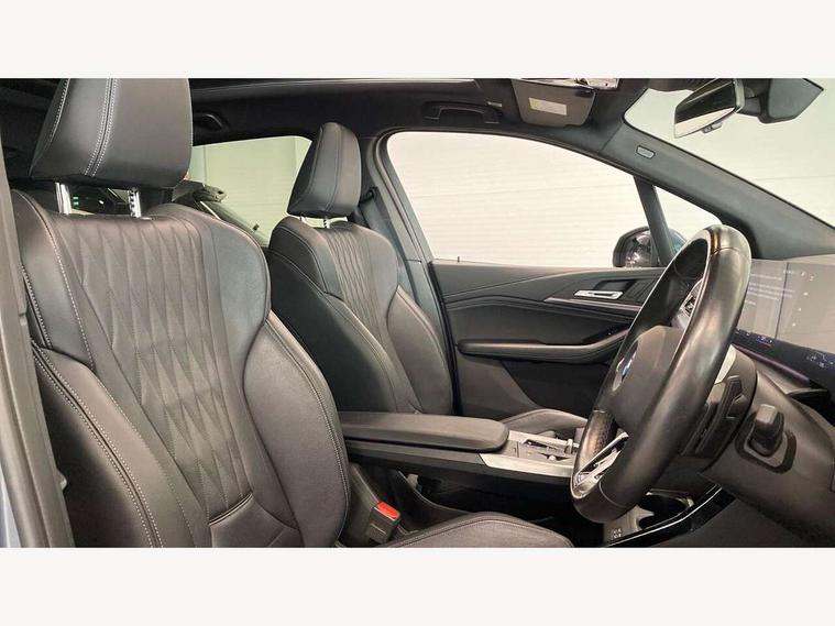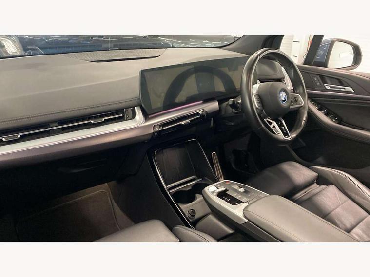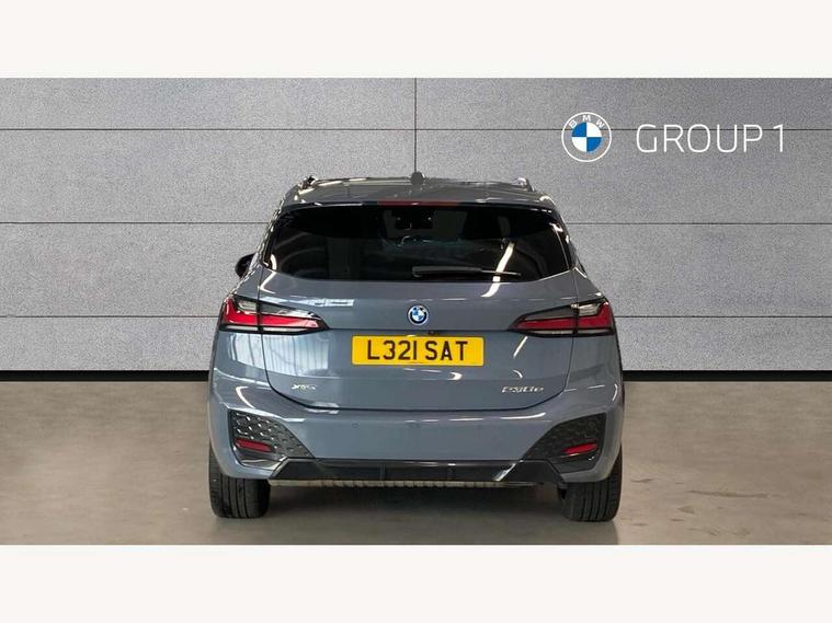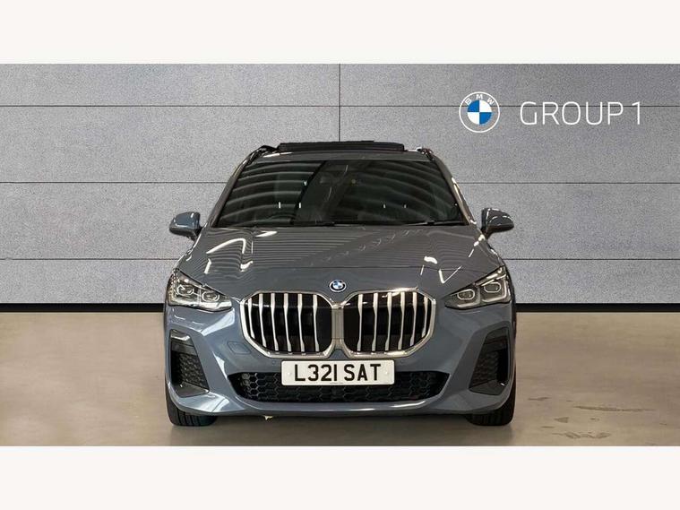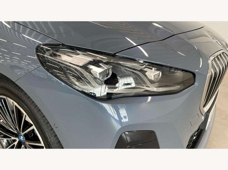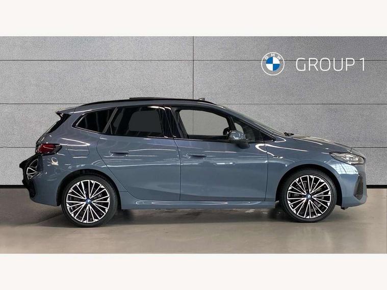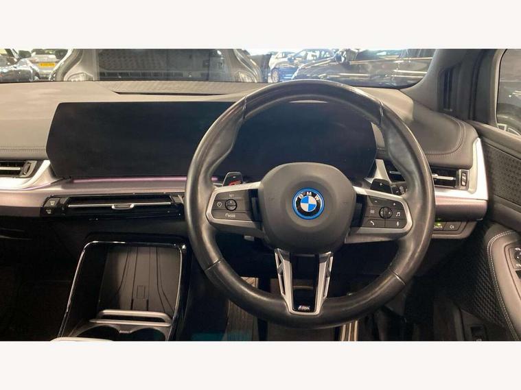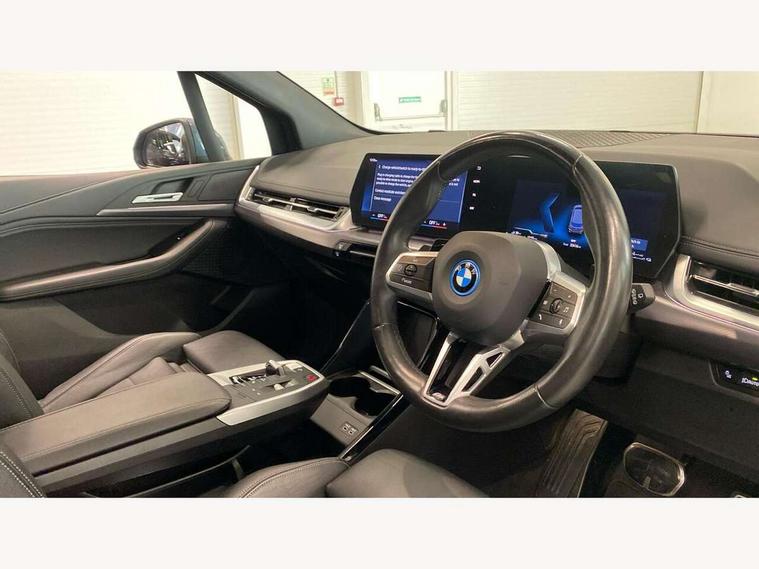 Active Guard incl speed limiting and lane departure functions with auto steering, and front collision warning with brake intervention, Automatic powered tailgate, Automatic start/stop function, BMW Iconic sounds electric, BMW Online services, BMW Teleservices, Brake pad wear indicator in front and rear, Condition based service, Drive off assistant, Flat air vents on instrument panel in high gloss black, adjustable slats with elements in pearl chrome, iDrive controller, Language version English, On board computer - average speed+fuel consumption, service interval, clock/date, odometer/trip meter, outside temperature display and ice warning, Parking assistant with active park distance control, reversing assistant, lateral parking aid and rear view camera, Servotronic variable electric power steering (EPS), Smartphone integration, Widescreen display, 45 Litre fuel tank, Drive performance control with ECO PRO comfort + sport mode, eDrive exterior sound, Gear selector switch with toggle operation, M Adaptive suspension, Mode 3 charging cable, Petrol Particulate Filter, Steptronic transmission with double clutch and gear shift paddles, 2x USB Type C ports in front centre console for charging and data transfer, 2x USB Type C ports in rear centre console for charging, DAB Digital radio, Welcome sound upon opening of the front driver or passenger door, Air inlet middle part on front apron in lines specific design with trim strip in satinised aluminium, Automatic headlights, BMW emblem, engine compartment lid and tailgate, Body colour roof mouldings, Body coloured door mirror caps, Contoured rear roof spoiler in vehicle colour with side aeroblades in black high-gloss, Driver side exterior mirror lighting with BMW logo projection, Dynamic brake lights, Electric adjustable heated door mirrors, Electric windows - front and rear, with open/close fingertip control, anti-trap facility and comfort closing, Folding door handles integrated flush with surface, Front and rear windscreen wipers with heated front washer nozzles, Front bumper cover with independent design in body colour with inserts in black high gloss, Front bumper design elements in satinised aluminium, Front door exit lights, Front door sill finishers aluminium inserts with M inscription, Front entry sills with aluminium inserts + BMW inscription, Front oramental grille with radiator grille bars in satinised aluminium, Heated rear window, Hidden exhaust pipe, High gloss shadow line, High gloss shadowline roof rails, Key with M identification, LED Daytime running lights and parking lights with turn indicators, LED number plate light, LED third brake light in rear spoiler, M identification on sides, Manual headlight range control, Model inscription on right tailgate, Rain sensor, Rear bumper cover with independent design in body colour with inserts in black high gloss, Rear bumper trim strip in satinised aluminium, Rear side wing doors, Shark fin antenna, Side sill covers with independent design in Body colour, Trailer stabilisation logic, Trims on front and rear bumper covers colour-coordinated with side window graphic, Visible VIN plate, Welcome lighting, Windscreen washer nozzle for rear view camera, 12V power socket in luggage compartment and front centre console, 12V socket in right side trim panel, 2 bag hooks in luggage compartment, 2 front reading lights, 2 open cup holders in front centre console, 3 seat bench in 2nd row, 40:20:40 split folding rear seat backrests, Ambient lighting front and rear, Automatic two zone climate control air conditioning, Bottle trays in all doors, Child seat ISOFIX attachment for two outer rear seats and front passenger seat with anchorage points, Driver and front passenger sports seats, Four grab handles integrated in roof lining, Front and rear door pockets, Front and rear footwell lighting, Front and rear side armrest integrated into door trim, Front centre console storage compartment, Front head restraints, Glovebox with light, Heated front seats, Height adjustable 3 rear head restraints, Interior door handle recess light on all doors, Luggage compartment lighting, M Anthracite headlining, M specific floor mats, M sport leather steering wheel, Map pockets, Mechanical rear seats with fore/aft adjustment, Multi-function controls for steering wheel, One piece parcel shelf opens together with tailgate and removable, Rear cloth hooks, Single front passenger seat, Stainless steel pedals, Steering wheel column manual adjustment, Storage compartment lighting in centre console and storage tray in centre stack, Storage compartment net in left side trim panel, Storage compartment with folding cover under centre console armrest cushion, Storage tray in right side trim panel, Sunvisors with illuminated vanity mirrors, Three spoke sport leather steering wheel, Connected pack professional - 2 Series Active Tourer, Technology pack - 2 Series Active Tourer - MY22, 3 point seatbelts on all seats, front pyrotechnic belt tensioners, stopper and belt force limiters, rear coded belt buckles, Airbag - Front driver and passenger, front and rear head, front side, curtain head protection, manual deactivation of front passenger airbag possible, Anti lock braking system (ABS) with brake assist, Automatic hold function, BMW emergency call, Brake drying, Braking readiness, Child proof locking system in rear door, Cornering brake control, Crash Sensor - activates hazard/interior lighting + unlocks doors, DSC - Dynamic Stability Control, Dynamic brake control, Dynamic Traction Control - DTC, Electromechanical parking brake, Energy recovery system, Front disc brakes, Integrated braking system, PC iBrake PostCrash approach control warning with light braking function, Rear disc brakes, Tyre pressure monitoring system, Warning triangle and first aid kit, Anti theft alarm system, Closing system with central locking, Engine immobiliser, Locking wheel bolts, Front centre console trim in high gloss black with my mode expressive, BMW mobility