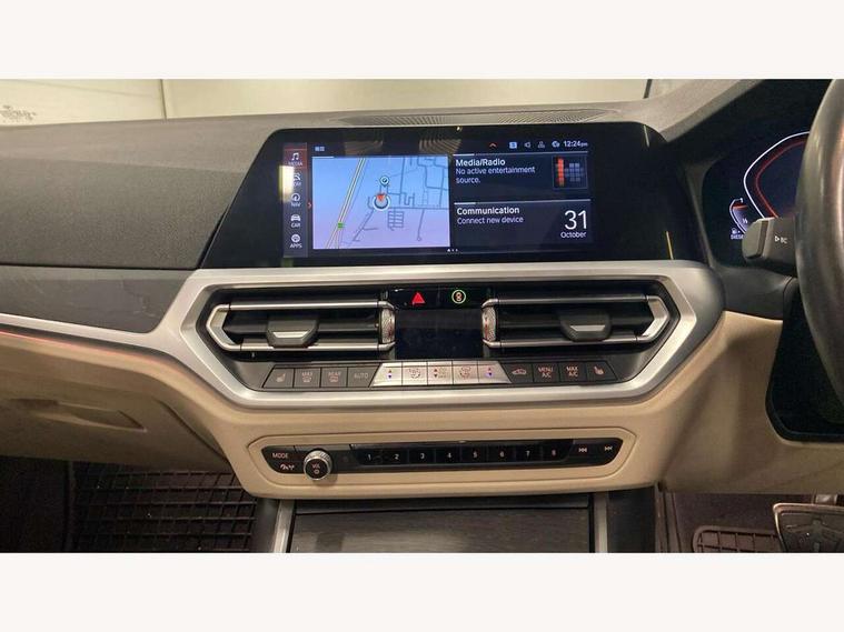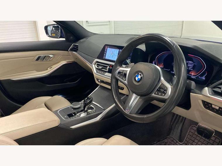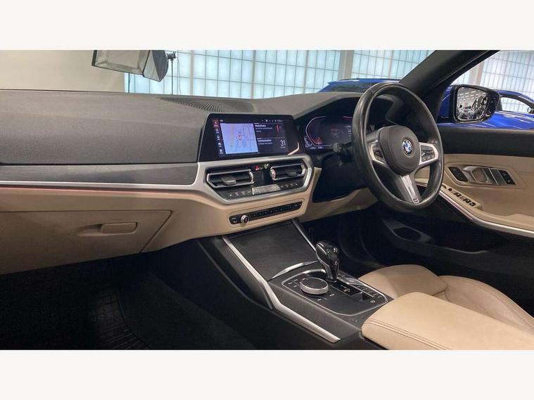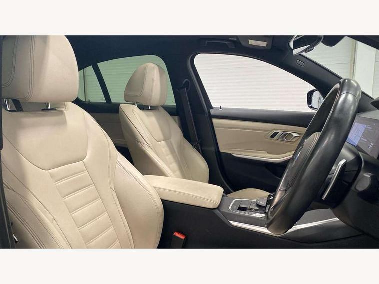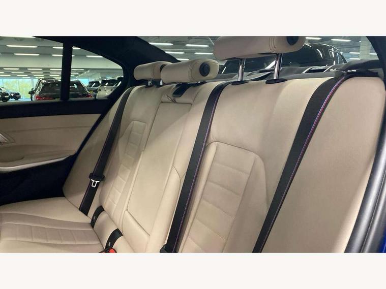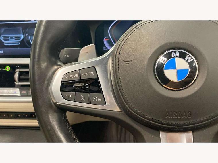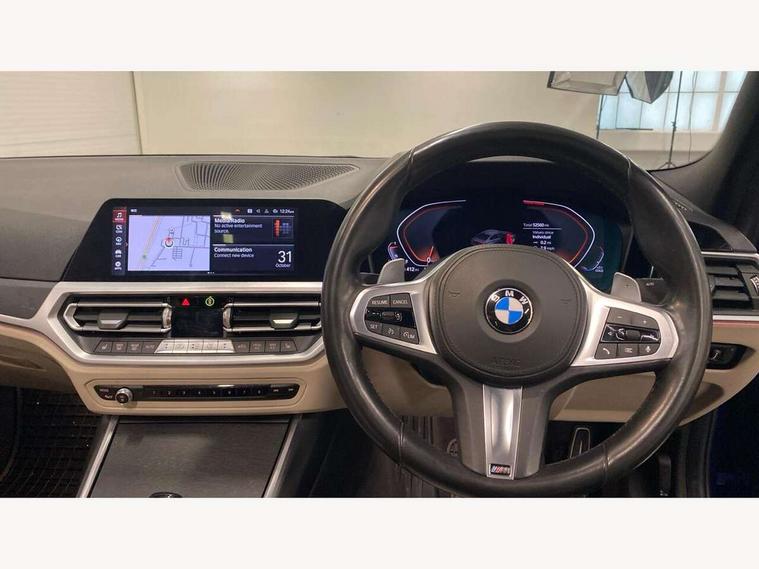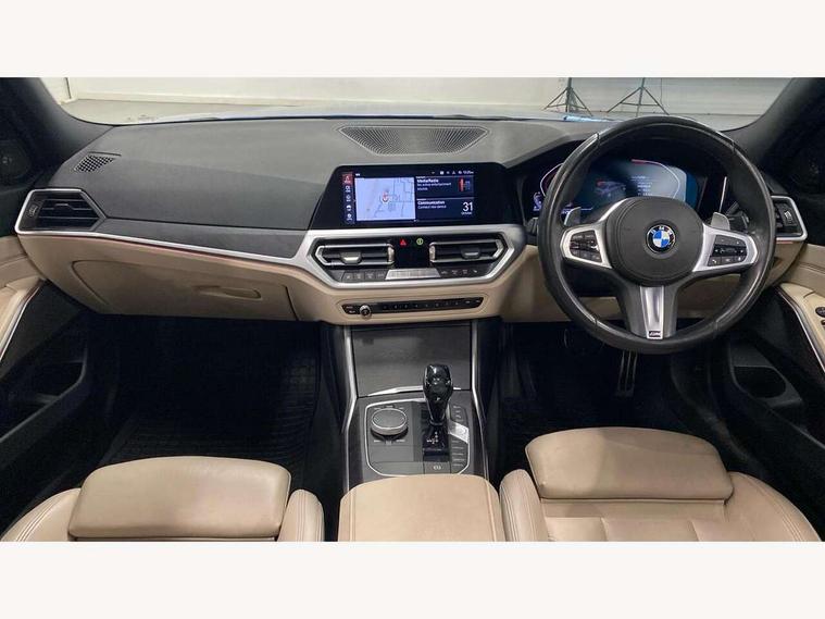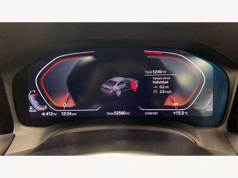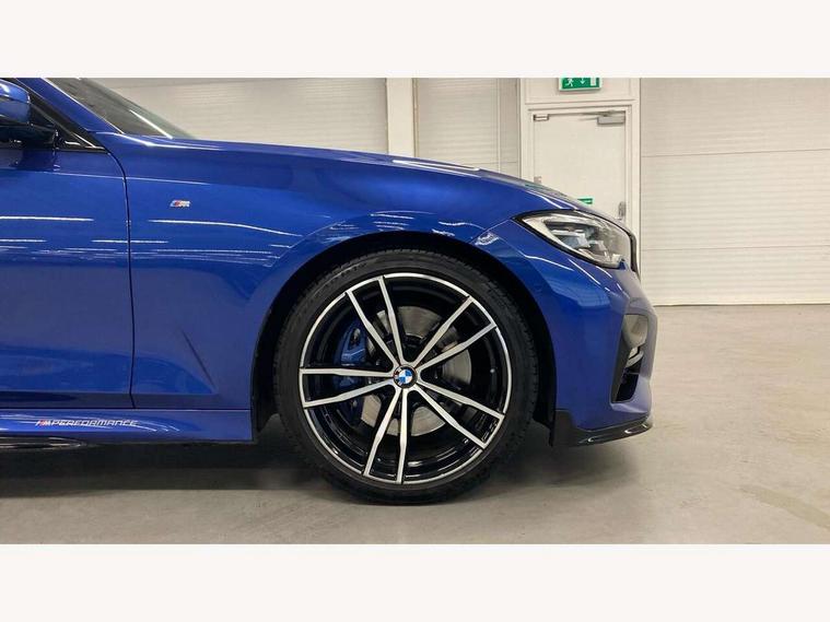 Active guard plus, Attentiveness assist, Auto start-stop, BMW Live Cockpit Professional sat nav system including 10.25" high resolution display and Intelligent Voice Assistant, BMW Online services, BMW Teleservices, Brake pad wear indicator in front and rear, Check Control warning system for monitoring of lights and door/luggage compartment open warning, Condition based service, iDrive controller on centre console, Instrument cluster with speedometer with mph readout, tachometer, fuel gauge and oil temperature gauge, Oil sensor for level and grade, On board computer - average speed+fuel consumption, service interval, clock/date, odometer/trip meter, outside temperature display and ice warning, Optimum shift indicator, Personal Profile, Variable sport steering, Battery cut-out switch, Diesel particulate filter, Electronic differential lock, Incorrect fuelling protection, Larger capacity fuel tank, M sport suspension, Sport automatic transmission with steering-wheel mounted gearshift paddles and launch control, Stroke dependent dampers, DAB tuner, Acoustic glazing, Active airstream chrome frame kidney grille with 8 high gloss black vertical slats, Automatic headlight beam throw control with load dependent regulating reaction, dynamic compensation of braking dive and acceleration squat, Black roof mouldings, Body colour - fuel filler flap, front and rear bumpers, door handles and mirror caps with integrated turn indicator + bottom segment in matt black, Dynamic brake lights, Extended LED headlights, Exterior mirrors - electrically folding with anti-dazzle, Front and rear bumper system with replaceable deformation elements, Front and rear electric windows with open and close fingertip control, anti trap facility and comfort closing, Front black door sill finishers with BMW designation, Green tinted heat protection glazing, High gloss shadow line exterior trim, Interior rear view electrochromatic mirror with automatic anti dazzle function, LED front fog lights, Left and right split exhaust tailpipes, Lightweight engineering, M aerodynamic body styling, M designation on left and right front side panels, M designation side badges, Matt black exterior B pillar, Model designation on right side of tailgate, Rain sensor with automatic headlight activation, Shark fin antenna, Two part LED tailights in L-shape with components in smoked glass, brake light, LED turn indicator and rear fog light, Visible VIN plate, Welcome lights in interior and door handle area, Windscreen wipers with integrated washing jets, 12V power socket in front storage compartment, 2 front cupholder in centre console with clamping elements and matt black inlay, 3 rear seats with non folding headrests with 3 point seat belts, 3 spoke M leather steering wheel, 4 pieces lashing eyelets in luggage compartment, 40:20:40 split folding rear bench seat, Ambient lighting, Anthracite headlining, Armrest integrated in front and rear door trim + front centre console armrest, Centred top Luggage compartment lights, Four grab handles integrated in roof lining, Front and rear door pockets, Front and rear velour floor mats, Front head restraints, Front sport seats, Heated driver and front passenger seats, Height adjustable mechanically and infinitely variable steering column, Illuminated glove compartment with separate small compartment, Interior lighting - front centre over interior mirror with soft light, rear centre and front and rear footwell lighting, Rear centre armrest with 2 cupholders, Rear centre console with storage compartment and ventilation grille, Steering column length adjustment lever, Sunvisors with vanity mirrors and ticket pocket, Three zone automatic air conditioning, Through loading system with 40/20/40 split folding rear seat, Toolkit located in luggage compartment, Connected pack professional - 3 Series Saloon/Touring, M Aerodynamics pack - 3 Series Saloon/Touring, 2 tone horn, ABS, Automatic Stability Control (ASC), BMW emergency call, Brake assist function, Brake drying, Brake energy regeneration, Braking pre-tensioning, Child proof locking system in rear door, Child seat ISOFIX attachment rear outer seats, Cornering brake control (CBC), Crash sensor activating of airbags, Unlocking doors, hazard warning lights, fuel cut off, interior lighting+activation of safety battery terminal clamp, Driver and front passenger side airbags, integrated in the door side seat backrest bolsters for all seat variants, Driver/Front Passenger airbags, Dynamic brake control, Dynamic Traction Control - DTC, Electromechanical parking brake with automatic drive away release and auto hold function, Front passenger manual airbag deactivation, Head airbags for all 4 outer seats, Hill start assist, M Sport braking system, Seat belt security check for driver and front passenger, Side impact protection, Three 3 point seat belts on all seats including front belt stopper, pyrotechnic belt tensioners and belt force limiters, Tyre pressure monitoring with three level warning strategy, Ventilated front and rear disc brakes, Warning triangle and first aid kit, Alarm system (Thatcham 1) with remote control and electronic engine immobiliser, Central locking switch for all doors, fuel filler cap and luggage compartment, Remote control with integrated key one button open/close vehicle and windows, sole opening of the luggage compartment lid and panic mode, Selectable automatic lock when driving away, Start/stop button with Comfort Go keyless engine start and auto Start/stop deactivation button, Vehicle key with M specific designation, Reduced rolling resistance tyres,
