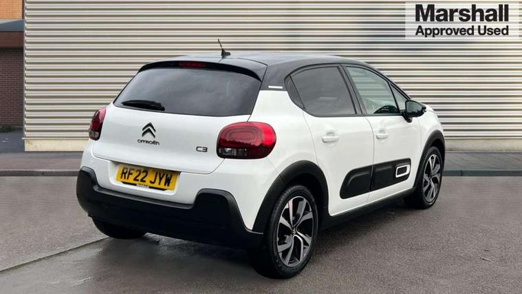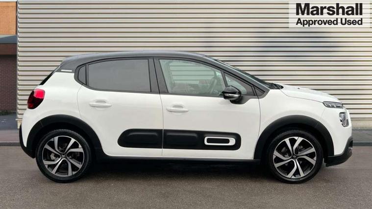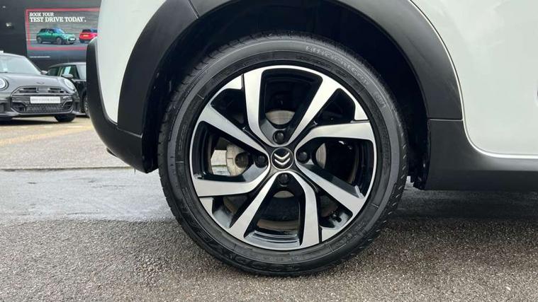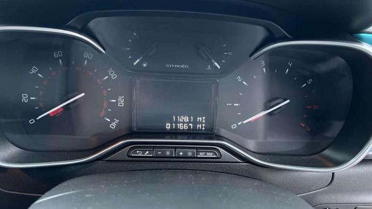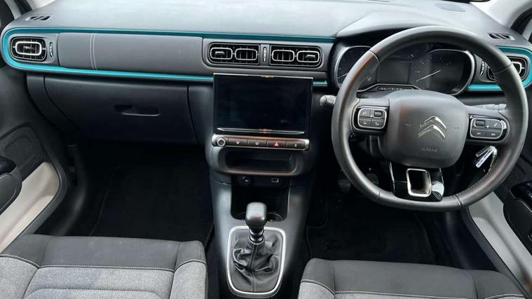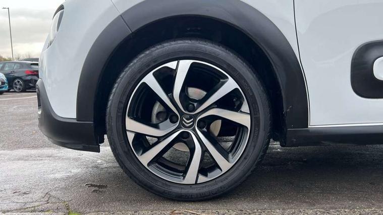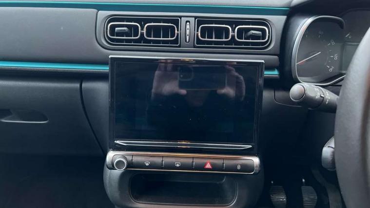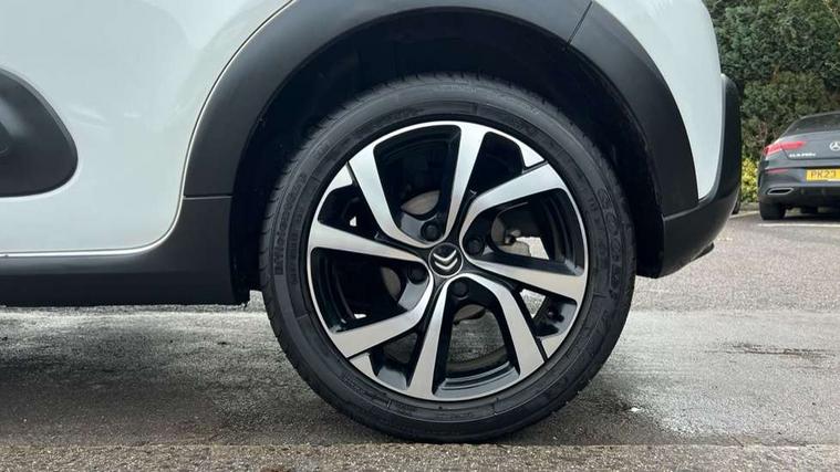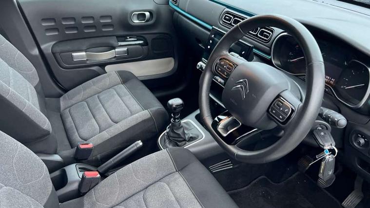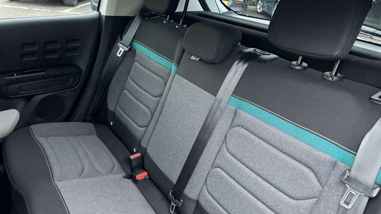 Citroen connect box emergency and assistance system, Citroen connected nav with DAB, 6 speakers, 7" captive touch screen, mirror screen includes apple carplay/android auto and bluetooth, Coffee Break Alert, Cruise control + speed limiter, eCall emergency call system, Exterior temperature display, Multi function trip computer, Reversing camera, Satin chrome surround instrument cluster with white LCD and analogue gauges, Variable assistance power steering, USB connection, 3D rear light signature, Airbump on side door panel, Auto dimming electrochrome rear view mirror, Auto headlights, Automatic activation of hazard warning lights, Body colour bumpers, Body colour door handles, Chrome decoration on front face, under chevrons and around daytime running lights, Citroen illuminated signature in LED headlights and LED daytime running lights, Dark tinted tailgate and rear side windows, Electric folding and heated door mirrors, Fog lights integrated into front bumper, Front sequential electric windows with one-touch open/close and anti-pinch system, Front windscreen wipers with two speeds and intermittent mode linked to vehicle speed, Gloss black finish B pillar, LED Headlights, LED third brake light, Rear sequential electric windows with one-touch open/close and anti-pinch system, Rear side wing doors, Rear windscreen wiper with intermittent mode linked to vehicle speed and automatic activation when reverse gear selected, Roof colour rear view mirror caps, 1/3 to 2/3 split folding rear seat, 12V socket, 3 seat bench in 2nd row, Automatic air conditioning, Boot light, Cloth/leather effect upholstery, Driver and passenger's sun visor with courtesy mirror, Driver's central armrest, Driver's seat height adjustment, Front lighting panel with map reading lights, Front seats adjustable with forward back slide and adjustable backrest, Height adjustable front head restraints, Height/reach adjust steering wheel, ISOFIX mounting on outer rear seats with top tether and labels indicating fixing points, Leather steering wheel with gloss black + satin chrome elements and audio/telephone controls, Leather trimmed gear lever with leather effect gaiter and overstitching, Map pockets in back of driver and front passenger seats, Parcel shelf, Seatbelt unfastened on the move audible and visual alert for front and rear seats, Single front passenger seat, Storage space under touchscreen with rubber mat, Three rear headrests, Upholstered armrest in front and rear doors, Safety pack 1 - C3, Safety pack 2 - C3, Visibility pack with automatic lights - C3, ABS with Electronic brakeforce distribution and Emergency braking assistance, Driver and front passenger seatbelts with pyrotechnic pretensioners and force limiters, Driver's airbag, Electric child locks, ESP with anti skid system, Front passenger airbag, Front passenger airbag deactivation, Front side airbags + front/rear curtain airbags, Hill start assist, Manual parking brake with leather handle and chrome finish button, Mono-tone horn, Outer rear seats with pretensioners and force limiters, Three rear 3-point seatbelts, Tyre pressure monitoring system, Anti theft alarm, Automatic door and boot locking when moving off with automatic unlocking in case of impact, Central locking with locked indicator and interior one touch lock button, Immobiliser, Remote control central locking with two plip keys, 17" Vector diamond cut alloy wheels, Space saver spare wheel,