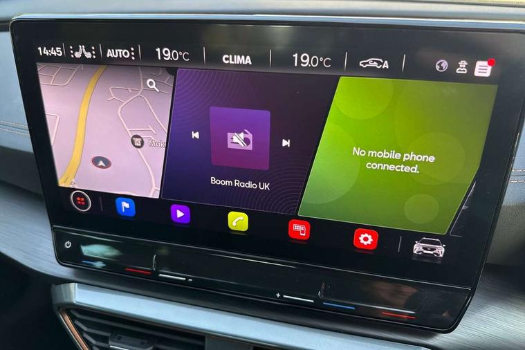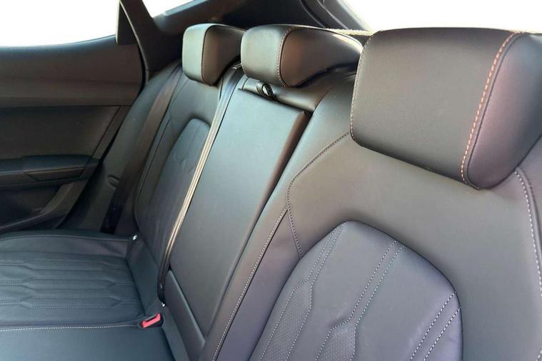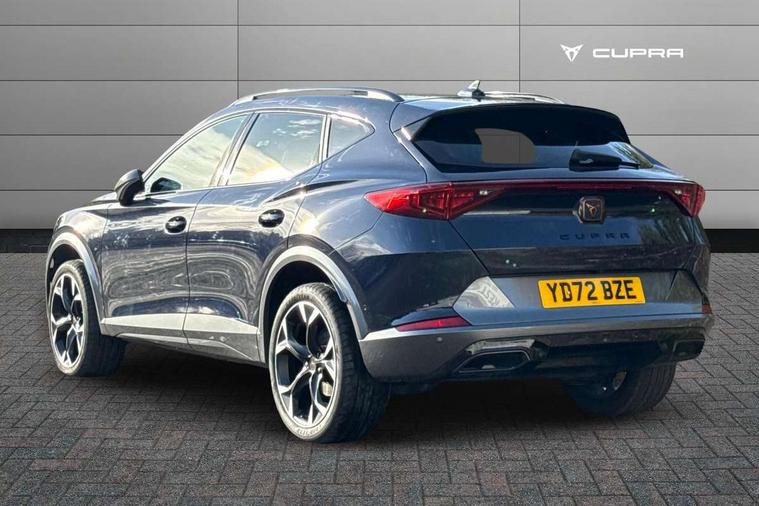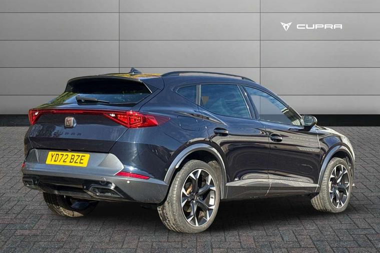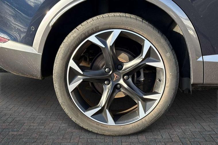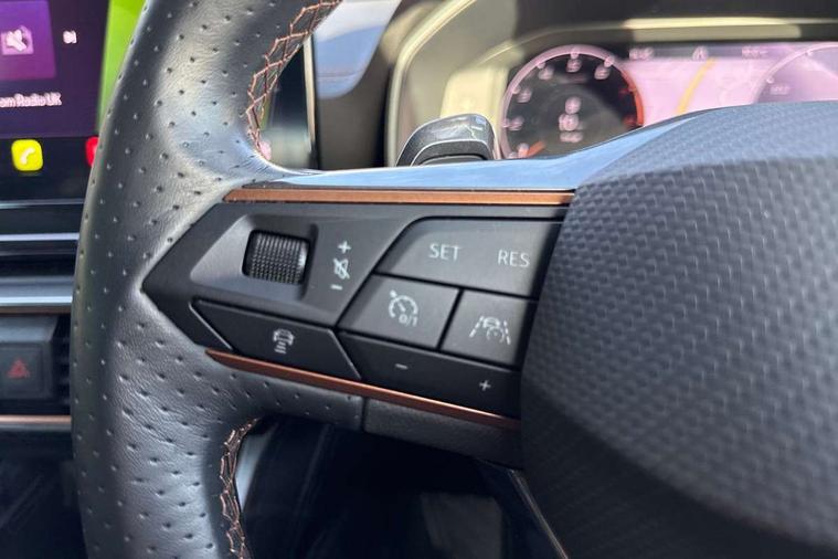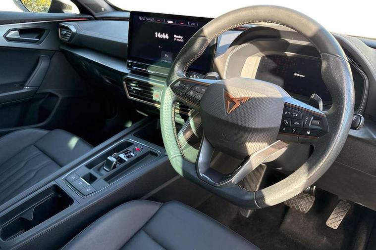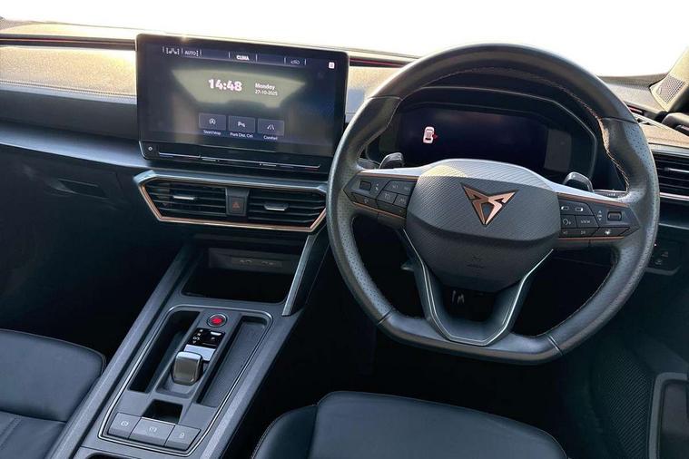 Digital cockpit and configurable dashboard, Driver alert system, Driving profile selection, E-call, Forward collision warning with automatic braking, Lane assist, Navigation system with 12'' Touchscreen Display, Park assist (inc front/rear parking sensors), PAS, Predictive adaptive cruise control with speed limiter, Rear view camera, RPM, trip computer, outside temp gauge, instrument light brightness, low fuel warning light, lights on reminder, gearshift indicator, Service interval indicator, Start/stop system with regenerative braking, Voice control system, Wireless apple carplay, Wireless phone charger, Electronic locking differential and dynamic traction support, Standard suspension, 2 front and 2 rear USB type C sockets, Auxiliary input socket, DAB radio, Auto dimming rear view mirror, Body colour door handles, Body coloured bumpers, Dark grey wing mirror, Daytime running light with automatic headlight control and coming home feature, Dynamic headlight range control, Electric front/rear windows, Electrically adjustable heated and folding door mirrors with memory function, Front fog lamps with cornering function, Gloss black roof rails and window surrounds, LED Headlights, LED Taillights with dynamic indicator, Rain sensing wipers, Rear diffuser with black simulated exhaust pipes, Rear side wing doors, Rear wash/wipe, Third brake light, Tinted rear windows, Welcome lights, 12v power supply in centre console, 12V socket, 12v socket in loadspace, 2 front and 2 rear reading lights, 230V socket, 3 seat bench in 2nd row, 60/40 split rear bench seat with armrest and mechanical seat release, Black headlining, Dust/pollen filter, Front and rear head restraints, Front centre armrest, Height/reach adjust steering wheel, Illuminated interior front door sills, Illuminated sunvisor with mirror, Isofix, Leather multi function heated steering wheel with gear shift paddles, Luggage tie-down hooks, Single front passenger seat, Three zone climate control with control panel in rear, Variable luggage/load compartment floor, Wraparound lighting, Genuine Nappa leather Pack - Cupra, 3 point seatbelts on all rear seats, ABS, Brake control system - ESC and brake booster, Child proof door locks, Driver and front passenger airbags with front passenger airbag de-activation, Electronic parking brake, Front and rear disc brakes, Front side curtain airbags, Hill hold control, Seat belt reminder for front and rear seats, Tyre pressure monitoring system, Anti theft alarm system, Keyless entry and start system (KESSY), Locking wheel bolts, Copper and aluminium interior detailing, 19" 'Exclusive' machined sport matte black and silver alloy wheels,