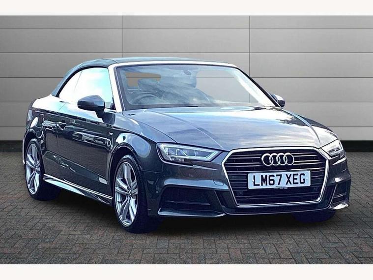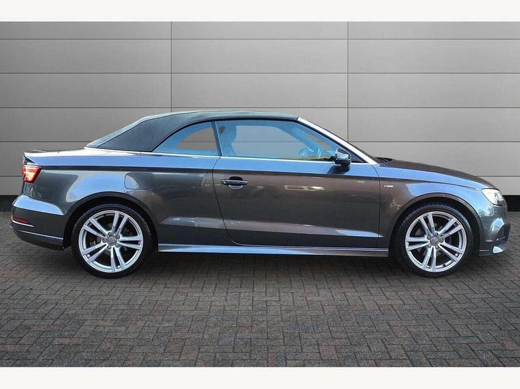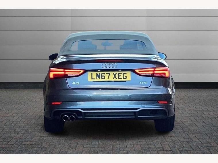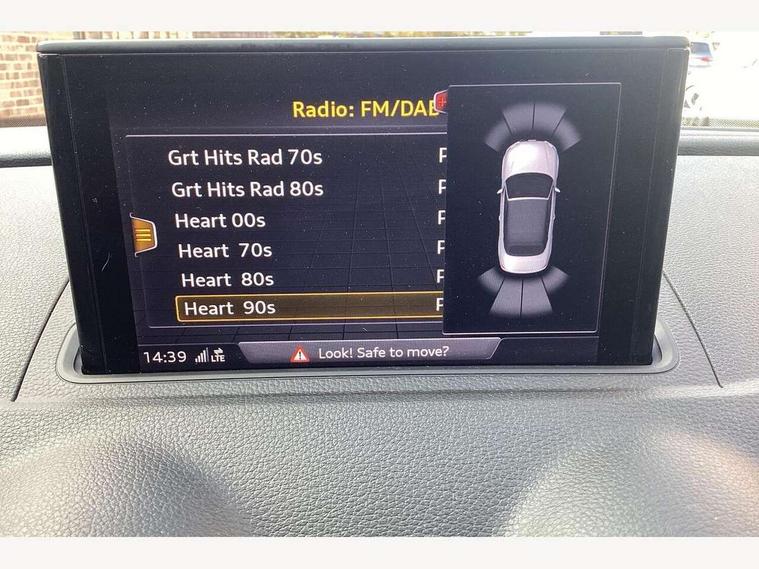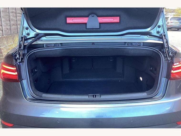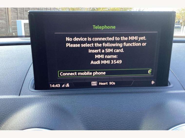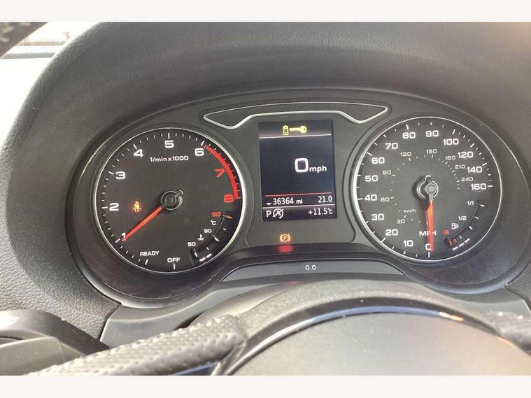 Audi connect, Audi drive select, Audi smartphone interface, Automatic start/stop system, Bluetooth interface, Colour driver's information system display, Electro-mechanical PAS, SD card based MMI navigation, Service interval indicator, 2 USB ports, Audi music interface, CD player, DAB Digital radio, MMI radio plus with 7" colour MMI screen and MMI controller, Aluminium side window trim, Auto dimming rear view mirror with light and rain sensors, Automatic lights and wipers, Body colour bumpers, Body colour door mirrors with integral indicators, Chrome exhaust tailpipes, Dark chrome grille, Electric operated/heated door mirrors, Front and rear electric windows, Fully automatic acoustic hood, Heated front windscreen, Heated rear window, Heated windscreen washer jets, LED daytime running lights, Roof spoiler, S Line body styling, 2 height adjustable rear headrests, 3 spoke flat bottom multi-function leather steering wheel including paddle shift, 4 lashing points to secure luggage, 50/50 split folding rear seat, Adjustable front armrest, Driver/passenger sunvisors, Dual zone electronic climate control, Front/rear floor mats, Height adjustable front seats, Height/reach adjustable steering column, Illuminated glovebox, ISOFIX child seat preparation+airbag deactivation, Jack and tool kit, Perforated leather gearknob, Stainless steel pedals, Storage compartment in centre console, Storage compartments in doors, LED interior light pack - A3/RS3, Light and rain sensor pack - A3 Cabriolet, Non smoking pack - A3, Storage pack - A3 Cabriolet/Saloon, 3 point seatbelts on all seats, ABS/EBD, Active bonnet, Active front headrests, ASR, Automatic roll over protection, Driver and passenger side airbags, Driver/Front Passenger airbags, Drivers knee airbag, EDL, Electromechanical parking brake, ESC - Electronic Stability Control + traction control, Front passenger airbag deactivation, Seatbelt warning, Tyre pressure monitor, Warning triangle and first aid kit, Anti theft alarm, Anti-theft wheel bolts, Immobiliser, Remote control central locking, Aluminium air vent surrounds, Aluminium trim elements, Matt brushed aluminium inlays, Space saver spare wheel,