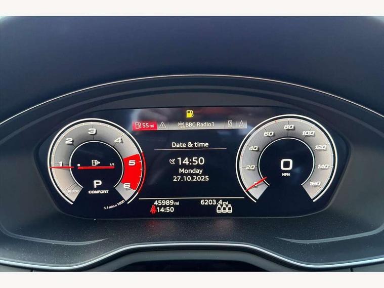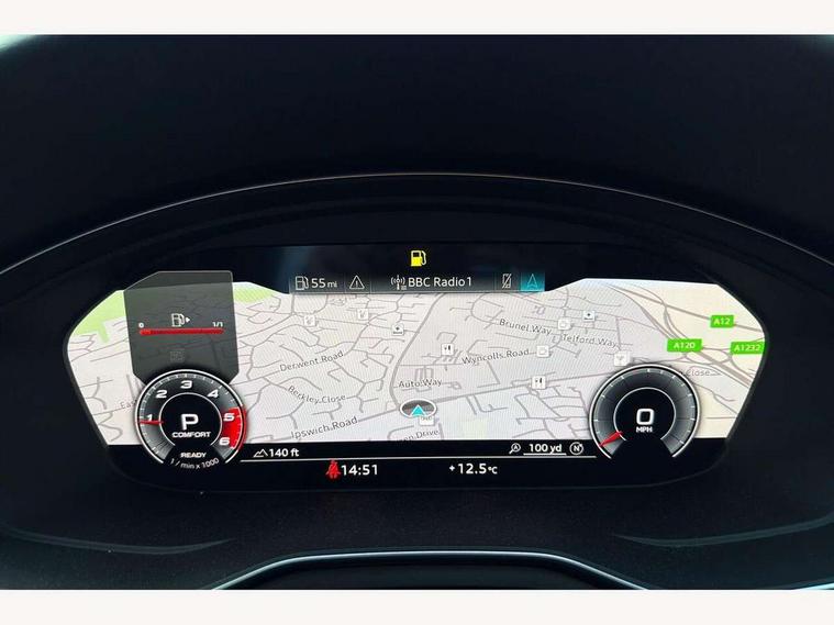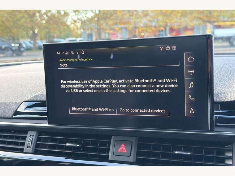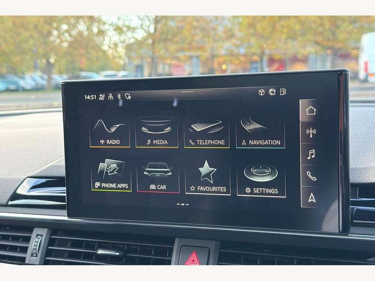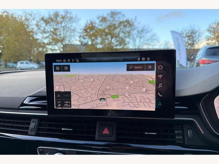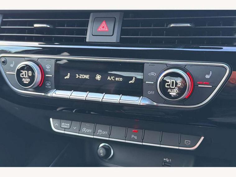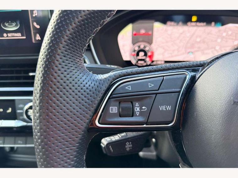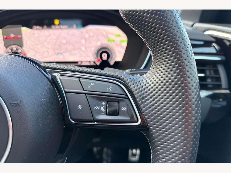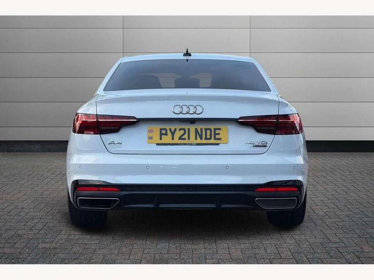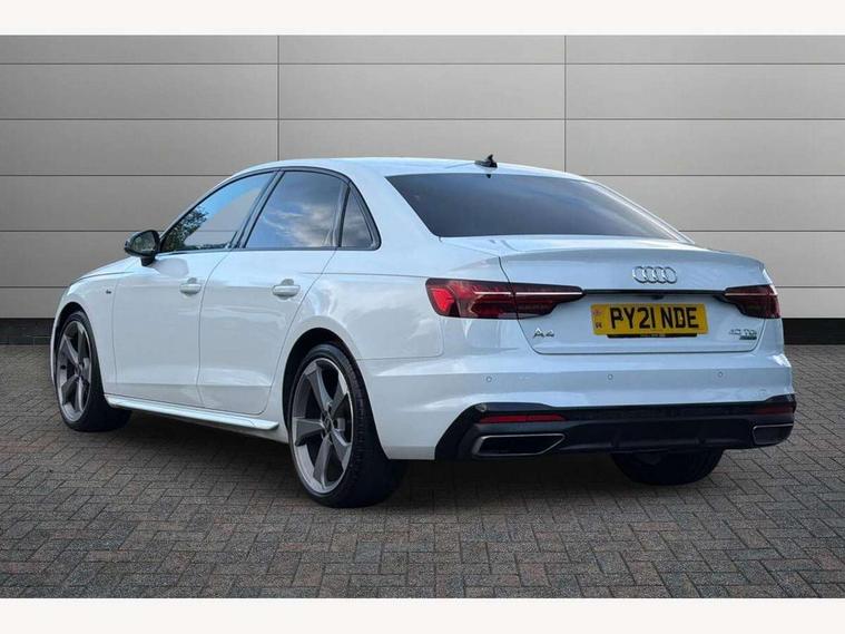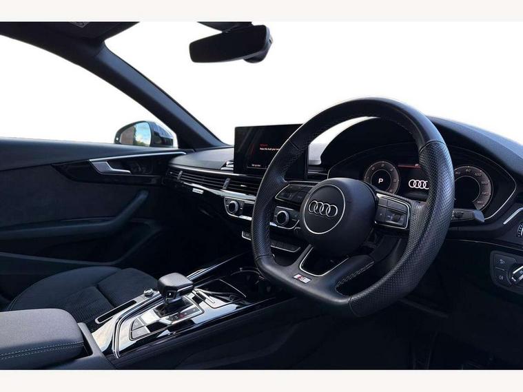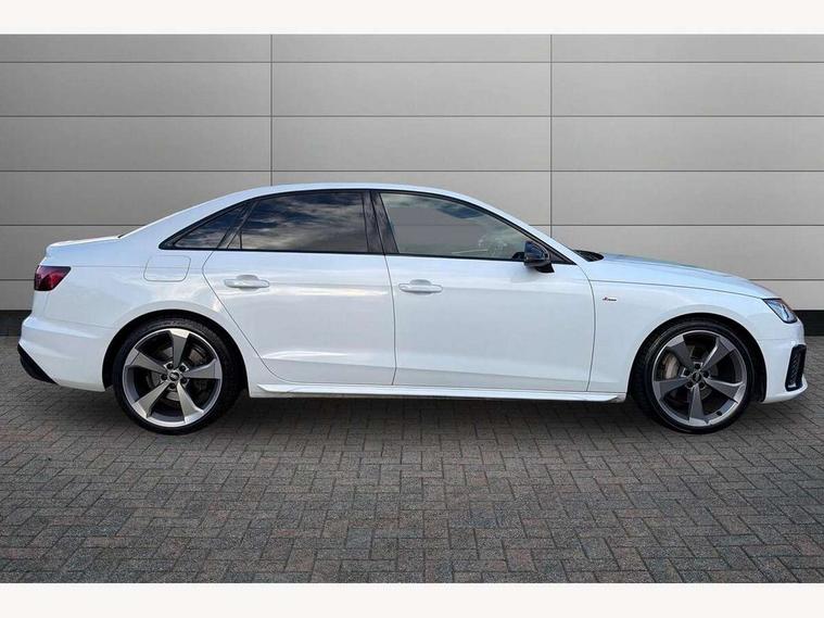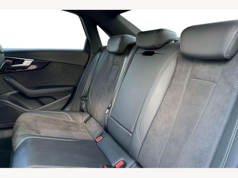 Audi connect safety and service (e-call), Audi connect with Amazon Alexa Integration, Audi drive select, Audi parking system plus with front and rear sensors, Audi smartphone interface, Audi virtual cockpit, Automatic start-stop system with coasting functionality and efficiency programme, Bluetooth interface, Electric boot lid release, Electromechanical power steering, Email, calendar and text messages displayed via MMI, MMI Navigation plus with MMI touch includes 10.1" high resolution colour MMI display, 3D map, Rear view camera, Voice control system, 58 Litre fuel tank, Sports suspension lowered by 23mm, 2 USB charging ports, 8 passive loudspeakers, DAB digital radio reception, Auto dimming rear view mirror, Black Audi rings and black badging (model name in black badging, no engine badging), Black audi rings decal above rear sills, Body colour door handles, Body colour front spoiler lip, Body colour side sill trim, Electrically folding auto dimming/adjustable/heated door mirrors with LED side indicators and kerb view function for passenger side, Front and rear bumpers with side skirts, Front wing badges, Grained matt black side air inlets with matt aluminium silver inlay, High beam assistant, High gloss black B pillar trims and triangular rear door trim, LED headlights with LED rear lights + dynamic rear indicators + headlight adjustment and high beam, turning light + LED daytime running lights, Matt aluminium silver tailpipe trim, Privacy glass, Rain and light sensors, Rear diffuser in matt titanium black with trim strip in matt aluminium silver, Windscreen with acoustic glazing, 4 way electric lumbar support for driver and front passenger, 40/20/40 split folding 3 rear seat bench in 3 parts with rear centre armrest, Black cloth headlining, Black perforated leather gearknob, Contrast stitching on seats, steering wheel and gear lever gaiter, Deluxe 3 zone electronic climate control, Door sill trims with aluminium inlay, Front and rear head restraints, Front centre armrest, Heated front seats, Illuminated door sill trims with S logo, ISOFIX child seat mounting and top tether, Manual seat adjustment, Stainless steel pedals and foot rest, Black styling pack - A4 Saloon, LED Interior light pack - A4/S4, 3 rear seatbelts, 6 airbags - Driver, front passenger, curtain and side windows, Electronic Stabilisation Control (ESC) including ABS, ASR and EDL, Hill hold assist, Multi collision brake assist, Pop-up bonnet for pedestrian protection, Pre sense city, Seatbelt monitoring, Warning triangle and first aid kit, Anti theft alarm, Anti theft wheel bolts, Keyless Go, Piano black finish inlay, Tool kit, Tyre repair kit,