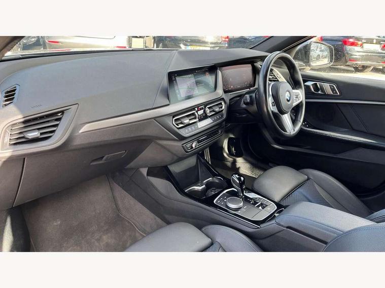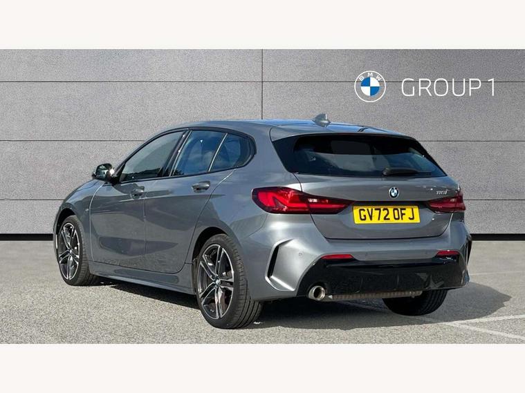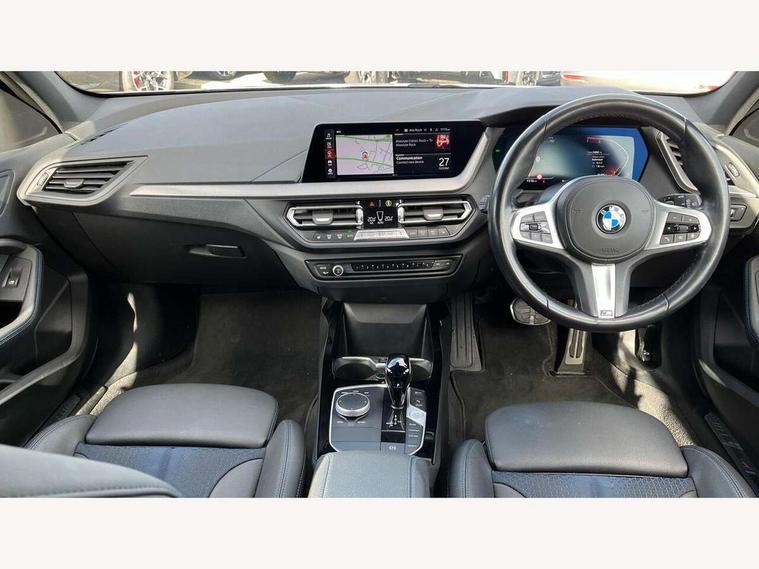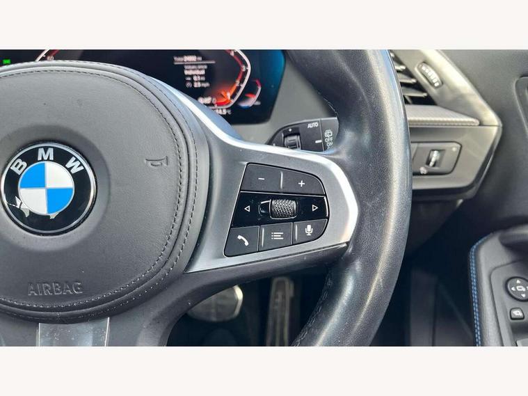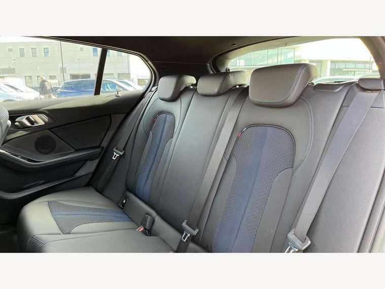 Active guard plus, Attentiveness assist, BMW ConnectedDrive online services, BMW Teleservices, Check Control warning system for monitoring of lights and door/luggage compartment open warning, Cruise control with brake assist, Eco pro mode, Front axle single joint with specific axle kinematics to minimise drive influences on steering + provide increased rigidity agile driving behaviour, Integrated owners handbook, Lane departure warning system, Oil sensor for level and grade, On board computer, Optimum shift indicator, Personal Profile, Pull away assistant, Rigidly mounted rear subframe - Multi link construction with separate spring / damper configuration and excellent driving characteristics, Speed limit Info including no-overtaking indicator, Speed limiter, Aluminium lightweight construction, Anti roll bar front and rear, Balancer shaft, Double VANOS twin scroll turbocharging system, Drive Performance Control, Electronic differential lock, High precision injection, M sport suspension, Petrol Particulate Filter, Twin tube gas filled shock absorbers with degressive characteristic curve, VALVETRONIC engine management, DAB Digital radio, Auto dimming rear view mirror, Automatic headlight beam throw control, Automatic windscreen wipers and automatic headlight, Body colour door handles, Body colour mirror caps, Body colour roof trims, Chrome 'M' logo side designation, Chrome exhaust twin tailpipes round 90mm in left, Chrome kidney grille frame with Satin Aluminium struts, Direction indicator side lights in exterior mirrors, Fading support, Folding side mirrors with auto dimming/folding wing mirrors with auto dimming, Follow me home headlights, Front and rear bumper system with replaceable deformation elements, Front and rear electric windows with open and close fingertip control, anti trap facility and comfort closing, Front door sill finishers in black plastic with M designation in metallic look, Green tinted heat protection glazing, Heated, electrically adjustable exterior mirror aspheric on driver side, convex on passenger side, High gloss shadowline window frame, Recess cover mirror frames and B/C pillar embelisher trim, High level third brake light, Integrated front windscreen with washer jets, LED daytime running lights, LED eyebrow turn indicators, LED front fog lights, LED Headlights, Lightweight engineering, Matt black air guide grilles, Matt black wheel arch trim, Model designation on electric bootlid, Nearside reverse light in rear light cluster, Preparation for high beam assistant, Rear fog lights, Rear side wing doors, Rear window wiper, Shark fin antenna, Trailer stabilisation logic, Visible VIN plate, Welcome lighting, 12V power socket in front centre console with blanking plug, 3 rear seat head restraints, 3 seat bench in 2nd row, 3 spoke sports leather steering wheel with black leather and stitching, pearl chrome decorative finish, specific M Badge, Anthracite headlining, Black boot net with lashing eyes, Cargo function on 2nd seat row, Child seat ISOFIX attachment for two outer rear seats and front passenger seat with anchorage points, Conditioned based service, Driver and front passenger seat heating, Folding rear clothes hook, Four grab handles integrated in roof lining, Front and rear door pockets with bottle holders, Front and rear side armrest integrated into door trim, Front armrest, Front sports seats, Glove compartment, Height adjustable front head restraints, Luggage compartment for bag hooks on left and right, foldable luggage compartment liner and four lashing eyelets, Manual adjust steering wheel, Multi-function controls for steering wheel, Single front passenger seat, Storage compartment in centre console, Sun visors with vanity mirrors and insert tab, Two front centre console cupholders, Two zone automatic air conditioning, Velour floor mats, Additional interior lighting pack - 1 Series, BMW live cockpit professional pack- 1 Series, Connected pack professional - 1 Series, Interior lights pack - 1 Series, M Sport exterior styling aerodynamics pack - 1 Series, 2 tone horn, 3 point seatbelts on all seats, front pyrotechnic belt tensioners, stopper and belt force limiters, rear coded belt buckles, Airbags - Front driver/passenger, front and rear curtain head protection, front side, manual deactivation of front passenger airbag, Anti lock braking system (ABS) with brake assist, BMW emergency call, Brake drying, Braking readiness, Child proof locking system in rear door, City braking function, Comfort modes, Cornering brake control, Crash sensor activating central locking release, hazard warning lights, fuel cut off, interior lighting + activation of safety battery terminal clamp, Driver and front passenger seat belt security check, Dynamic stability control + (DSC+), Dynamic Traction Control - DTC, Electrically operated hand brake including automatic hold function, Front and rear disc brakes, Seatbelt warning, Side impact protection, Tyre pressure monitoring system, Warning triangle and first aid kit, Central locking switch for all doors, fuel filler cap and luggage compartment, Deadlocking function system to all doors, Drive away locking system on all doors and luggage compartment with de-activated in iDrive settings, Locking wheel bolts, Remote control with integrated key with High-gloss Black inlay and M designation and 1 button for open/ close lock, window, open luggage compartment, Start/stop button illuminated in centre console with keyless engine start and auto start stop deactivation button, Thatcham Cat.1 alarm and immobiliser, Wheel slip limitation close to the actuator (ARB), Contrast stitching on instrument panel, Electrically powered 12V compressor, Reduced rolling resistance tyres,