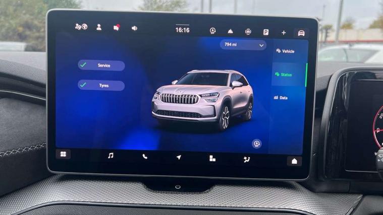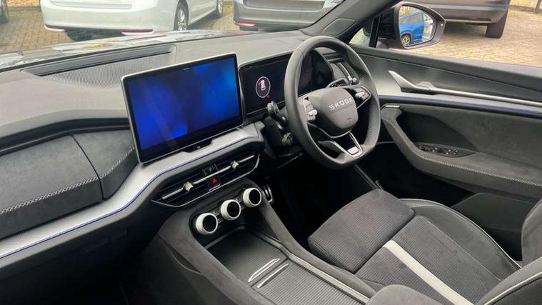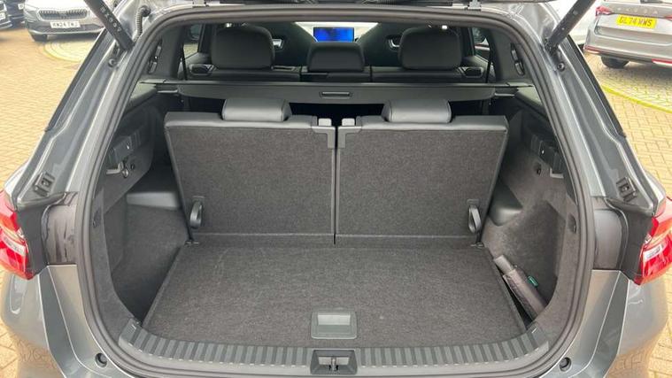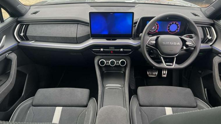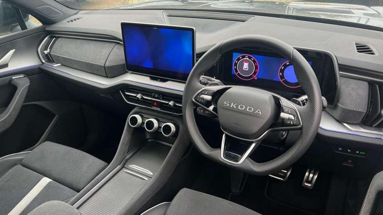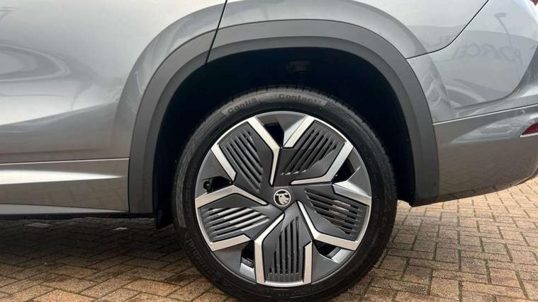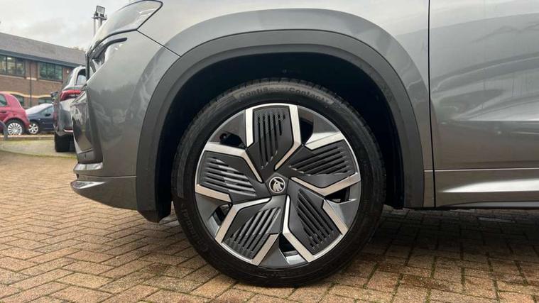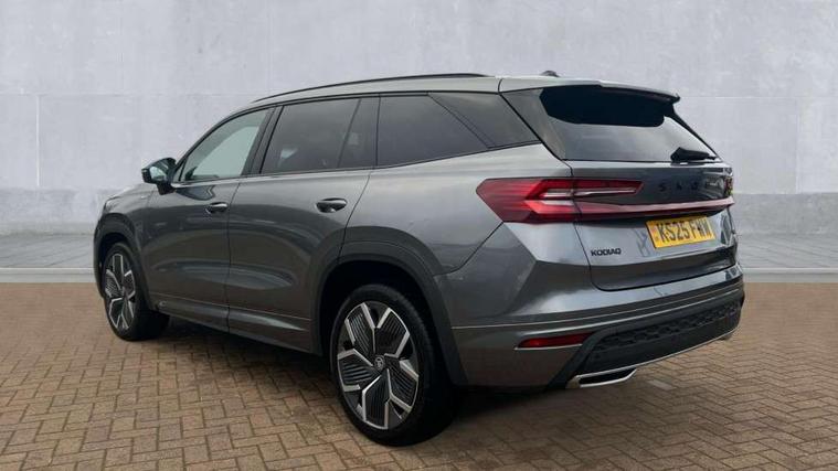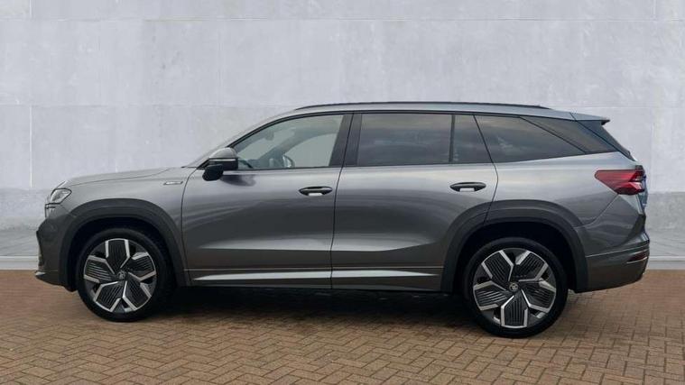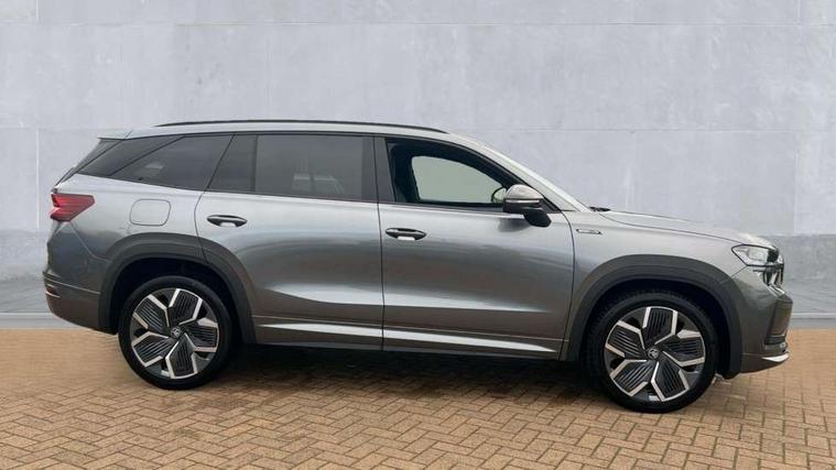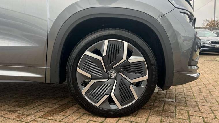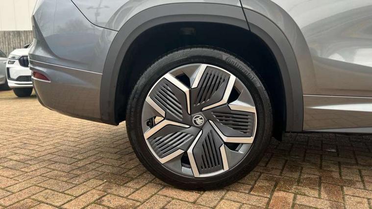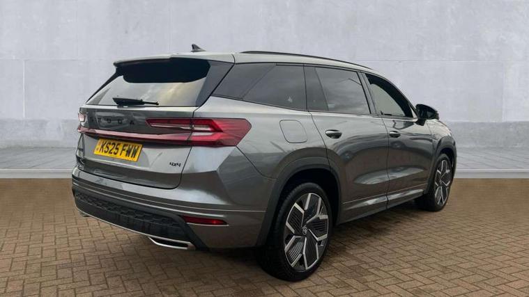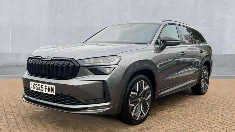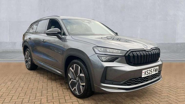 13" satellite navigation touchscreen display, Blind spot detection with door exit warning, Bluetooth system, ChatGPT functionality, Driver alert - Fatigue and drowsiness monitor, Dry display cleaner, Emergency call, Front and rear parking sensors, Front cross traffic assist, Lane assist, Off road modes, PAS, Rear traffic assist, Tailgate unlocking from outside, Traffic sign recognition, USB C Port x 2 in front centre console, Virtual Cockpit - 10.25" digital display, Voice control system, Wireless charging for two smartphones (15W) with cooling function, Wireless SmartLink for Apple CarPlay and Android Auto, Stop/start function, 2x USB-C in the rear, DAB Digital radio, Aero front windscreen wipers with intermittent function, Auto dimming rear view mirror, AWL (all weather lighting) and all weather light with cornering function, Black diffuser and decorative tailpipe with a unique dark chrome finish, Black roof rails, Black sports styling including front grille and window surrounds, Black wheel arch surrounds, Body colour door handles, Cornering light and poor weather light, Electric folding /adjustable/separted heated/folding door mirrors, auto dimming with boarding sports and memory function, Electric front and rear windows, Exterior black decorative trims, Front and rear sports bumpers including lower rear chrome strip, Gloss black door mirrors, Gloss black window frame and D pillar, Heat insulating glass in windshield, Heated rear window, Ice scraper in fuel tank cap, LED daytime running lights, LED third brake light in rear spoiler, Light assistant with automatic headlight control and coming home feature, Logo projection in door mirrors, Privacy glass, Rear roof spoiler, Rear side wing doors, Rear window wiper, Red decorative strip between rear LED lights, Safety reflectors on front and rear doors, Sportline badge on front fenders, Tailgate lettering in Black, Unique dark chrome design logo on alloy wheels, Window control switches with black trim, Windscreen wipers with rain sensor, Without engine designation, 1.5l bottle holder points in all door, 1x centre rear reading light, 2 seat bench in 3rd row, 3 configurable smart dials with 32mm coloured display, 3 seat bench in 2nd row, 4 foldable roof handles with rear coat hooks, Aluminium pedals, Ambient interior lighting - Dashboard, front-door stowage compartments, front and rear door panels and footwell lighting, Automatic gear selector on steering column, Chrome interior door handles, Driver/front passenger reading lights, Fabric headlining, Fixed bench 40:60:40 split folding backrests, Front and rear floor mats, Front centre armrest with jumbo box storage compartment, cup holder and 12V socket, Front sport seats, Height adjustable front headrests, Interior black decorative trims, Isofix child seat fittings in outer middle row rear seats and front passenger with top tether, Manually adjustable steering column, Pollen filter, Rear centre armrest with cupholders, Rear seat boot backrest release, Single front passenger seat, Skoda lettering on steering wheel, Storage pocket including mobile phone pockets on the backs of the front seats, Sunvisors with illuminated vanity mirrors, Three rear height adjustable headrests, Ticket holder on A Pillar, Tri zone climate control, Umbrella in door panel x1 made from sustainable materials, Upper and lower glovebox with card holder and coin compartment, USB C port by rear view mirror for charging only (15W), Acoustic package - Kodiaq, Performance package - Kodiaq, Sportline design selection pack - Kodiaq, Auto door release and activation of warning lights in the event of an accident, Driver and front passenger airbag with knee airbag and front passenger airbag deactivation, Electric child locks, Electronic parking brake, ESC (incl. ABS+EMD+MSR+ASR+EDL+HBA+DSR+RBS+ESBS+MCB+TSA+XDS), Front assist with braking reaction to vehicles, pedestrians and cyclists, Front disc brakes, Fuel cut off safety device, Height adjustable front 3 point seatbelts + pretensioners, Hill hold assist, Junction assist with automatic emergency braking, Rear disc brakes, Safety vest holder in door, Seat belt reminder for all seats, Three point rear seat belts, Two tone horn, Tyre pressure monitor, Alarm with interior monitoring and tilt sensor with safe function, Anti-theft wheel bolts, Immobiliser, Remote central locking with 2 keys, 20" Rila anthacite polished alloy wheel with black matte aero covers,