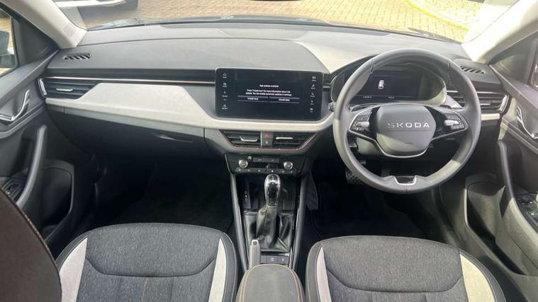 Advanced driver attention and drowsiness monitor, Bluetooth, e-Call (emergency call), Front assist system, PAS, Rear parking sensors, Speed limiter, Tailgate, Traffic sign recognition, Virtual Cockpit - 10.25" digital display, Voice control system, Wireless smartlink, 4 USB C ports, 8 Speakers, 9.2" Skoda navigation display, DAB radio, Auto dimming rear view mirror, Automatic headlamp activation with Coming home and Leaving home feature, Automatic high/low beam, Automatic intermittent wipers, Body colour bumpers, Body colour door mirrors and handles, Chrome moulding around grille, Chrome window frames, Front and rear electric windows, Heated rear window, LED 3rd brake light, LED brake lights, LED daytime running lights, LED front turning lights, LED high beam, LED low beam, Light sensors, Privacy glass, Rear LED fog light, Rear side wing doors, Rear wiper, Tinted windows, 12V socket in luggage compartment, 3 seat bench in 2nd row, Ambient lighting in white/red, Black / Copper armrest stitching, Cargo elements, Chrome inner door handles, Copper hotstamping, Door inserts in accent black, Driver and passenger sun visors with vanity mirror, Dual zone climate control, Front and rear roof lights, Front centre armrest, Front head restraints, Glasses storage in roof liner, Height adjustable driver seat, Height adjustable passenger seat, Ice scraper, Illuminated glove compartment, Inner circulation control with pollen filter, ISOFIX for front passenger seat, Isofix preparation for back seats, Leather gearknob and handbrake lever, Lodge cloth upholstery, Luggage net under rear parcel shelf, Manual lumbar support for front seats, Net package and top tether hooks in boot space, Pearl grey ceiling, Pocket on the back of both front seats, incl. mobile phone pockets, Rear centre armrest, Single front passenger seat, Textile floor mats, Third rear headrest, Ticket holder, Top tether for front passenger seat, Umbrella in driver's door, 3x3 point rear seatbelts, ABS, Child locks, Curtain airbags and front side airbags, Disc brakes, Driver and front passenger airbags, ESP, Hill hold control, Manual leather parking brake, One tone horn, Passenger airbag switch off function, Seatbelt reminder for driver and front passenger, Tyre pressure monitoring system, Anti theft alarm system with interior monitoring, backup horn and towing protection, Anti-theft wheel bolts, Remote central locking with 2 remote folding keys, SAFE function for remote central locking, Decorative inserts,