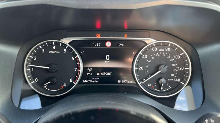 2 front USB-C ports, 7" High definition full colour TFT screen combimeter, Blind spot intervention, Blind spot warning, Drive assist custom mode, Drive modes (sport, normal, eco), Driver drowsiness and attention warning, Electric speed sensitive power steering, Emergency and breakdown call, Emergency lane keep assist, Emergency Stop Signal (ESS), Engine start/stop button, Event data recorder, Idle stop/start system, Intelligent Cruise control (ICC), Intelligent forward collision warning, Intelligent speed assist, Lane departure warning system, Nissan connect 12.3 inch touchscreen infotainment system, Outside temperature sensor, Rear cross traffic alert, Rear parking sensors, Rear view camera, Reversing detection, Wireless Apple CarPlay and wired Android Auto, Limited slip differential, 6 speakers, AM/FM audio system with DAB, Bluetooth audio streaming, Auto rear wiper when reversing, Body colour mirror caps, Body coloured door handles, Bodyside mouldings, Chrome side window finisher, Electric auto folding door mirrors, Electrically adjustable and heated door mirrors with LED turn indicator, Follow me home headlights, High beam assist, Intelligent auto headlights, LED 3rd brake light, LED daytime running lights, LED Headlights, LED rear lights, One touch front and rear electric windows with remote opening and closing, One touch passenger window, Partially body coloured bumpers, Rear roof spoiler, Rear side wing doors, Shark fin antenna, Splash free rain sensing wipers, Three blink turn signal, 3 bench rear seats in 2nd row, 3 rear headrests, 60/40 split folding rear seat bench, Chrome interior door handles, Cloth upholstery, Dark headlining, Dual zone automatic climate control with pollen filter, Front door with bottle holders, Height adjustable front headrests, Leather shift knob, Luggage space lighting, Multifunction steering wheel, Passenger seat back pocket, Rear door bottle holders, Single front passenger seat, TEP steering wheel, Tilt/telescopic adjustable steering wheel, Two rear isofix child seat anchorage points with top tether, White ambient light (Partial area coverage), 3x3 point rear seatbelt pretensioners + load limiters, Autonomous emergency braking, Child locks on rear doors, Curtain and front side, far side airbags, Driver and passenger airbags, Driver, passenger and 2nd row rear seat belt reminder, Electric handbrake with auto hold function, Front seatbelt pretensioners + load limiters, Height adjustable front seatbelts, Hill start assist, intelligent front emergency braking, Rear automatic braking, Tyre pressure monitoring system, Vehicle dynamic control, Engine immobiliser, Intelligent key with walk away lock and approach unlock functions, Remote central door locking with deadlocking, Thatcham alarm, 17" Alloy wheels, Tyre puncture repair kit,