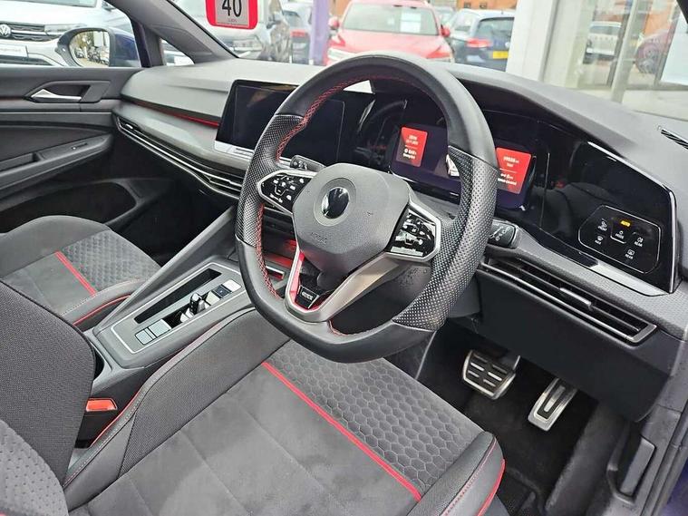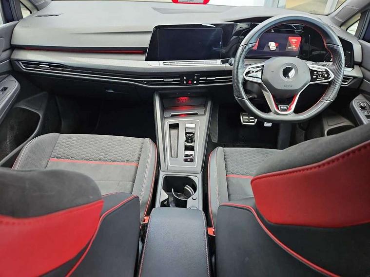 Adaptive cruise control (ACC) with speed limiter and front assist (reacting to vehicles pedestrians and cyclists), Car2X communication, Digital cockpit pro - 10.25" high resolution TFT dash display screen with customizable menus and information, Driver alert system, Driver profile selection, Dynamic road sign display, eCall - Emergency call service for SOS calls to emergency response, Lane assist, Lane change assistant, Mobile phone interface with wireless inductive charging function, Progressive steering, Speedo, rev counter, electronic odometer, trip, service interval display, exterior temperature and fuel gauge, Start/Stop function, Travel assist with emergency side assist with electrically foldable door mirrors, Warning buzzer and light for front seatbelts unfastened, Wireless app connect, Front differential lock, Petrol Particulate Filter, XDS electronic differential lock for improved traction and handling, Premium USB cable in choice of either Apple or Android smartphone compatibility, Advanced high beam control dynamic light assist for LED matrix headlamps, Ambient lighting, exterior illuminated styling elements at the sides, Auto dimming rear view mirror, Automatic headlamp activation with Coming home and Leaving home feature, Body colour bumpers, Body colour door handles, Body colour door mirrors with integrated indicators, Body colour rear roof spoiler, Chrome plated tailpipes (1 either side), Front and rear electric windows, GTI Clubsport styled bumpers, Heat insulating glass windscreen, Heated rear windscreen, High level 3rd brake light, Highway light, Illuminated front grille, IQ.Light - LED Matrix headlights, dynamic headlight control with advanced high beam control matrix dipped main beam + LED DRL + 22 LED lights, LED front fog lights with 5 honeycomb design, LED License plate illumination, LED rear combination lamp inlcuding dynamic turn signal, Performance rear spoiler, Rain sensor, Rear fog light on one side and reversing lights on both sides, Rear tinted glass 65% light absorbing from B pillar backwards, Rear windscreen washer and wiper with interval delay, Remote electrically heated, adjustable and foldable door mirrors, including door mirror puddle lights and reverse activated kerb-view adjustment on pa, Welcome light, 12V socket in front centre console, 12V socket in luggage compartment, 3 rear head restraints, 3 zone climate with controls in the rear, Aluminium gear knob, Ambient lighting - Customisable 30 colour ambient lighting, Black roof lining, Brushed stainless steel pedals, Centre console, Chrome plated surround to electric mirror button, window switch and air vent surrounds, Drivers and front passengers sun visors with vanity mirrors, Front + rear carpet mats, Front centre armrest with storage compartment, Front cupholders x 2, Front reading lights x 2 incorporating LED technology, Front seat lumbar support adjuster, Front sports seats, Glovebox, Height adjustable front seats, Height and reach adjustable steering wheel, Isofix child seat preparation for 2 rear child seats and front passenger seat, Leather wrapped multifunction sports heated steering wheel with paddle shift, Luggage compartment lighting, Removable luggage compartment cover, Split folding backrest with centre armrest and unsplit rear seat bench, Woven fabric storage compartments in front and rear doors, 3 point height adj front seatbelts + pretensioners, 3 rear three point seatbelts, ABS, Driver and front passenger airbag with front passenger airbag deactivation, Drivers and front passengers safety optimised head restraints, Electronic parking brake with auto hold, ESC (Electronic Stability Control), Extended pedestrian protection measures, Front and rear passengers curtain airbag system including front side airbags, Front disc brakes, Rear disc brakes, Two tone horn, Tyre pressure monitoring system, Alarm with interior protection and deactivation via infotainment system, Electronic engine immobiliser, Keyless entry with start/stop button on centre console, Black metal chrome decorative inserts in dash and front door trim panels, Soul dashboard, Tyre mobility kit Includes 12V compressor and tyre sealant,