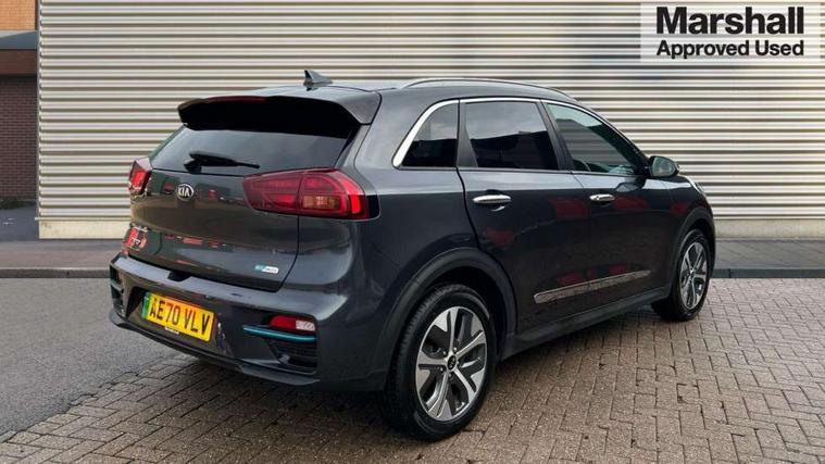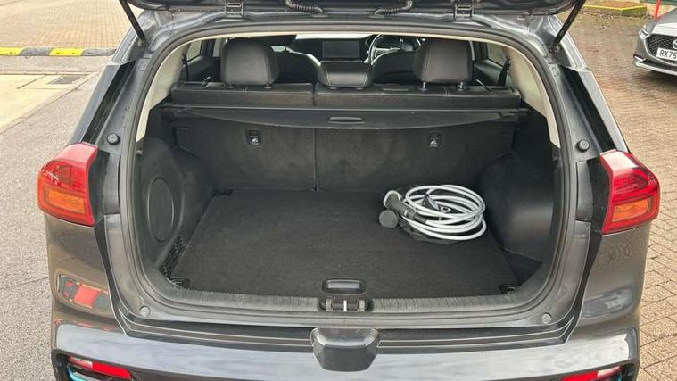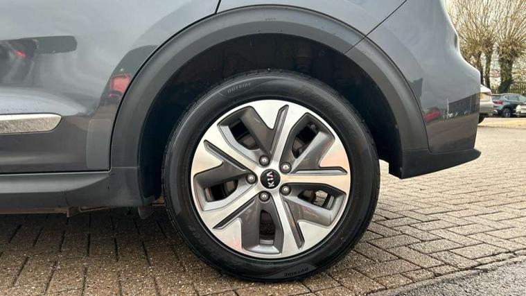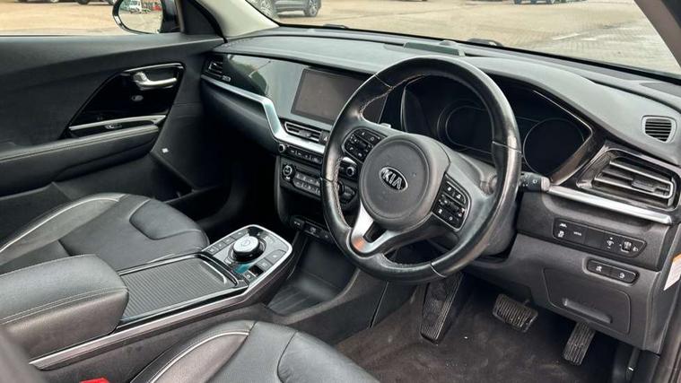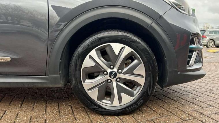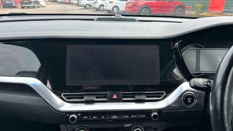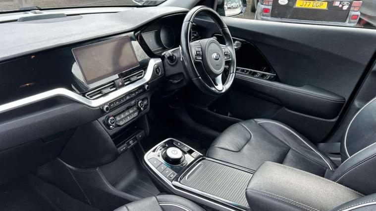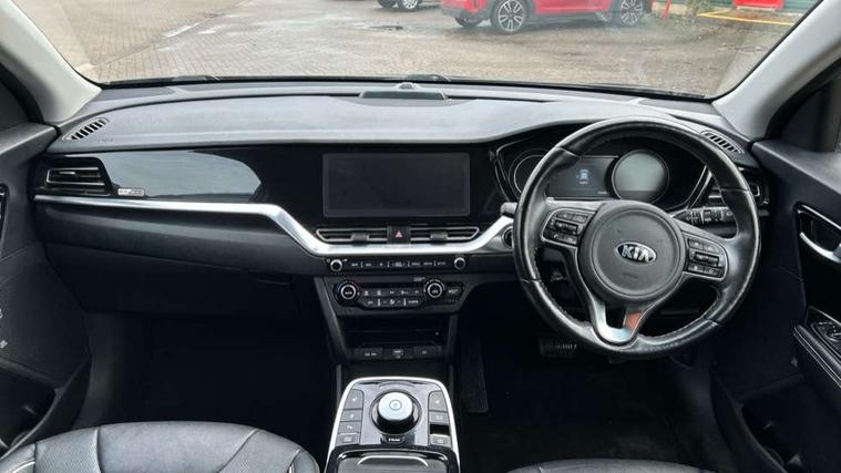 10.25" Touch screen satellite navigation with european mapping and traffic messaging channel, 7" full supervision cluster with TFT colour display, Adaptive smart cruise control function (SCC) with stop and go, Apple car play/Android Auto with voice control, Charging indicator on dashboard, Digital clock, Driver attention warning, Emergency stop signalling system, Forward collision avoidance assist, Front parking sensors, Kia connected services featuring TomTom live, Lane Following Assist (LFA), Lane keep assist, Motor driven power steering, Rear parking sensors, Reversing camera with dynamic guide lines, Speed limiter, Telematics system with UVO connect services, Trip computer with distance/fuel consumption/average speed, Wireless Smartphone charger, 11 kW AC onboard charger, Battery heating system, 'Shark fin' mobile antenna, Bluetooth with music streaming, DAB Radio with MP3, JBL Premium sound system with 8 speakers, external amp, subwoofer and front centre speaker, Steering wheel mounted controls, USB connection located in centre console, USB port, All round electric windows with drivers and front passenger auto up/down function, Auto dimming rear view mirror, Automatic defog system, Automatic headlight control system, Bi LED headlights, Black side sills, Body colour bumpers, Body coloured/high gloss door mirrors, Chrome beltline mouldings, Chrome door handles, Driver's side wide angle mirror, Electrically folding/adjustable/heated door mirrors with LED indicators, Front fog lights, High beam assist, LED daytime running lights, LED rear combination lights, Manual headlight levelling, Matt black radiator grille, Privacy glass - Rear windows and tailgate, Rain sensing front wipers, Rear spoiler, Rear wiper, Roof rails, Solar glass, Welcome and follow-me home light functionality, Wheel arch mouldings, 3 x passenger assist grips, 60/40 split/folding 2nd row of seats, 8 way electric adjustable drivers seat, All-round height adjustable headrests, Ambient lighting, Centre console storage box, Centre rool lamp, Door armrest in leather, Driver's electric lumbar adjustment, Driver/passenger sunvisors with illuminated vanity mirrors, Front and rear door storage, Front seatback pocket, Front/rear centre armrests, Heat pump, Heated front seats, Heated steering wheel, High gloss black lower console trim, High gloss black steering wheel trim, Interior door lock/unlock function, ISOFIX Child seat top tethers and anchor fixings, Leather trimmed steering wheel, Leather upholstery, Luggage area lamp, Luggage board, Luggage compartment cover, Luggage net hooks, Overhead console lamp with sunglasses case, Passenger seat height adjuster, Rear armrests with cupholder, Satin finish inner door handles, Shift by wire SBW, Single zone automatic air conditioning, Stainless Steel Scuff Plates, Tilt/telescopic adjustable steering wheel, Under floor storage box, Ventiliation ducts to rear compartment, 3 point seatbelts on all seats, ABS, Automatic unlocking of doors in case of impact, Drivers knee airbag, Electric parking brake with auto hold function, Electronic stability control, Front passenger airbag cut-off switch, Height adjustable front seatbelts, Hill start assist control (HAC), Regenerative braking level controlled by paddle shift mounted on steering wheel, Traction control, Twin curtain airbags with roll over sensor, Twin front and side airbags, Tyre pressure monitoring system, Alarm system and engine immobiliser, Deadlocks, Engine Start/Stop Button with Smart Entry System, Locking wheel nuts, Speed sensitive auto door locking, Visible vehicle identification number, High gloss black centre fascia, High gloss black door inserts, 17" alloy wheels, Tyre mobility kit,