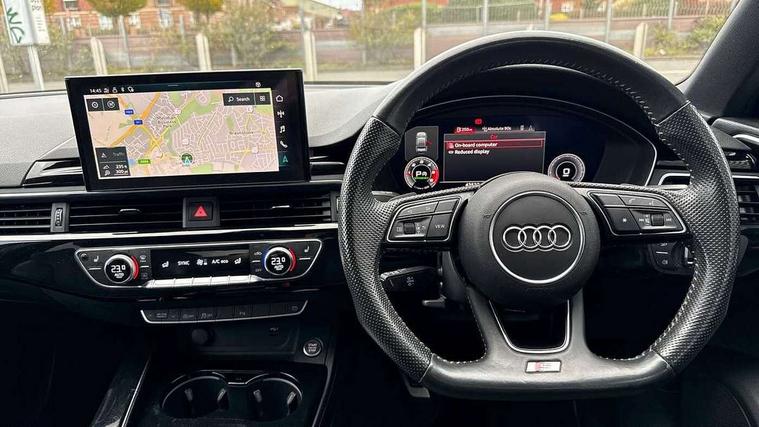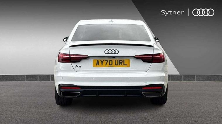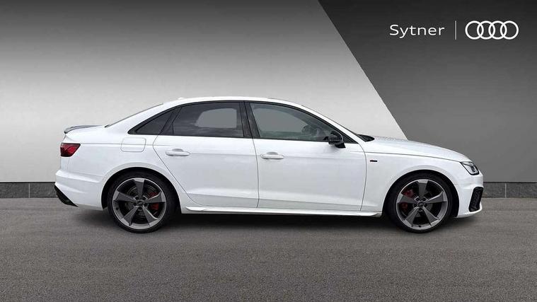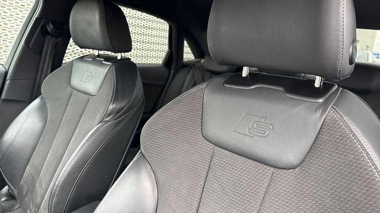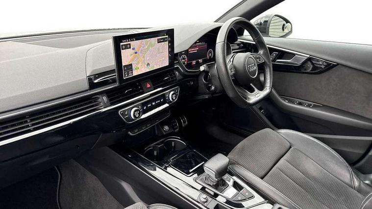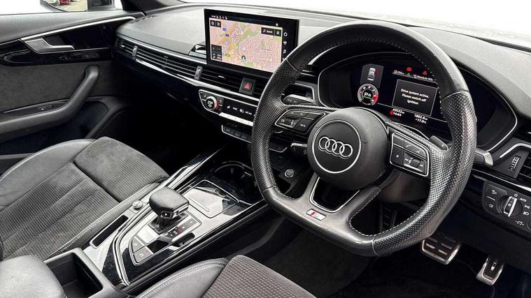 Audi connect safety and service (e-call), Audi drive select, Audi parking system plus with front and rear sensors, Audi smartphone interface, Audi virtual cockpit, Automatic start-stop system with coasting functionality and efficiency programme, Bluetooth interface, Electric boot lid release, Electromechanical power steering, MMI Navigation plus with MMI touch includes 10.1" high resolution colour MMI display, 3D map, Rear view camera, Voice control system, Sports suspension lowered by 23mm, 2 USB charging ports, 8 passive loudspeakers, DAB digital radio reception, Auto dimming rear view mirror, Body colour door handles, Body colour front spoiler lip, Body colour side sill trim, Electrically folding auto dimming/adjustable/heated door mirrors with LED side indicators and kerb view function for passenger side, Grained matt black side air inlets with matt aluminium silver inlay, High beam assistant, LED headlights with LED rear lights + dynamic rear indicators + headlight adjustment and high beam, turning light + LED daytime running lights, Matt aluminium silver tailpipe trim, Privacy glass, Rain and light sensors, S Line badges on the front wings, S line front and rear bumpers with side skirts, S Line rear diffuser in matt titanium black with trim strip in matt aluminium silver, Windscreen with acoustic glazing, 4 way electric lumbar support for driver and front passenger, 40/20/40 split folding 3 rear seat bench in 3 parts with rear centre armrest, Black cloth headlining, Black perforated leather gearknob, Contrast stitching on seats, steering wheel and gear lever gaiter, Deluxe 3 zone electronic climate control, Door sill trims with aluminium inlay, Front and rear head restraints, Front centre armrest, Heated front seats, Illuminated door sill trims with S logo, ISOFIX child seat mounting and top tether, Manual seat adjustment, Stainless steel pedals and foot rest, LED Interior light pack - A4/S4, Titanium black styling pack - A4 Saloon, 3 rear seatbelts, 6 airbags - Driver, front passenger, curtain and side windows, Electronic Stabilisation Control (ESC) including ABS, ASR and EDL, Hill hold assist, Multi collision brake assist, Pop-up bonnet for pedestrian protection, Pre sense city, Seatbelt monitoring, Warning triangle and first aid kit, Anti theft alarm, Anti theft wheel bolts, Keyless Go, Piano black finish inlay, 19" 5 arm rotor design alloy wheels titanium matt look, Tool kit, Tyre repair kit,