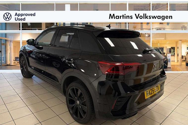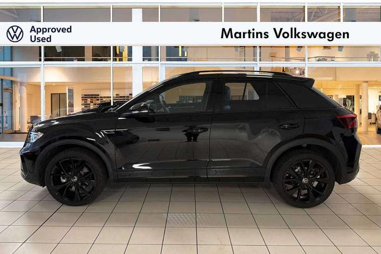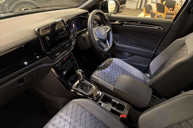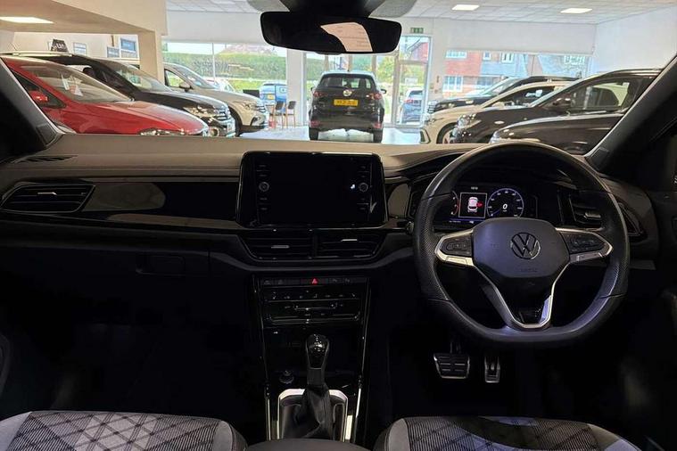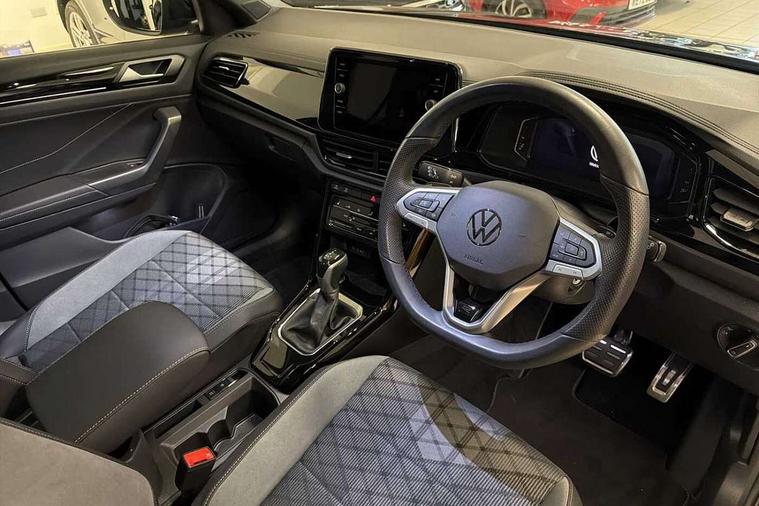 10.25" Digital cockpit pro, Advanced driver attention and drowsiness monitor, Emergency call service, Lane keeping system Lane Assist, Mobile phone interface, Modified key software - reduce switch off time for key status change to Long no motion, Online services, Park assist including front and rear parking sensors, Power assisted speed sensitive steering, Service interval indicator, Tailgate/trunk lid release from outside, Think blue trainer driver tips and journey analysis, Warning sound and light for front seatbelts unfastened, Wireless app connect, Battery regeneration during braking, Rear shock absorption chassis with increased ride height, Start/stop function with battery regeneration, DAB Digital radio, Diversity antenna for FM reception, Front and rear 6 speakers, Music playback - MP3, WMA and AAC files, Premium USB cable in choice of either Apple or Android smartphone compatibility, SD card slot, Simultaneous pairing of 2 compatible mobile devices, Title and cover art display, We Connect and We Connect Plus functionality, Auto dimming interior rear view mirror, Automatic hazard lights activation under emergency braking, Automatic headlight control with LED separate daytime running lights with coming/leaving home function, Dynamic cornering light, Electrically adjustable and heated door mirrors, Extended roof spoiler, Exterior mirrors aspherical on driver side, convex on front passenger side, External USB type C socket and charging sockets, Front windscreen wiper with intermittent wipe and 4 position delay, Heated rear window, Illuminated front grille, IQ LED matrix headlights, LED 3rd brake light, LED rear number plate lights, LED rear tail lights with dynamic turn signal, Light mode for poor weather, rain, fog or snow, Power windows with comfort operation and circuit breaker, R-Line design body coloured bumpers, Rain sensor, Rear exhaust tailpipe, Rear fog light on one side and reversing lights on both sides, Rear side wing doors, Rear wash/wipe with intermittent wipe setting, Remote electrically foldable door mirrors, puddle lights and reverse activated passenger's door mirror, 12V power socket in centre console, 3 rear head restraints, 3 seat bench in 2nd row, 4 load lashing points in luggage compartment, Air care climatronic air conditoning system with active combination filter and 2-zone temperature control, Artvelours cloth upholstery, Black roof lining, Chrome plated radiator grille inserts, air vent surrounds and light switch surrounds, Door and side trim panel with leatherette insert, Drawer under drivers seat, Driver seat height adjust, Driver's seat lumbar support, Front + rear carpet mats, Front centre armrest, Front comfort sports seats, Front cupholders x 2, Front footwell illumination, Front reading light, Front scuff plates with R Line logo, Front seat back storage pockets, Glove compartment door with light, Instrument lighting, white adjustable panel illumination, Interior ambient lighting and surround lighting, Interior light delay, Isofix child seat preparation, Leather gearshift handle, Leather wrapped multifunction steering wheel with paddle shift, Load-through provision with cup holder when folded down ('Unsplit rear seat bench, split folding backrest, with centre armrest), Luggage compartment lighting, Non-folding front passenger seat backrest, Passenger seat height adjuster, Passenger seat lumbar support, Single front passenger seat, Stainless steel pedals, Storage compartment in left and right luggage area, Storage compartment in rear doors, Storage compartments in driver and front passenger doors, Sunvisors with illuminated vanity mirrors, Variable boot floor, height adjustable and removable, Winter pack without heated windscreen washer jets - T-Roc, 3 point height adj front seatbelts + pretensioners, 3 point seatbelts in outer rear with ECE label, ABS, Child locks on rear doors, City emergency braking and pedestrian monitoring, Driver and front passenger airbag with front passenger airbag deactivation, Driver and front passenger safety-optimised head restraints, Drivers seatbelt reminder, Electronic parking brake, Electronic Stability Control (ESC) inc EDL (Electronic Differential Lock) and ASR (Traction Control), Front and rear passengers curtain airbag system including front side airbags, Front disc brakes, Hill start assist, Predictive pedestrian protection, Rear disc brakes, Two tone horn, Tyre pressure loss indicator, Volkswagen roadside assistance, Tool kit, Trims for alloy wheels, Tyre mobility kit including compressor and sealing foam,