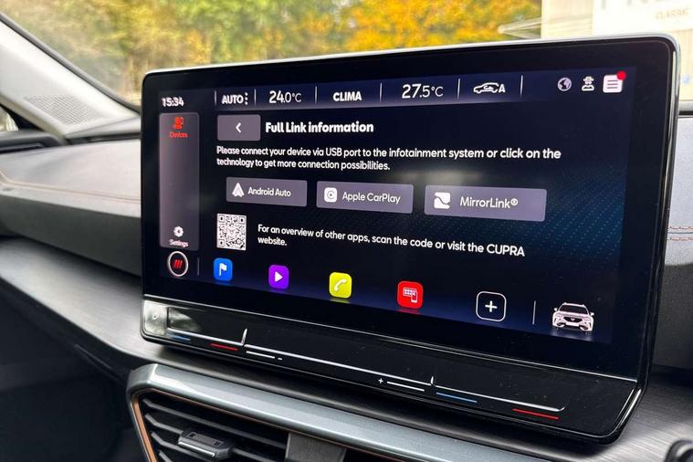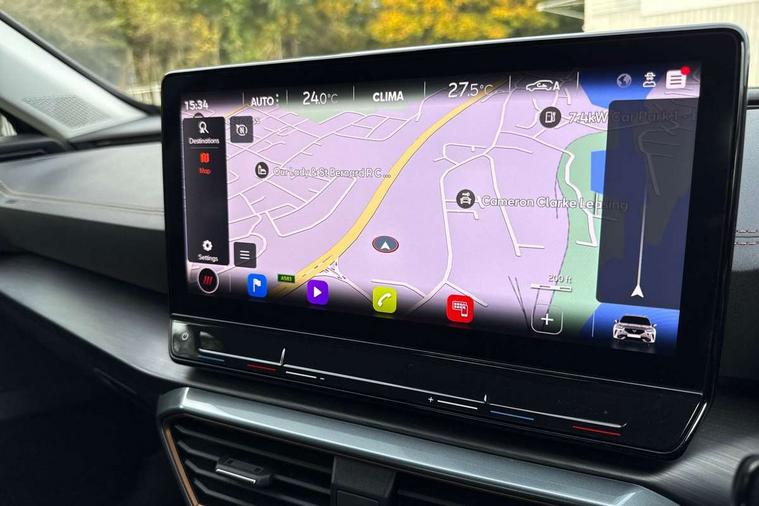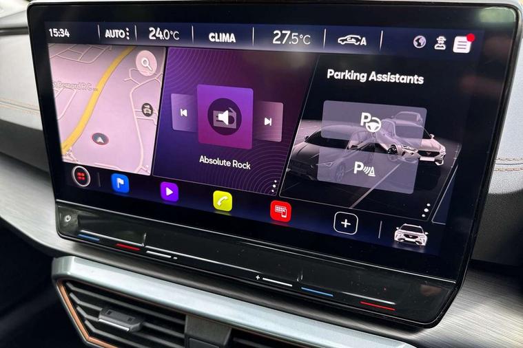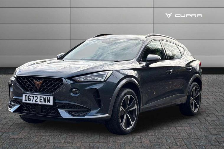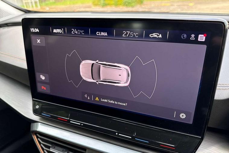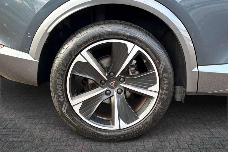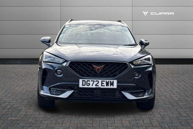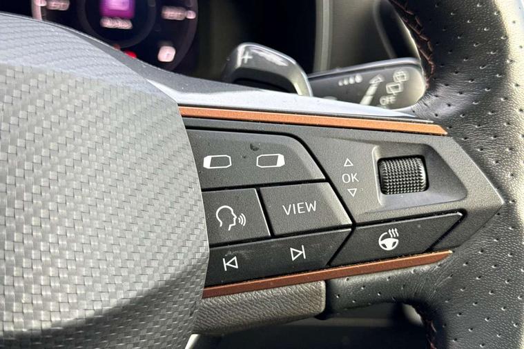 Digital cockpit and configurable dashboard, Driver alert system, Driving profile selection, E-call, Forward collision warning with automatic braking, Lane assist, Navigation system with 12'' Touchscreen Display, PAS, Predictive adaptive cruise control with speed limiter, Rear parking sensors, RPM, trip computer, outside temp gauge, instrument light brightness, low fuel warning light, lights on reminder, gearshift indicator, Service interval indicator, Start/stop system with regenerative braking, Voice control system, Wireless apple carplay, Wireless phone charger, Electronic locking differential and dynamic traction support, Standard suspension, 2 front and 2 rear USB type C sockets, Auxiliary input socket, DAB radio, Auto dimming rear view mirror, Body colour door handles, Body coloured bumpers, Dark grey wing mirror, Daytime running light with automatic headlight control and coming home feature, Dynamic headlight range control, Electric front/rear windows, Electrically adjustable, heated and folding door mirrors, Front fog lamps with cornering function, Gloss black roof rails and window surrounds, LED Headlights, LED Taillights with dynamic indicator, Rain sensing wipers, Rear diffuser with black simulated exhaust pipes, Rear side wing doors, Rear wash/wipe, Third brake light, Tinted rear windows, Welcome lights, 12v power supply in centre console, 12V socket, 12v socket in loadspace, 2 front and 2 rear reading lights, 230V socket, 3 seat bench in 2nd row, 60/40 split rear bench seat with armrest and mechanical seat release, Dust/pollen filter, Front and rear head restraints, Front centre armrest, Height/reach adjust steering wheel, Illuminated interior front door sills, Illuminated sunvisor with mirror, Interior ambient lighting, Isofix, Leather multi function heated steering wheel with gear shift paddles, Luggage tie-down hooks, Manually adjustable height and lumbar support for front seats, PVC/Cloth upholstery with copper stitching + Sport seats, Single front passenger seat, Three zone climate control with control panel in rear, Variable luggage/load compartment floor, Safety and driving pack (M) - Formentor, 3 point seatbelts on all rear seats, ABS, Brake control system - ESC and brake booster, Child proof door locks, Driver and front passenger airbags with front passenger airbag de-activation, Electronic parking brake, Front and rear disc brakes, Front side curtain airbags, Hill hold control, Seat belt reminder for front and rear seats, Tyre pressure monitoring system, Anti theft alarm system, Keyless entry and start system (KESSY), Locking wheel bolts, Copper and aluminium interior detailing,