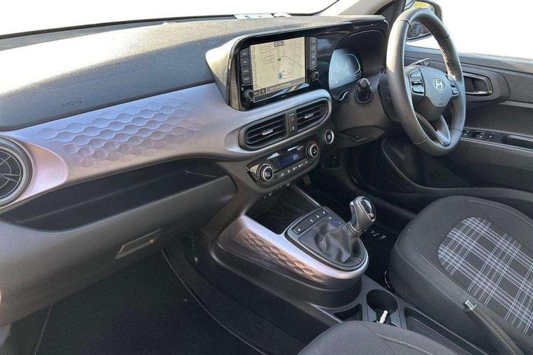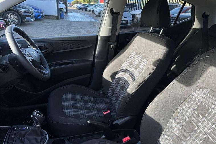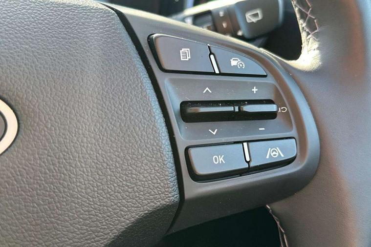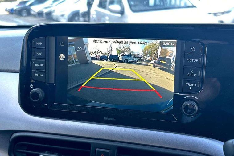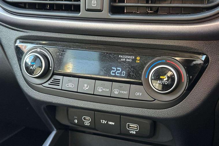 Apple car play/Android Auto, Bluelink mobile remote connectivity, Bluetooth connectivity with voice recognition, Cruise control, Driver attention alert system, eCall emergency call system, Forward Collision-Avoidance Assist (FCA) - Pedestrian/Cyclist, Front USB-C charging and USB-A data, Full-width 4.2" LCD instrument cluster, Intelligent speed limit assist, Lane departure warning system with lane keep assist - LKAS, Lane follow assist, PAS, Rear parking sensors, Rear view camera with guidelines, Roadside assistance, Start/Stop function, Tailgate, Trip computer, Wireless charging pad, 2 front/2 rear speakers, Rear USB-C device charger, Steering wheel audio, phone and cruise controls, 1 speed non intermittent rear windscreen wiper, Black finish on B pillars, Body colour door handles, Body coloured bumpers, Body coloured door mirrors, Electric folding door mirrors, Electric front windows, Electric rear windows, Electrically adjustable and heated door mirrors, Flat metal emblem, Front fog lights, Front grille in glossy black, Front intermittent wipers, Halogen bi-function headlights, Headlights inner with Black Blade design, Heated rear window, High beam assist, Indicator light on door mirrors, LED DRLs diamond mesh design, Privacy glass - Rear windows and tailgate, Rear roof spoiler with integrated LED brake light, Rear side wing doors, 12v power outlet - front, 3 seat bench in 2nd row, 60/40 split folding flat to floor rear seats, Air conditioning, Auto light control, Bottle holders in front/rear doors + front centre console, Cabin and luggage compartment interior lighting, Cloth upholstery, Driver + passenger vanity mirrors, Driver's seat height adjustment, Driver/passenger sunvisors with ticket holders, Floor mats, Front door pockets, Front Head Restraints - Vertical and Horizontal Adjustment, Front LED blue mood lighting, Glove compartment, Heated front seats, Heated steering wheel, Height adjustable steering column, Isofix child seat preparation, Leather multifunction steering wheel, Rear door pockets, Single front passenger seat, Vertical adjustment rear head restraints, 3x3 point rear seatbelts, Airbags - front, front side and curtain airbags, Anti-lock brake system (ABS), Autonomous emergency braking (AEB) with forward collision warning system, Brake assist function, Childproof rear door locks, Electronic stability control, Front and rear seatbelt reminder, Front seatbelt pretensioners, Hill start assist control (HAC), Passenger airbag deactivate switch, Traction control, Tyre pressure monitoring system, Immobiliser, Perimeter alarm, Rear occupant alert, Remote central locking, Second remote key, Smart key with motion sensor, Speed sensitive auto door locking, 16" alloy wheels, Tyre repair kit,