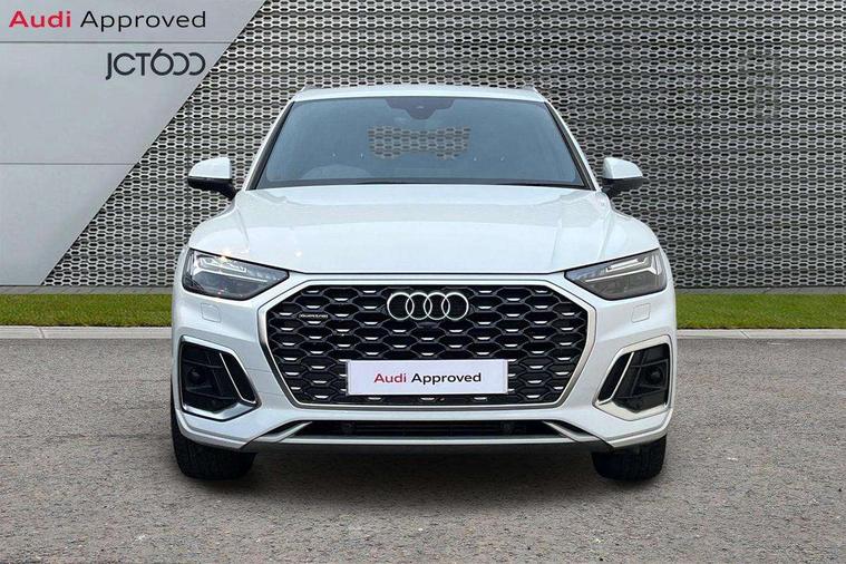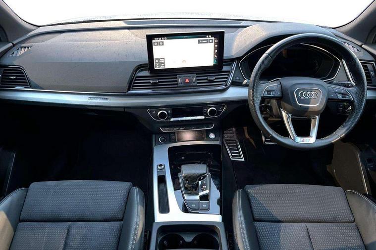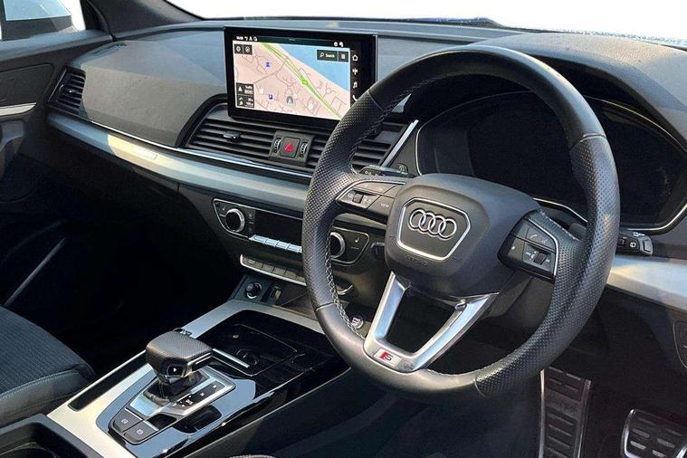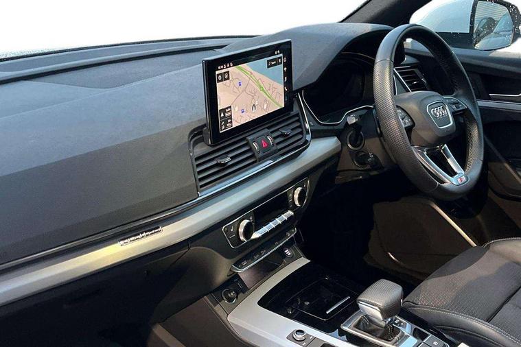 Audi connect safety and service (e-call), Audi connect with Amazon Alexa Integration, Audi drive select, Audi virtual cockpit plus with 12.3" screen and three different layout designs, Audi wireless smartphone interface, Automatic start-stop system with coasting functionality and efficiency programme, Bluetooth interface, Electro - mechanical power assisted steering, MMI navigation plus with 10.1" touch screen, Power tailgate, Reversing camera, Service interval indicator, Voice control system with Audi hotword activation "Hey Audi", Quattro on demand, S line sports suspension, DAB Digital radio, Acoustic windscreen, Aluminium roof rails, Audi matrix LED headlights with dynamic front and rear indicators, Auto dimming door mirrors, Auto dimming rear view mirror, Automatic headlight adjustment, Automatic headlights and windscreen wipers, Body colour door mirrors, Body colour rear diffuser with matt aluminium silver surrounds, Body colour underbody protection, Chrome plated exhaust trims, Daytime running lights, Door sills in Selenite silver, Electric adjustable/heated/folding door mirrors, Front air inlet surrounds in aluminium, Front and rear electric windows, Front radiator grille in honeycomb design, Headlight washers, High level LED brake light, Lower bumpers painted in contrast Manhattan grey, Rear chrome trim strip below lights, Rear privacy glass and rear side windows, Rear side wing doors, Rear wiper, Roof bars, S Line badges on the front wings, S Line front and rear bumpers, S Line rear spoiler, S Line side skirts, 2 x USB charging port with aux input socket, 3 rear headrests, 40:20:40 split folding 3 rear bench seat in 2nd row with rear centre armrest, Black cloth headlining, Comfort front centre armrest, Contrast stitching on seats, steering wheel and gear lever gaiter, Deluxe 3 zone electronic climate control, Front head restraints, Front/rear floor mats, Gear lever in black leather, Heated front seats, Height/reach adjustable steering column, Illuminated door sill trims with S logo, ISOFIX child seat mounting and top tether, Manual seat adjustment with 4-way electric lumbar support, Removable luggage compartment floor, Single front passenger seat, Stainless steel pedals, Sunvisors with vanity mirrors, Trunk roller cover, High gloss pack - Q5, LED interior light pack - Q5, 3 point seatbelts on all seats, 6 airbags - Driver, front passenger, curtain and side airbags, Electrically operated child locks on rear doors, Electromechanical parking brake, Electronic stabilisation control including ABS, ASR and EDL, Front passenger airbag deactivation, Hill descent control, Hill hold assist, Multi collision brake assist, Pop-up bonnet for pedestrian protection, Pre sense city, Seat belt force limiter, Seatbelt monitoring, Tyre pressure warning, Warning triangle and first aid kit, Anti theft alarm, Anti-theft wheel bolts, Keyless Go access/ignition system, Remote central locking, Matt brushed aluminium inlays,