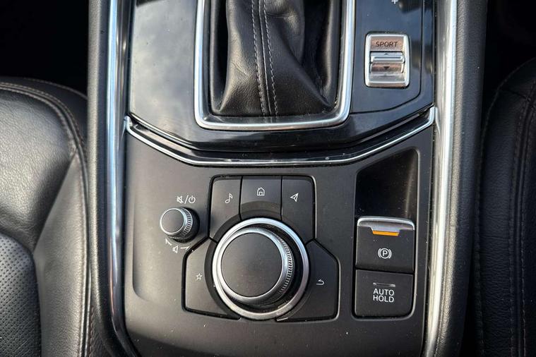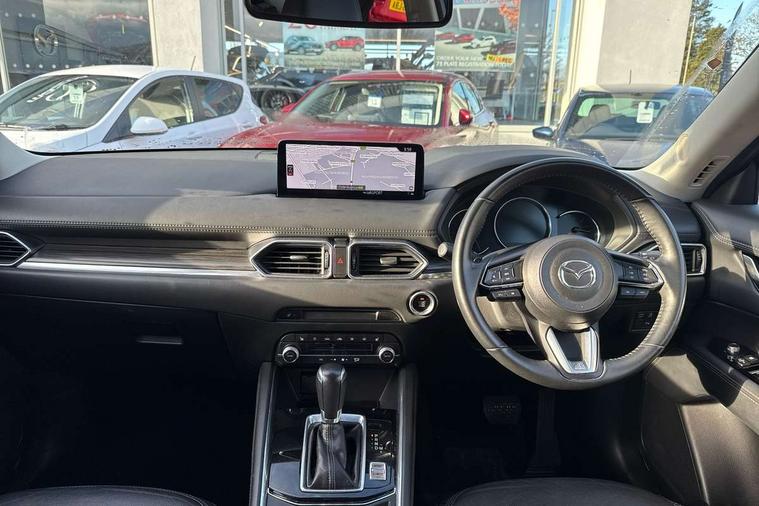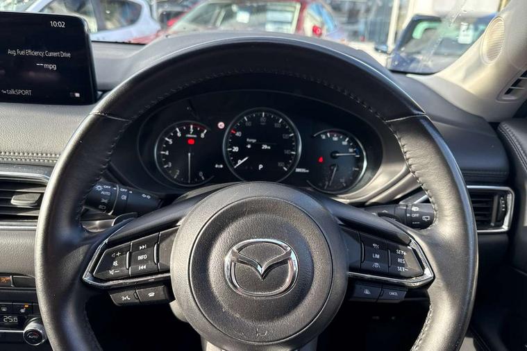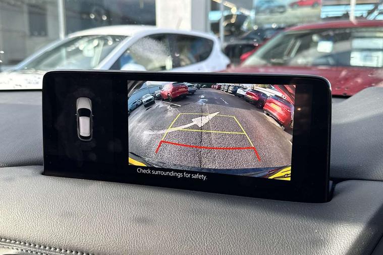 10.25" display with Mazda Connect infotainment, 7" colour TFT display, Advanced blind spot monitoring, Apple car play/Android Auto, Bluetooth connectivity with voice control, Collision prevention assist, Connected services, Cruising Traffic Support, Drive mode selector, Electric power steering, Emergency stop signalling system, Engine start/stop button, Forward collision warning, Front and rear parking sensors, Integrated navigation system, Intelligent speed assist, Lane departure warning system, Lane keep assist, Radar cruise control with Stop and Go, Reversing camera, Service indicator, Traffic sign recognition (TSR), Trip computer, Windscreen projected colour active driving display (HUD) with memory, i-stop, 2 USB sockets in rear, 2x USB sockets in front, 6 speakers, AM/FM radio, Bluetooth audio streaming, DAB Digital radio, Multimedia Commander including separate volume dial, Steering wheel mounted audio controls, Adaptive front lighting system, Auto dimming rear view mirror, Automatic headlights, Black inlay dashboard panel, Body colour door mirrors, Body colour roof spoiler, Body coloured front and rear black lower bumper mouldings, Bright finish signature wing, Coming/leaving home lighting function, Door mirror integrated indicators, Dual chrome tailpipes, Dusk sensitive headlamps, Electric front/rear windows with one touch auto up/down, Front grille in gloss black finish, Gloss black B and C pillars garnish, High beam assist, Intermittent rear wash/wipe, LED auto levelling, LED daytime running lights, LED front fog lights, LED Headlights, LED third brake light, Power folding and heated door mirrors, Power tilt/slide sunroof, Privacy glass (rear side windows only), Rain sensing front wipers, Rear side wing doors, Satin black side mouldings, Scuff plates, Shark fin antenna, Signature LED rear combination lights, Vinyl with wood grain metal inlay door trim panel, Windscreen wiper de-icer, 12v electrical power outlet, 3 seat bench in 2nd row, 3 stage heated front seats, 40:20:40 Karakuri fold-flat seat system, 6 way electric adjustable passenger seat, 8 way electric driver seat with lumbar support + memory, Cargo room flat floor board with waterproof undertray, Driver seat power slide, recline and height adjustment, Driver, Front passenger and two rear grab handles with coat hooks, Driver/passenger front seatback pockets, Driver/passenger sunvisors + illuminated vanity mirrors (drivers with ticket holder), Dual zone climate control, Folding centre armrest with 2 cup holders, Front and rear door pockets, Front centre storage with two cupholders, Front passenger seat power slide, recline and height adjustment, Heated steering wheel, Humidity sensor, Illuminated glovebox, Interior dome light with integral spotlight, ISOFIX child seat anchorage points attached on outer rear seats, Karakuri tonneau cover, Leather upholstery, Leather wrapped steering wheel and gear knob, Light roof lining, Luggage compartment LED lighting, Luggage compartment power outlet, Paddle shifts, Rear air vents, Rear headrests, Rear seat recline, Roof mounted sunglasses holder, Single front passenger seat, Three height adjustable head restraints, Tilt/height adjustable steering wheel, White interior LED illumination lighting, 3 point front seatbelts with pre-tensioners, 3 rear 3 point seatbelts, ABS, Advanced Smart City Brake Support - SCBS, Child locks on rear doors, Driver and front passenger side airbags, DSTC-Dynamic Stability and Traction Control, Dual front airbags, Electronic brake force distribution, Electronic parking brake with auto hold, ESP, Front and rear curtain airbags, Front passenger airbag deactivation, G-Vectoring control, Hill hold assist, Seatbelt reminder front and rear, Single stage passenger airbags, Smart brake support with forward obstruction warning, Tyre pressure monitoring system, Automatic door locking when moving off, Deadlock, Immobiliser, Power door locks, Remote central locking, Smart keyless entry, Thatcham Cat.1 alarm, 19" diamond cut black alloy wheels, Tyre repair kit,