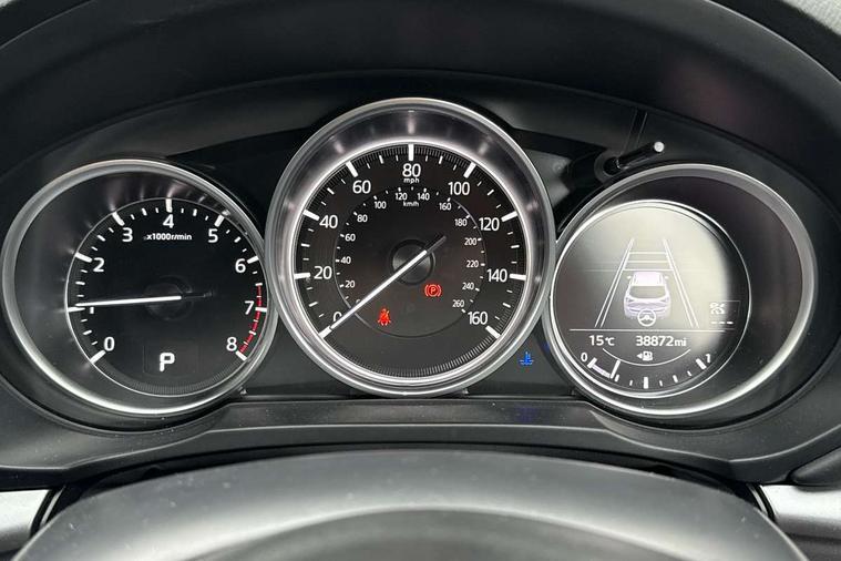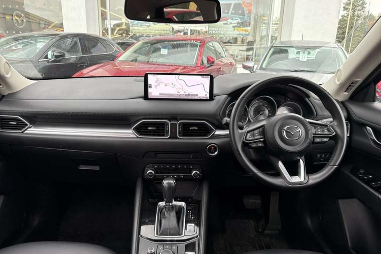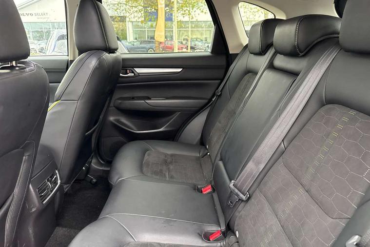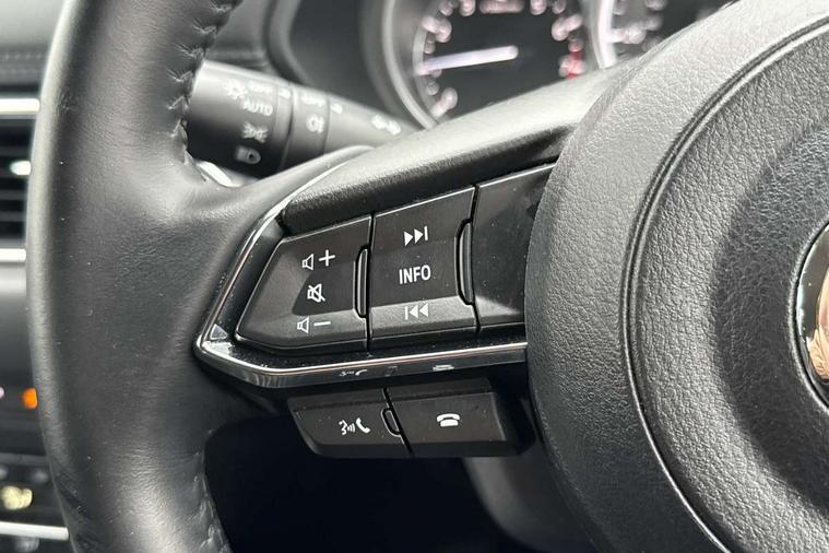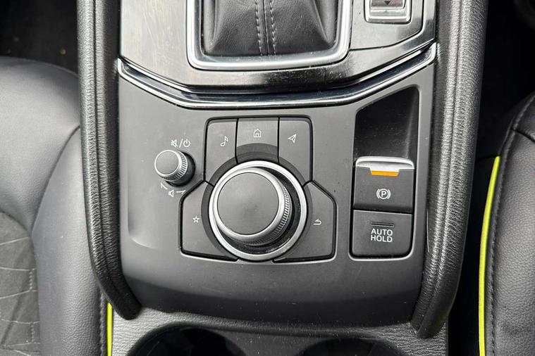 10.25" display with Mazda Connect infotainment, Advanced blind spot monitoring, Apple car play/Android Auto, Bluetooth connectivity with voice control, Collision prevention assist, Connected services, Cruising Traffic Support, Drive mode selector, Electric power steering, Emergency stop signalling system, Engine start/stop button, Forward collision warning, Front and rear parking sensors, High meter TFT display, Integrated navigation system, Intelligent speed assist, Lane departure warning system, Lane keep assist, Radar cruise control with Stop and Go, Service indicator, Trip computer, i-stop, 2 USB sockets in rear, 2x USB sockets in front, 6 speakers, AM/FM radio, Bluetooth audio streaming, DAB Digital radio, Multimedia Commander including separate volume dial, Steering wheel mounted audio controls, Adaptive front lighting system, Auto dimming rear view mirror, Automatic headlights, Black mirror caps, Body colour roof spoiler, Body coloured front and rear black lower bumper mouldings, Bright finish signature wing, Coming/leaving home lighting function, Door mirror integrated indicators, Dual chrome tailpipes, Dusk sensitive headlamps, Electric front/rear windows with one touch auto up/down, Front and rear silver under garnish and side skirt, Front and rear silver under guard and side garnish, Front grille in material black finish, High beam assist, Intermittent rear wash/wipe, LED auto levelling, LED daytime running lights, LED front fog lights, LED Headlights, LED third brake light, Lime green air vent louvre inlay dashboard panel, Lime green front grille accent color, Louver bezel inner lime green accent, Power folding and heated door mirrors, Privacy glass (rear side windows only), Rain sensing front wipers, Rear side wing doors, Satin black B and C pillars, Satin black side mouldings, Scuff plates, Shark fin antenna, Signature LED rear combination lights, Vinyl with lime green door trim panel, 12v electrical power outlet, 3 seat bench in 2nd row, 3 stage heated front seats, 40:20:40 Karakuri fold-flat seat system, 6 way power adjustable driver seat, Driver seat lumbar adjustment, Driver seat power slide, recline and height adjustment, Driver, Front passenger and two rear grab handles with coat hooks, Driver/passenger front seatback pockets, Driver/passenger sunvisors + illuminated vanity mirrors (drivers with ticket holder), Dual zone climate control, Folding centre armrest with 2 cup holders, Front and rear door pockets, Front centre storage with two cupholders, Front passenger seat manual slide, recline and height adjust, Height adjustable passenger seat, Humidity sensor, Illuminated glovebox, Interior dome light with integral spotlight, ISOFIX child seat anchorage points attached on outer rear seats, Karakuri tonneau cover, Leather wrapped steering wheel and gear knob, Leatherette door trim, Leatherette/suede upholstery, Light roof lining, Luggage compartment LED lighting, Luggage compartment power outlet, Rear air vents, Rear headrests, Rear seat recline, Reversible waterproof cargo board, Roof mounted sunglasses holder, Single front passenger seat, Three height adjustable head restraints, Tilt/height adjustable steering wheel, White interior LED illumination lighting, 3 point front seatbelts with pre-tensioners, 3 rear 3 point seatbelts, ABS, Advanced Smart City Brake Support - SCBS, Child locks on rear doors, Driver and front passenger side airbags, DSTC-Dynamic Stability and Traction Control, Dual front airbags, Electronic brake force distribution, Electronic parking brake with auto hold, ESP, Front and rear curtain airbags, Front passenger airbag deactivation, G-Vectoring control, Hill hold assist, Seatbelt reminder front and rear, Single stage passenger airbags, Smart brake support with forward obstruction warning, Tyre pressure monitoring system, Automatic door locking when moving off, Deadlock, Immobiliser, Power door locks, Remote central locking, Thatcham Cat.1 alarm, 19" diamond cut black alloy wheels, Tyre repair kit,