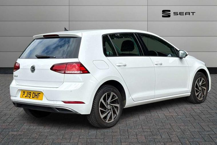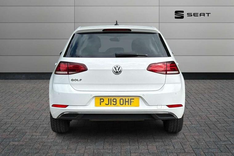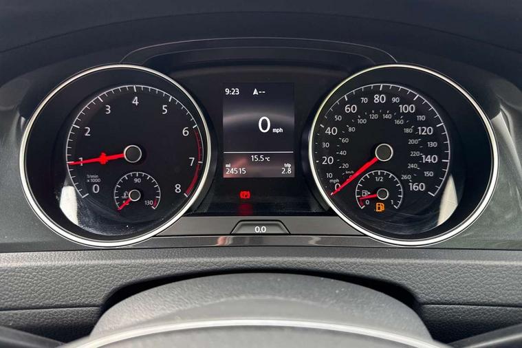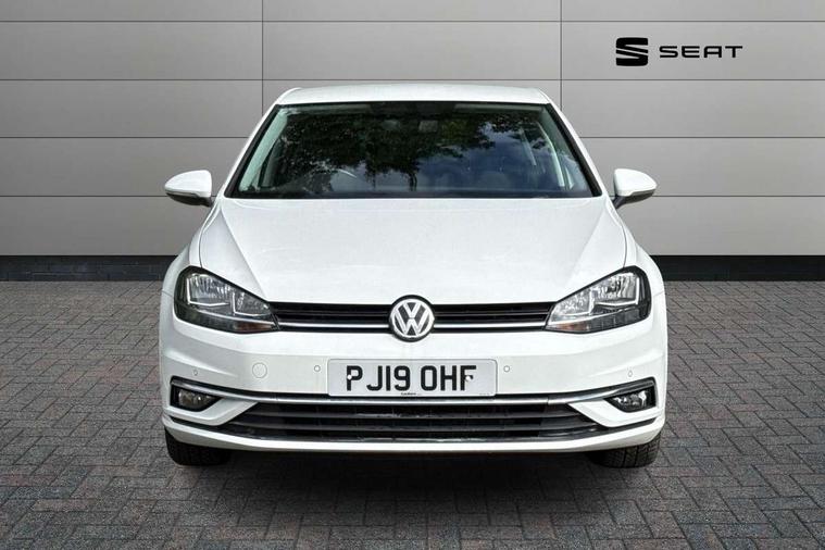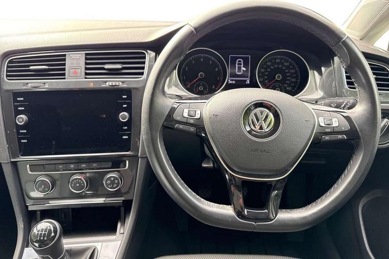 'Lights On' Reminder warning buzzer, ACC - Adaptive cruise control with front assist, forward collision warning, distance monitoring, city emergency brake and speed limiter, Bluetooth telephone and audio connection for compatible devices, Brake pad wear indicator warning light, Driver alert system, Driver profile selection, Driving Mode Selection with four preset modes - Eco, normal, sport or individual modes, Instrument cluster in white, Multifunction computer with visual gear change recommendation for fuel consumption, Power assisted speed sensitive electro-mechanical steering, Push tank flap, Speed limit display, Speedo, rev counter, electronic odometer, trip, service interval display, exterior temperature and fuel gauge, Stop/start system, Warning buzzer and light for front seatbelts unfastened, Battery regeneration during braking, XDS electronic differential lock, Composition media system, DAB Digital radio receiver, MP3/WMA compatability, Multi device interface (MDI) with USB connection, Personalisation 1.1 profile for media, Premium USB cable in choice of either Apple or Android smartphone compatibility, SD card slot, SMS Functionality, USB and SD card connectivity, Black front air intake and radiator grille with chrome insert, Black rear diffuser, Body colour bumpers, Body colour door handles, Body colour door mirrors with integrated indicators, Dusk sensor + automatic driving lights, Electric front windows, Electric rear windows, Electrically adjustable and heated door mirrors, Fully galvanised body, Heated rear windscreen, Hidden exhaust pipe, High level 3rd brake light incorporating LED Technology, LED daytime running lights, LED front fog lights with static cornering light function, Rear fog lamp, Rear tinted glass 65% light absorbing from B pillar backwards, Rear window aerial, Rear window wash/wipe with intermittent wipe, Reflectors in all doors, Tailgate with integrated rear roof spoiler, Windscreen wipers/ intermittent wipe + 4 position delay, 12V socket in luggage compartment, 3 rear headrests, 4 load lashing points in luggage compartment, 60/40 split folding rear seat backrest, Auto fold down lever in rear seat backrest, Bag hook in luggage compartment x 2, Cooled glovebox, Cupholder cover, Dust/pollen filter, Front and rear reading lights incorporating LED technology, Front centre armrest with storage compartment and two rear air vents, Front seat back storage pockets, Grab handles front x 2, rear x 2 with integrated coat hooks, Height and reach adjustable steering wheel, Illuminated vanity mirrors, Instrument lighting white adjustable panel illumination, Interior light delay, Isofix preparation for 2 rear child seats, Load through provision with rear centre armrest and cupholders x2, Luggage compartment lighting, Overhead storage box, Passenger underseat drawer, Pearl grey headlining, Storage box in luggage compartment, Storage compartment in roof console with cover, Storage compartments in centre console, Storage compartments in front doors, Storage compartments in rear doors, Stowable luggage compartment cover, Sun visors, Variable boot floor, height adjustable and removable, Convenience Pack - Golf, Light and Sight pack - Golf, Mirror pack - Golf, 3 rear three point seatbelts, Airbags - Driver's and front passenger's, curtain airbag, Driver's knee, front side impact and passenger's airbag deactivation switch, Anti-lock Braking System (ABS) with Hydraulic Brake Assist (HBA), Automatic post collision braking system, Child locks on rear doors, Driver/Passenger optimised head restraints, Electronic parking brake with auto hold, Electronic stability control (ESC) including Electronic differential lock (EDL) and ASR (Traction control) with deactivation via infotainment system, Pre crash preventive occupant protection, Three point height adjustable front seatbelts with tensioners, Tyre pressure loss indicator, Alarm with interior protection and deactivation via infotainment system, Electronic engine immobiliser, Remote central locking with 2 remote folding keys, Brushed dark silver decorative inserts in dash and door panels, Chrome plated air vent surround, Chrome plated electric mirror adjustment light switch surround, Polar night black centre console, Steel space saver spare wheel,