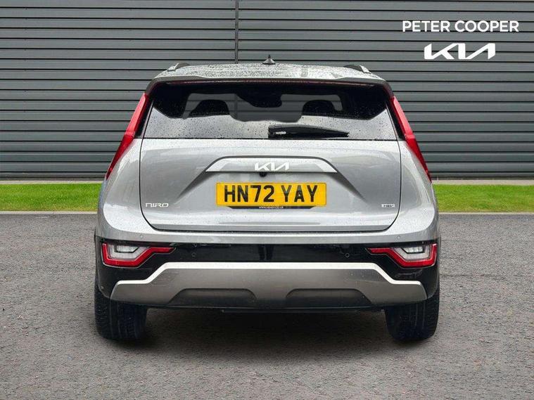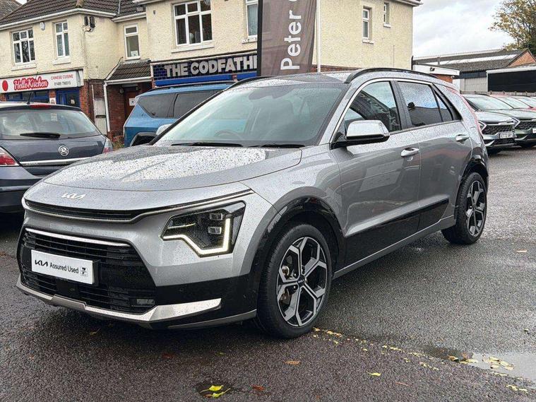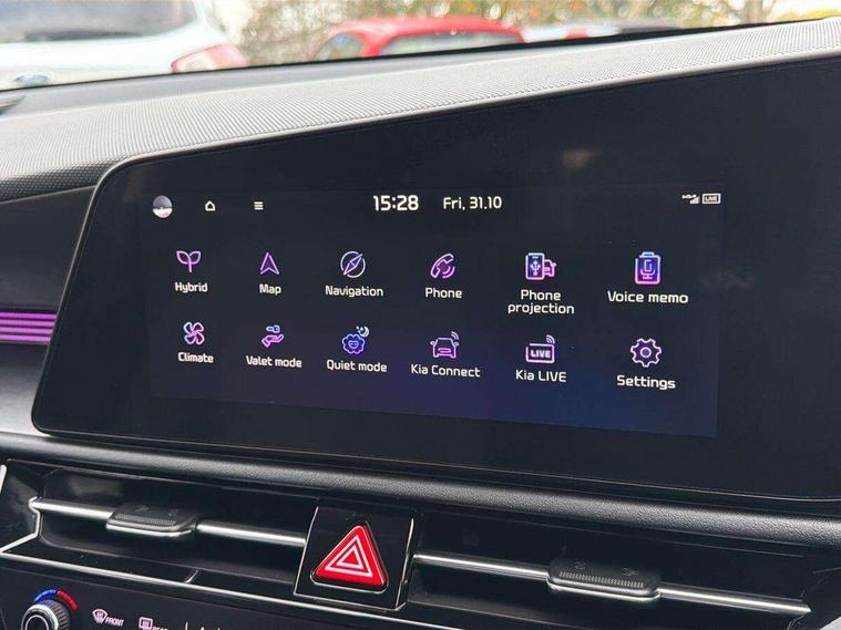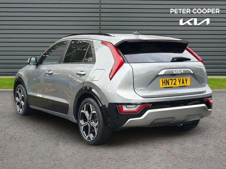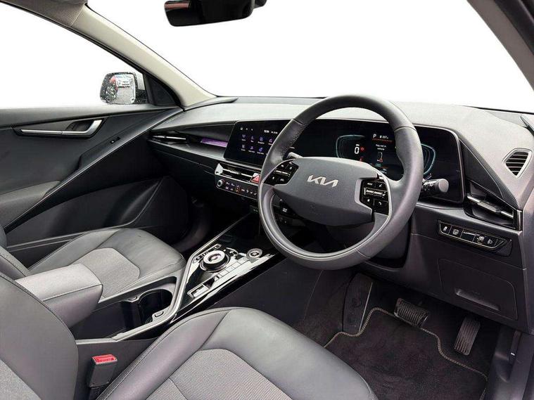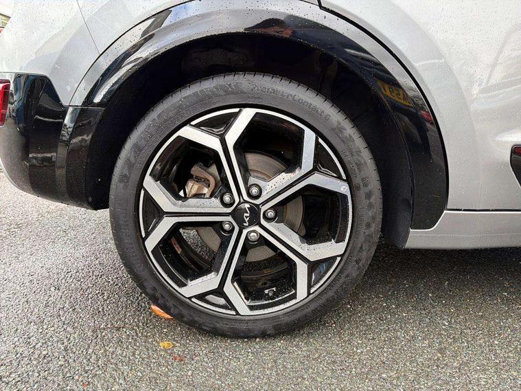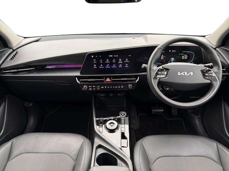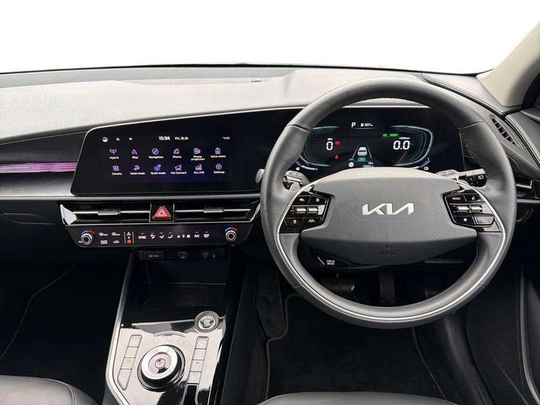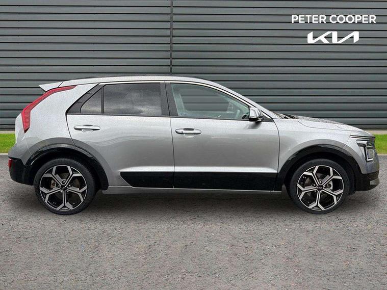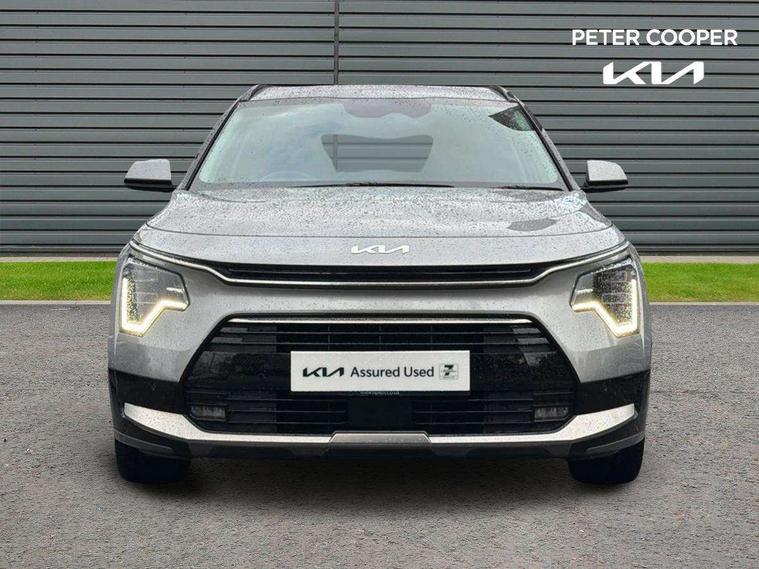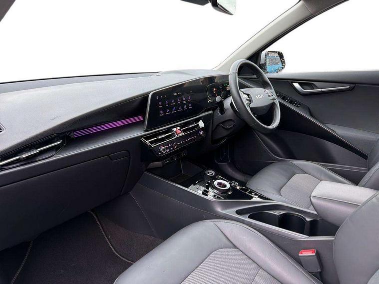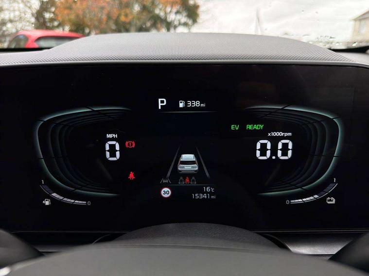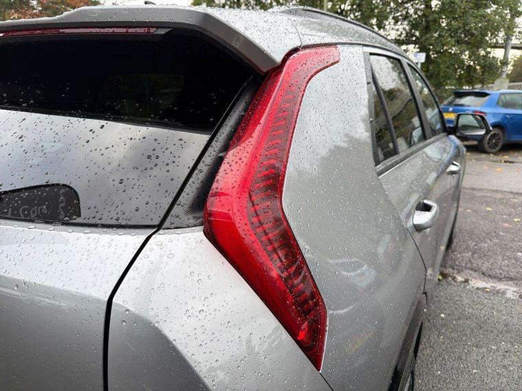 10.25" touchscreen satellite navigation, 4.2" supervision colour cluster display, Adaptive smart cruise control function (SCC) with stop and go, Apple car play/Android Auto with voice control, Blind spot collision avoidance assist, Drive mode select (Eco, sport), E-call, Emergency stop signalling system, Forward Collision-Avoidance Assist (FCA) 1.5 - City/Pedestrian/Cyclist/Junction turning, Front parking sensors, Highway Driving Assist (HDA), Kia Connect (UVO), Lane Following Assist (LFA), Lane keep assist, Motor driven power steering, Rear cross traffic alert, Rear parking sensors, Reversing camera with dynamic guide lines, Safe exit warning (SEW), Speed limit assist, Tailgate, Trip computer with distance/fuel consumption/average speed, Wireless Smartphone charger, 220v AC Inverter, 'Shark fin' mobile antenna, 2 type C USB ports on front seats, 2 USB ports in centre console including 1 type C, 6 speakers, Bluetooth with music streaming, DAB Digital radio, Steering wheel mounted controls, Acoustic windshield, All round electric windows with drivers and front passenger auto up/down and safety function, Auto dimming rear view mirror, Automatic defog system, Automatic headlight control system, Black beltline mouldings, Black grille with chrome surround, Body colour bumpers, Body colour exterior door handles, Dual LED headlights (low and high projection), Electric heated door mirrors, Electrically folding door mirrors, Front and rear chrome skid plates, Front fog lights, Heated rear window with timer, High gloss black cladding, High gloss black door mirrors, LED daytime running lights, LED rear combination lights, LED third brake light, Privacy glass - Rear windows and tailgate, Rain sensing front wipers, Rear fog lights, Rear side wing doors, Rear spoiler, Rear wiper, Roof rails, Solar glass windscreen, Welcome and follow-me home light functionality, Windscreen Washer Level Warning, 12v socket in front, 12V socket in luggage compartment, 3 seat bench in 2nd row, 60/40 split/folding 2nd row of seats, All-round height adjustable headrests, Artificial leather centre console storage box, Artificial leather steering wheel, Bulb overhead console, 2nd row and luggage lamp, Centre console cupholder, Chrome coating interior door handles, Cloth / Artificial leather upholstery, Driver's power adjustable seat, Driver/passenger sunvisors with illuminated vanity mirrors, Drivers seat power lumbar support, Dual zone automatic air conditioning, Front and rear door storage, Heated front seats, Heated steering wheel, Illuminated glovebox, Interior door lock/unlock function, ISOFIX Child seat top tethers and anchor fixings, Luggage area load cover, Luggage board, Paddle shifts, Passenger seat height adjuster, Rear armrest, Seatback pocket - driver, Seatback pocket - front passenger, Shift by wire SBW, Single front passenger seat, Tilt/telescopic adjustable steering wheel, Ventiliation ducts to rear compartment, Towing pack - Niro, 3 point seatbelts on all seats, ABS, Automatic unlocking of doors in case of impact, Centre side front airbags, Curtain and side airbags, Drivers knee airbag, Dual shell horn, Electric parking brake with auto hold function, Electronic stability control, Front passenger airbag deactivation, Height adjustable front seatbelts, Hill start assist control (HAC), Manual rear child locks, Rear seat alert system, Traction control, Tyre pressure monitoring system, Alarm system and engine immobiliser, Deadlocks, Engine Start/Stop Button with Smart Entry System, Locking wheel nuts, Visible vehicle identification number, Warranty - 7 Years/ 100, 000 miles, Centre fascia chopped carbon, 18" Alloy wheels, Tyre mobility kit,