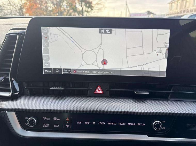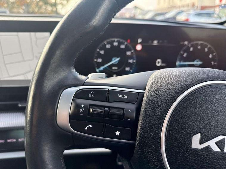 12.3" Display with navigation, 12.3" supervision colour cluster display, 360 degree around view monitor, Apple car play/Android Auto with voice control, Blind spot collision avoidance assist, Blind spot view monitor, Drive mode selector, E-call, Forward collision avoidance assist (FCA) - city/pedestrian/cyclist/junction covering, Front and rear parking sensors, Highway Driving Assist (HDA), Intelligent speed limit assist, Kia Connect (UVO), Lane Following Assist (LFA), Lane keep assist, Low washer fluid warning, Parking collision avoidance assist (PCA), Reversing camera system integrated into centre fascia screen, Smart cruise control with stop and go functionality, Smart power tailgate, Speed sensitive power steering, Trip computer, Windscreen washer level indicator, Wireless Smartphone charger, Intelligent Stop and Go, Bluetooth audio streaming, DAB Radio with MP3, Harman Kardon premium sound system, Rear USB port, Steering wheel mounted audio controls, USB port for connection of a media device, All round electric windows with drivers and front passenger auto up/down function, Automatic headlight control system, Automatic window defogger, Backlite glass heated with timer, Body colour and black bumper with silver accents, Body colour door mirrors, Body colour exterior door handles, Body colour radiator upper garnish and door garnish, Dual LED adaptive headlamps, Electric panoramic glass sunroof (Electric one touch with safety function), Electrically adjustable/heated/folding door mirrors with LED indicators, Front and rear chrome skid plates, Gloss black radiator grille, Gloss black side sill and wheel arch body mouldings, Glossy black roof rack, High beam assist, Interior electrochromic mirror, LED daytime running lights, LED front fog lamps, LED High mounted stop light, LED rear combination lamp, Rain sensing wipers with aero blades, Rear fog lamp, Rear privacy glass, Rear side wing doors, Rear spoiler, Rear wiper, Satin finished beltline, Trailer stability assist, 10 way driver/8 way passenger electrically power adjustable seats, 12V power socket in front centre fascia and luggage compartment, 3 seat bench in 2nd row, 3 x passenger assist grips, 40/20/40 split folding rear seat, All-round height adjustable headrests, Ambient lighting, Black headlining, Centre console storage box, Cupholders in rear armrest, D-Shaped sports leather steering wheel and perforated inserts with GT-Line logo, Door courtesy lamps, Drink holder at centre armrest, Driver and front passenger side sunvisors with illuminated vanity mirrors, Driver seat memory function, Drivers seat power lumbar support, Front and rear door storage, Front seat and rear pockets, Front/rear centre armrests, Gear shift indicator, Glovebox illumination, Heated front and outer rear seats, Heated steering wheel, Interior door lock/unlock function, ISOFIX Child seat top tethers and anchor fixings outer rear seats, LED interior personal lamp, LED lighting in overhead console, Luggage area LED light, Luggage area load cover, Luggage net with hooks, Metal paint interior door handles, Paddle shift controls, Rear coat hooks, Single front passenger seat, Sports pedals, Suede leather upholstery, Three zone climate control, Tilt/telescopic adjustable steering wheel, Ventilated front seats, Ventilation ducts to rear compartment, Active front headrests, All round 3-point seatbelts, Anti-lock braking system (ABS), Dual front side airbags, Dual horn, Electronic parking brake, Electronic stability control with downhill brake control, Front passenger airbag cut-off switch, Front seatbelt pretensioners + load limiters, Height adjustable front seatbelts, Hill start assist control (HAC), Impact sensing auto door unlocking, Multi collision brake assist, Rear door child safety locks, Rear seat alert system, Traction control, Twin curtain airbags, Twin front airbags, Tyre pressure monitoring system, Advanced anti-theft system including immobiliser and alarm, Door deadlocks, Engine Start/Stop Button with Smart Entry System, Locking wheel nuts, Speed sensitive auto door locking, Visible vehicle identification number, Aluminium pattern finish centre fascia and door garnish, 19" Alloy wheels, Michelin tyres, Tyre mobility kit,