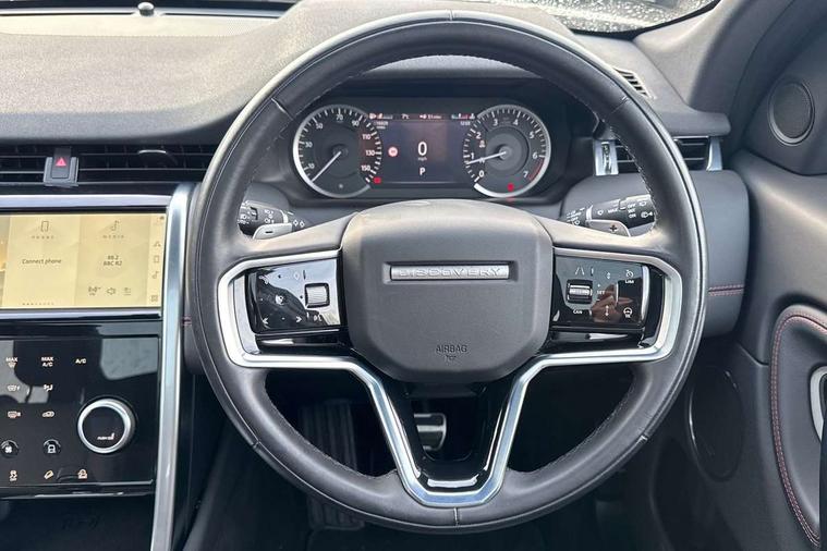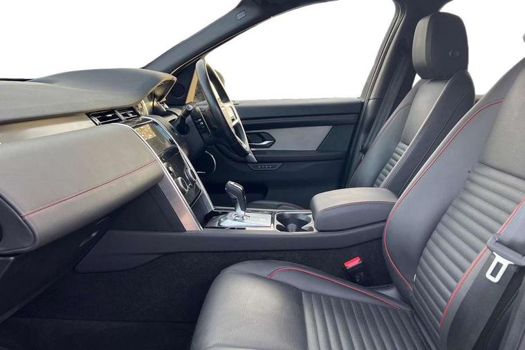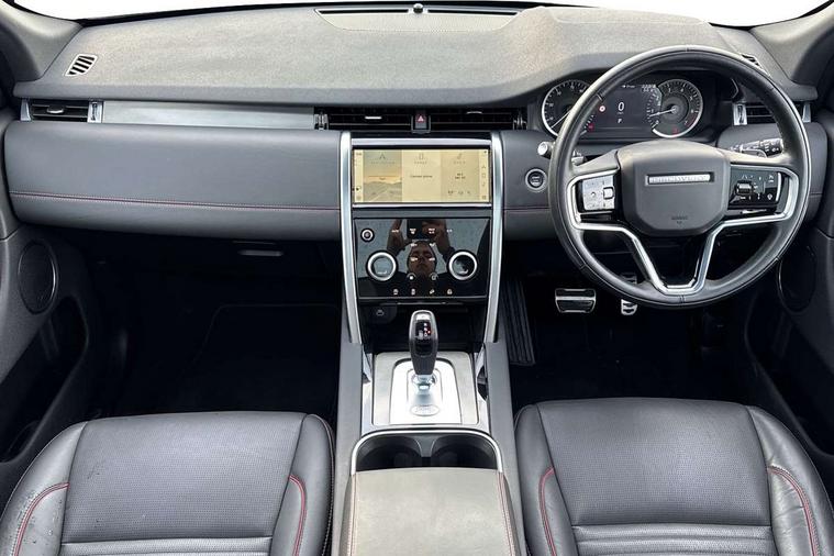10" touch screen, Adaptive cruise control, Android Auto, Apple CarPlay, Blind spot assist, Clear exit monitor, Driver condition monitor, eCall emergency call system, Front and rear parking aid, InControl remote premium, Lane keep assist, Locking fuel flap, PAS, Pivi Pro connected navigation system with upgraded Infotainment, Powered tailgate/boot lid, Push button start, Rear collision monitor, Rear traffic monitor, Service interval indicator, Traffic sign recognition with adaptive speed limiter, Trip computer, Wade Sensing, All terrain progress control, Coil suspension system, Configurable dynamics, Dynamic stability control, Efficient Driveline, Terrain Response 2, Bluetooth connectivity including audio streaming, Digital Audio Broadcast radio-DAB, Steering wheel mounted audio controls, 3rd brake light, Automatic headlight levelling, Automatic headlights, Black number plate plinth, Electric front/rear windows, Electric heated/power fold door mirrors with approach lights and auto dimming driver side, Front and rear recovery eyes, Front fog lights, Heated rear window, Heated windscreen including heated washer jets, Illuminated metal front treadplates with R dynamic branding, Privacy glass, R Dynamic badge, Rain sensing windscreen wipers, Rear fog lights, Rear side wing doors, Rear wing door, Rear wiper, 2 seat bench in 3rd row, 3 seat bench in 2nd row, Bright metal pedals, Centre console with armrest, Configurable cabin lighting, Electrically adjustable steering column with memory, Footwell lights, Front and rear grab handles, Front passenger isofix child seat attachment, Front passenger seat, Heated steering wheel, Loadspace cover, Loadspace light, Manual third row seats, Overhead lighting console, Overhead stowage for sunglasses, Rear headrests, Satin chrome gearshift paddles, Sunvisors with illuminated vanity mirrors, Tilt/reach adjustable steering wheel, Black exterior pack - Discovery sport R-Dynamic SE/HSE, Online pack with data plan - Discovery, 3 point seatbelts on all seats, ABS, Brake hold function, Child locks on rear doors, Collision mitigation braking system, Cornering brake control (CBC), Driver/Front Passenger airbags, Drivers knee airbag, Electronic brake force distribution, Electronic parking brake, Emergency brake assist, ESP + traction control, Hill descent control, Hill launch assist, Pedestrian airbag system, Rear seat ISOFIX, Roll stability control, Side and curtain airbags for front and 2nd row seats, Trailer stability control, Tyre pressure monitoring system, Battery Back Up System (BBUS) with tilt sensor, Global lock and unlock switch on driver door, Intrusion sensor, Keyless entry, Locking wheel nuts, Centre stack rails in noble chrome,