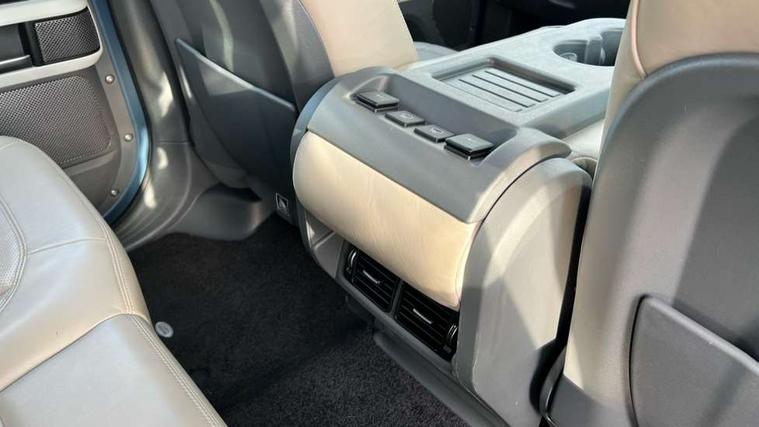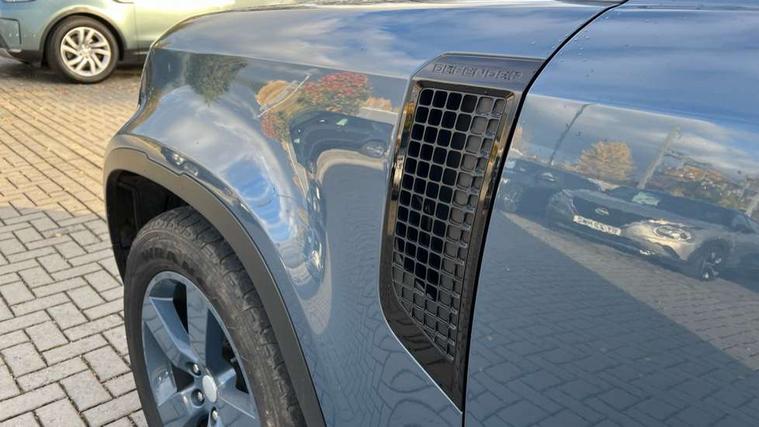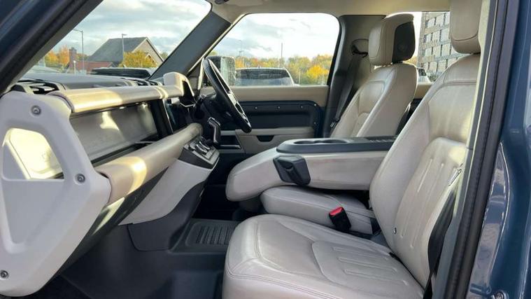 360 degree parking aid, 3D Surround Camera with 360 View, 180 Rear View, Front Traffic Detection, Forward Vehicle Guidance, Tow Hitch Assist and clear sight Ground View, Adaptive cruise control, Android Auto, Apple CarPlay, Assisted tailgate with soft close, Blind spot assist, Bluetooth system, Brake pad wear indicator, Clear exit monitor, Click and go integrated base unit, Connected navigation pro, Driver condition monitor, Electric power assisted steering (EPAS), Interactive driver display, Lane keep assist, Less CE Device Charging, Push button start, Rear collision monitor, Rear traffic monitor, Traffic sign recognition with adaptive speed limiter, Trip computer, Wade Sensing, Adaptive dynamics, DAB Radio (Digital Audio Broadcasting), Pivi pro connected, Automatic headlight levelling, Automatic headlights, Centre high mounted stop light, ClearSight interior rear view mirror, Electric heated/power fold door mirrors with approach lights and auto dimming driver side, Electric windows with one touch open/close and anti-trap, Follow me home lighting, Front fog lights, Heated rear window with timer, Heated windscreen, LED tail lights, Matrix LED headlights with signature DRL, Puddle lights, Rain sensing windscreen wipers, Rear fog lights, Rear side wing doors, Rear wiper, Standard treadplates, Trailer stability assist, 12V power socket in loadspace, 14 way heated and cooled electric adjustable memory front seats with 4 way manual headrests, 3 individual front seats with centre jump seat and folding front centre armrest, 3 seat bench in 2nd row, Cabin lighting, Carpet mats, Durable rubber cabin flooring, Durable rubber loadspace flooring, Electric reach + rake adjustable steering column, Extended leather upgrade, Footwell lights, Front passenger isofix child seat attachment, Heated steering wheel, Leather gearshift, Leather steering wheel, Loadspace Hook, Multifunction steering wheel, Overhead stowage for sunglasses, Rear headrests, Rear ISOFIX, Rear reading lights, Storage glovebox, Sunvisors with illuminated vanity mirrors, Two front passenger seat, Windsor leather upholstery, Online pack with data plan - Defender, 6 x 3 point seatbelts, ABS, Brake hold function, Cornering brake control (CBC), Customer configurable autolock, Driver and passenger airbags, DSC - Dynamic Stability Control, EBD - Electronic brakeforce distribution, Electric parking brake (EPB), Emergency braking, ESP + traction control, Front airbags with passenger seat occupant detector, HDC - Hill descent control, Hill launch assist, Low traction launch, Power operated child locks, Remote for (e-Call, Optimised assistance call, InControl app, Climate, beep and flash and door), RSC - Roll stability control, Seat belt reminder, TPMS (Tyre pressure monitoring system), Alarm, Immobiliser, Intrusion sensor, Keyless entry and go, Locking wheel nuts,