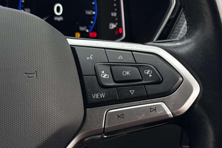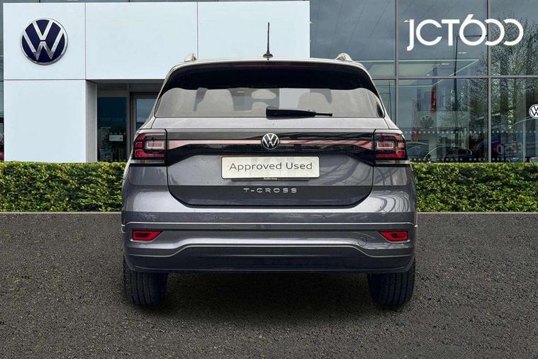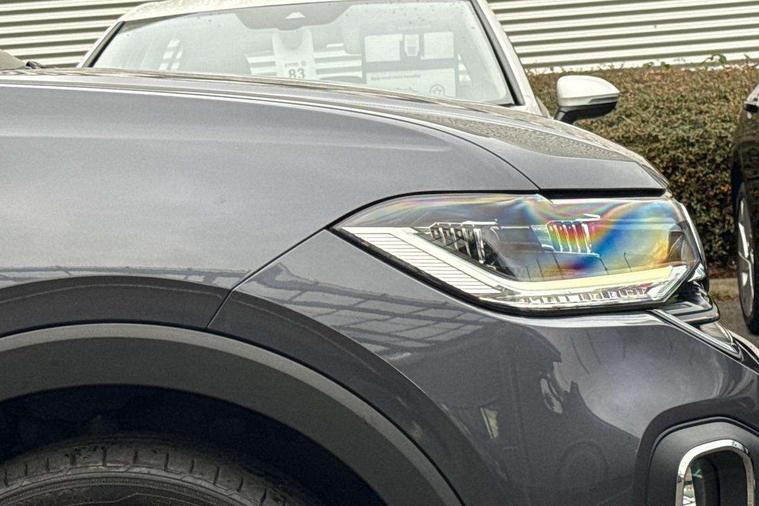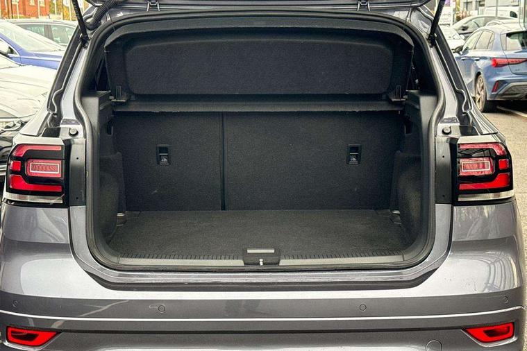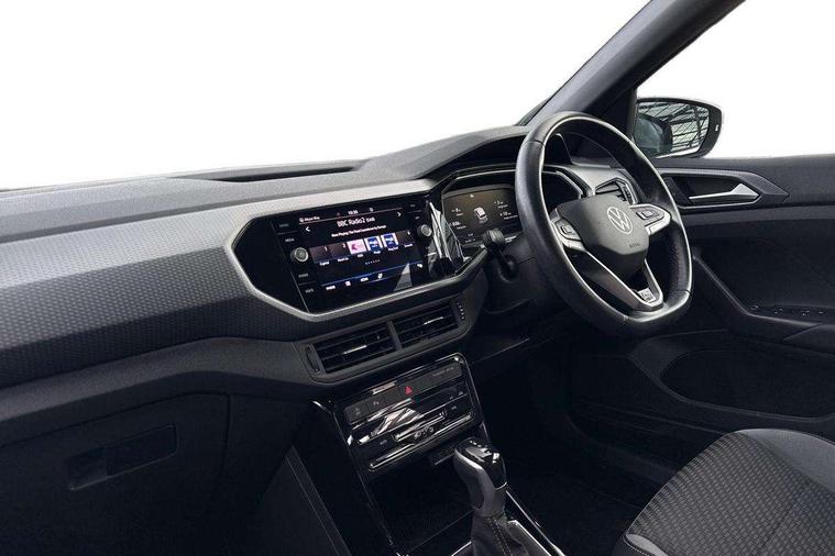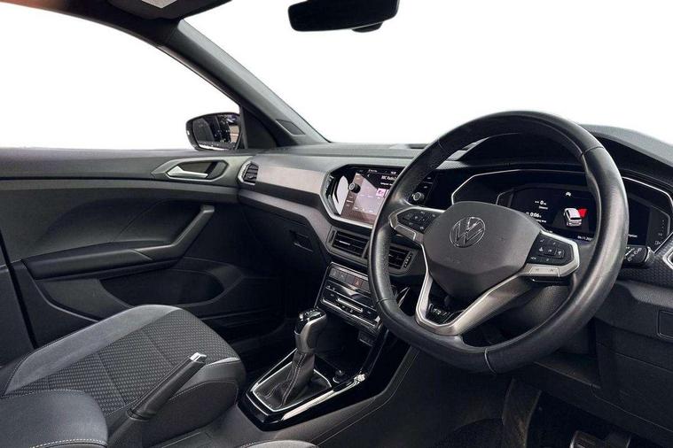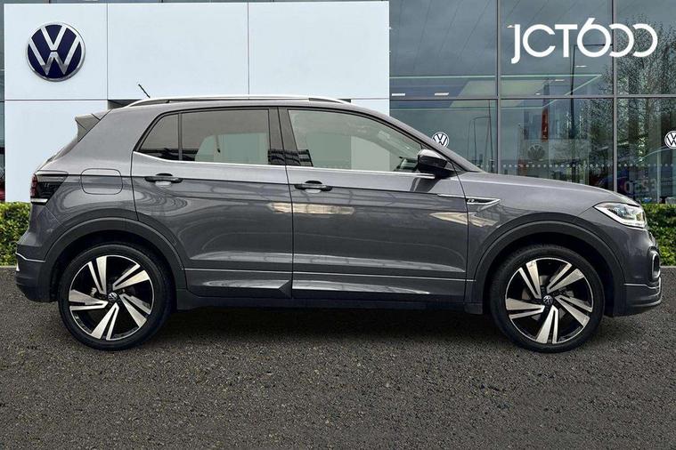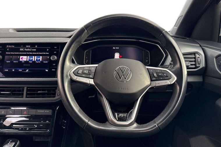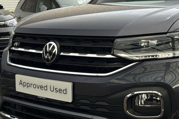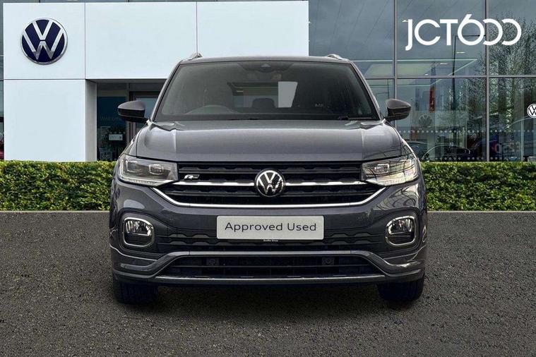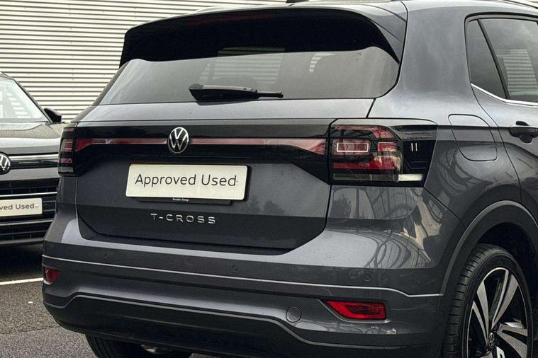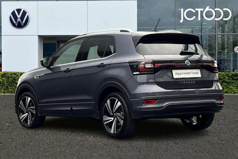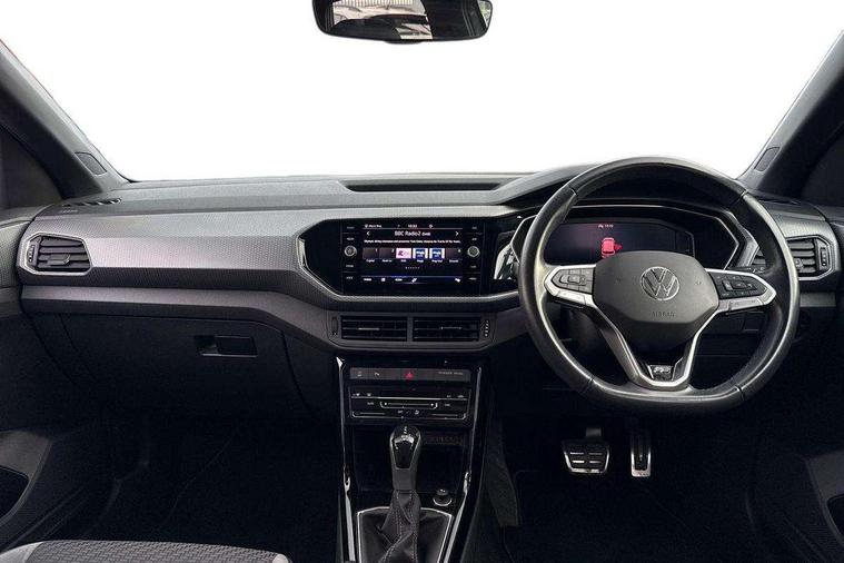 'Lights On' Reminder warning buzzer, 2D/3D map view, Active info display - 10.25" High resolution TFT dash display screen, Adaptive cruise control including front assist, forward collision warning, autonomous emergency braking, speed limiter, Blind spot monitoring, Bluetooth telephone and audio connection for compatible devices, Car information display, Driver alert system, eCall emergency call system, Lane assist, Low washer fluid warning light, Multifunction computer with visual gear change recommendation for fuel consumption, Operating permit alteration, Power assisted speed sensitive steering, Speed limit display, Speedo, rev counter, electronic odometer, trip, service interval display, exterior temperature and fuel gauge, Stop/start system, Warning sound and light for doors and tailgate open, Warning sound and light for front seatbelts unfastened, We connect plus preparation, Wireless Car net app connect with Apple CarPlay, combined functionality of Apple CarPlay/Android Auto and MirrorLink, Battery regeneration during braking, Misfuel prevention device, 2x USB connection with USB charging sockets and in rear centre console, DAB Digital radio receiver, Diversity antenna for FM reception, Multi device interface (MDI) with USB connection, Music playback - MP3, WMA and AAC files, Premium USB cable for Apple or Android smartphone compatibility, Simultaneous pairing of 2 compatible mobile devices, SMS Functionality, Three route options - Fast, Short, Eco, Title and cover art display, Automatic hazard lights activation under emergency braking, Body colour door handles, Body colour door mirrors with integrated indicators, Body colour rear roof spoiler, Body coloured bumpers, Dusk sensor + automatic driving lights, Electrically foldable, adjustable and heated door mirrors with reverse activated kerb view adjustment on passenger's side, Front and rear electric windows, Front fog lights with static cornering function, Galvanised body, Heated rear window, LED third brake light, Lower door sills and door pillars in black, Radiator grille with chrome trim and chrome bezel front fog lamp, Rear fog light on one side, reversing light on both sides, Rear lights incorporating LED technology, Rear side wing doors, Rear tinted glass 65% approx light absorbing from B pillar backwards, Rear window aerial, Rear windscreen washer and wiper with interval delay, Reflectors in all doors, Silver roof rails, Stainless steel door sill protection, Tailgate with integrated roof spoiler, Unique R Line badging, Windscreen wipers/ intermittent wipe + 4 position delay, 12V Accessory socket in centre console, 2 Front and rear reading lights incorporating LED technology, 2 Zone electronic climate control with automatic air recirculation, 3 rear head restraints and 3 rear three point seat belts with ECE label, 3 seat bench in 2nd row, 60/40 split folding rear seat backrest, Ambient lighting and sourround lighting, Black headlining, Branded points of interest, Brushed stainless steel pedals, Carbon flag cloth upholstery, Drawer under drivers seat, Driver and front passenger sunvisor with vanity mirror, Driver's sunvisor with ticket holder, Dust and pollen filter, Front and rear carpet mats with contrast stitching, Front centre armrest with storage compartment, Front footwell illumination, Front seat back storage pockets, Front seat R Line logo with rear seat backrest, Front sports seat with height and lumbar adjustment, Glovebox, Heating and fresh air system with 4 stage blower, Height/reach adjust steering wheel, Instrument lighting white adjustable panel illumination, Interior light with delay, Isofix child seat preparation for 2 rear child seats, Leather trimmed three spoke multifunction steering wheel with contrast stitching and aluminium inserts with R Line logo, Luggage compartment cover, Luggage compartment lighting, Moveable and foldable Rear bench seat, Scuff plates in door apertures, Steering wheel paddle shift, Storage compartment in drivers and front passengers door, Variable boot floor, R Line styling pack - T-cross, Anti-lock Braking System (ABS) with Hydraulic Brake Assist (HBA), Automatic post collision braking system, Driver and front passenger safety-optimised head restraints, Drivers and Front Passengers airbags with front passengers airbag deactivation switch, ESC with EDL, ASR, EDTC and trailer stabilisation function, Front and rear curtain airbags, Front seat side impact airbags, Height-adjustable front three-point seat belts with tensioners, Hill start assist, Pre crash preventive occupant protection, Rear door child safety locks, Rigid safety cell with front and rear crumple zones, Single torn horn, Tyre pressure loss indicator, Volkswagen roadside assistance, Alarm with interior protection and deactivation via infotainment system, Child security locks in rear doors, Electronic engine immobiliser, Remote tailgate unlocking using key fob, Race decorative inserts in dash and doors, 18" Nevada black alloy wheels, Breakdown kit,